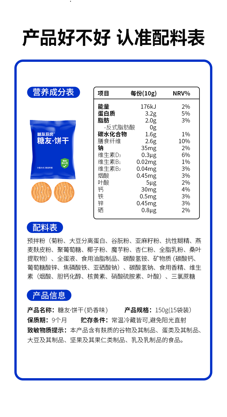 糖友厨房饼干(奶香味)150g×1盒