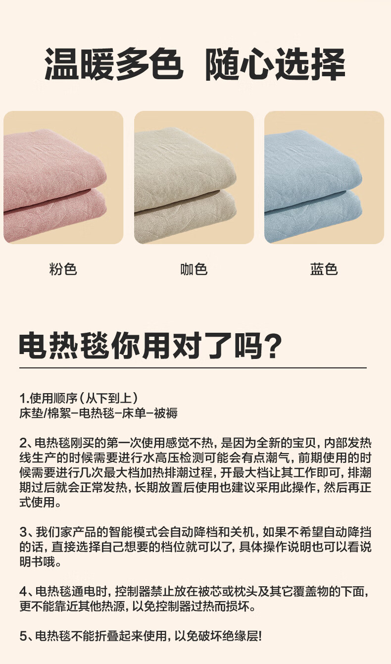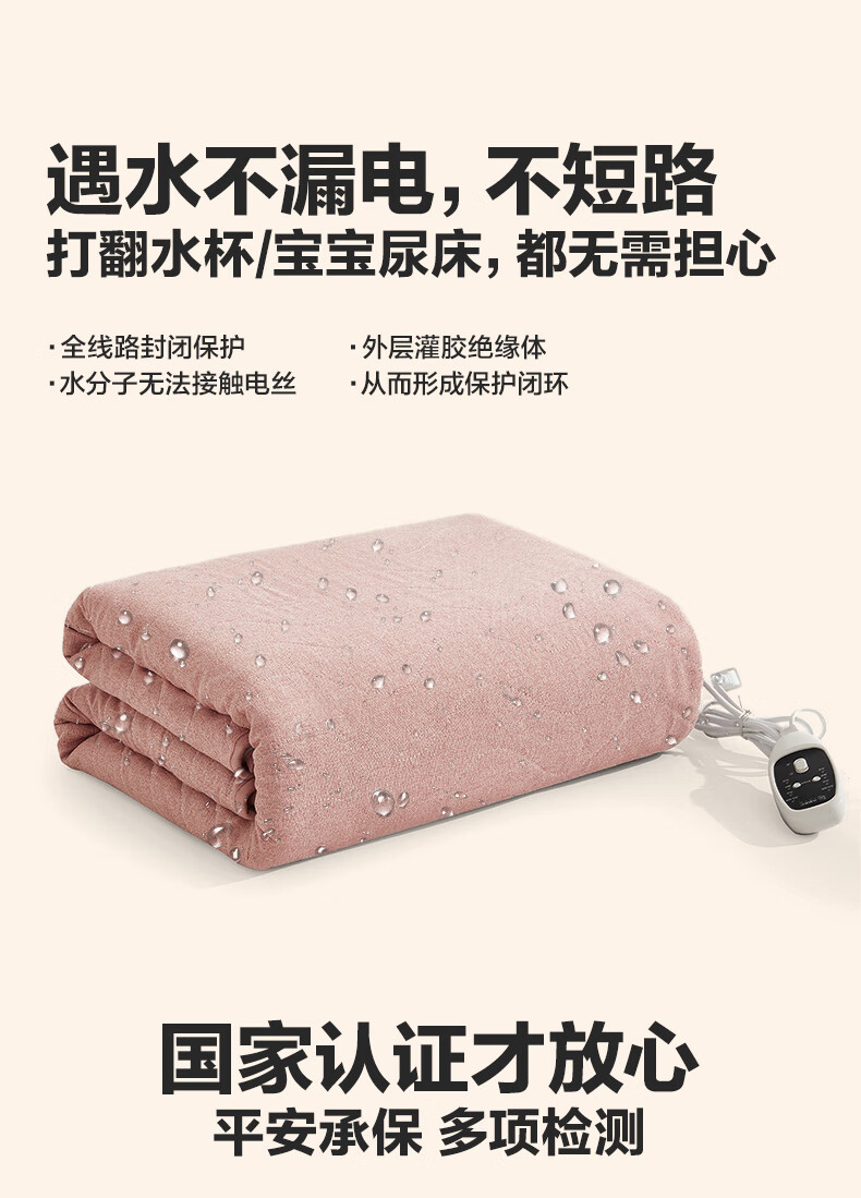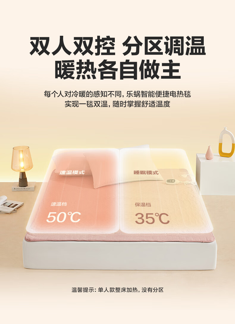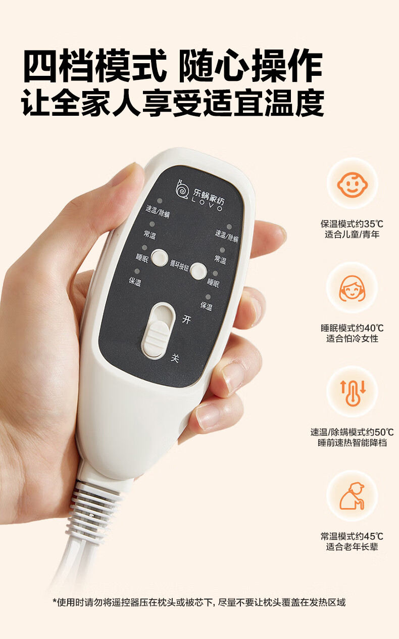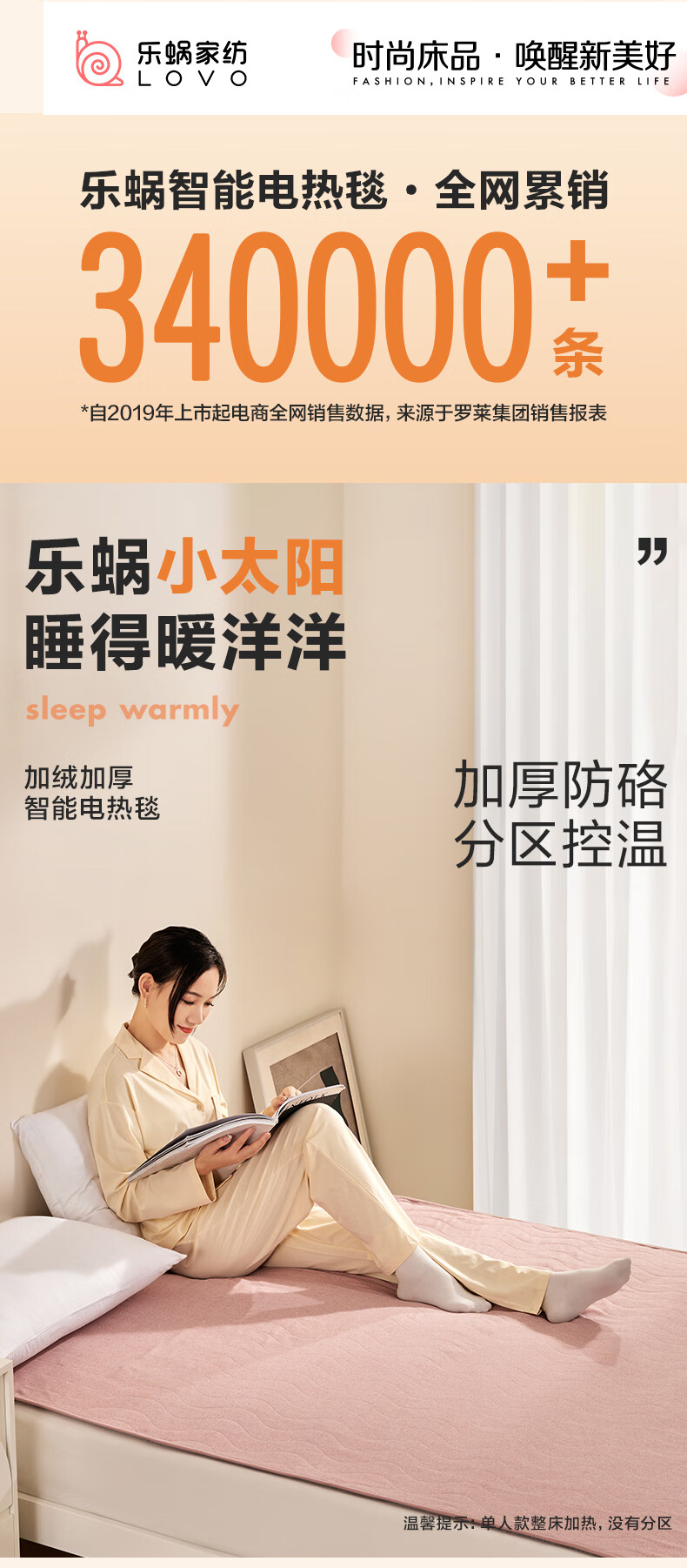 LOVO乐蜗XS 微电脑智能电热毯 暖绒绵绵 粉色