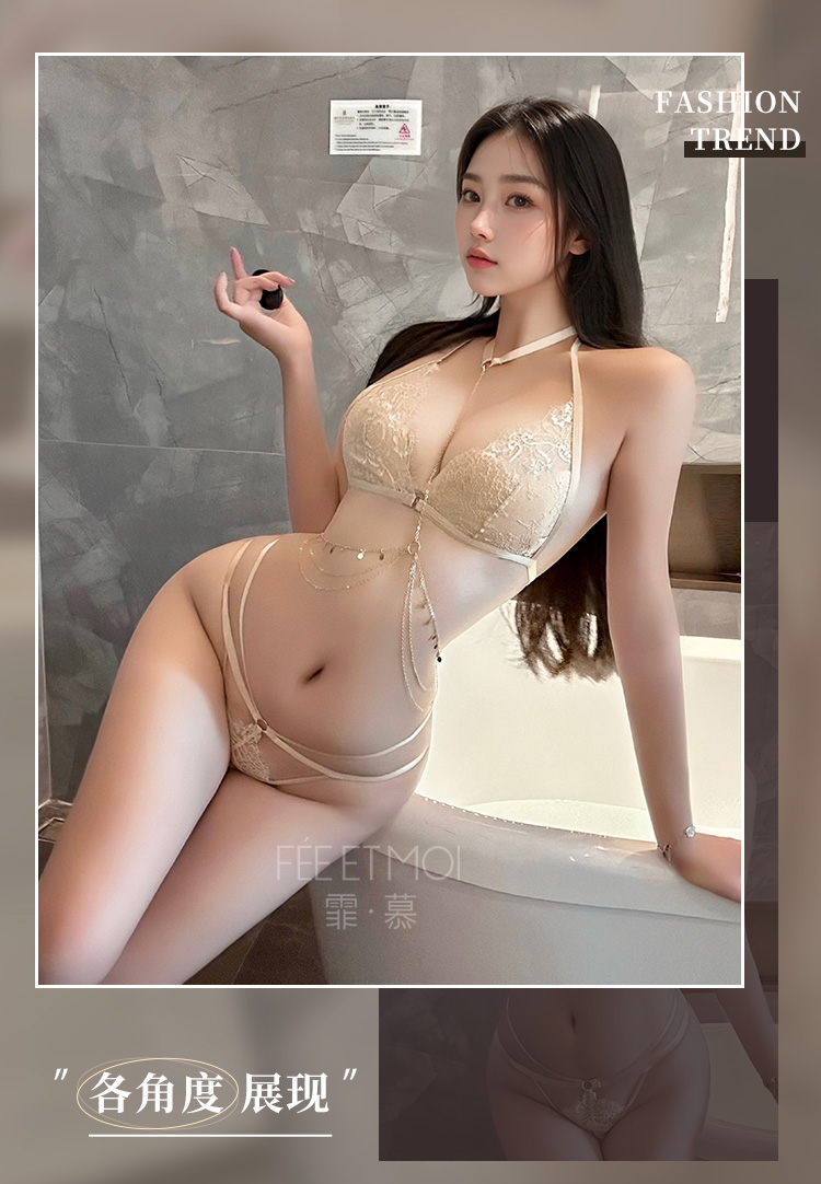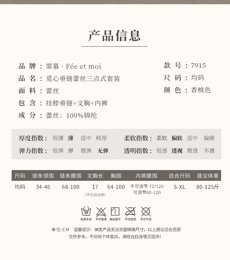 【情趣内衣】霏慕 觅心垂链蕾丝三点式套装7915