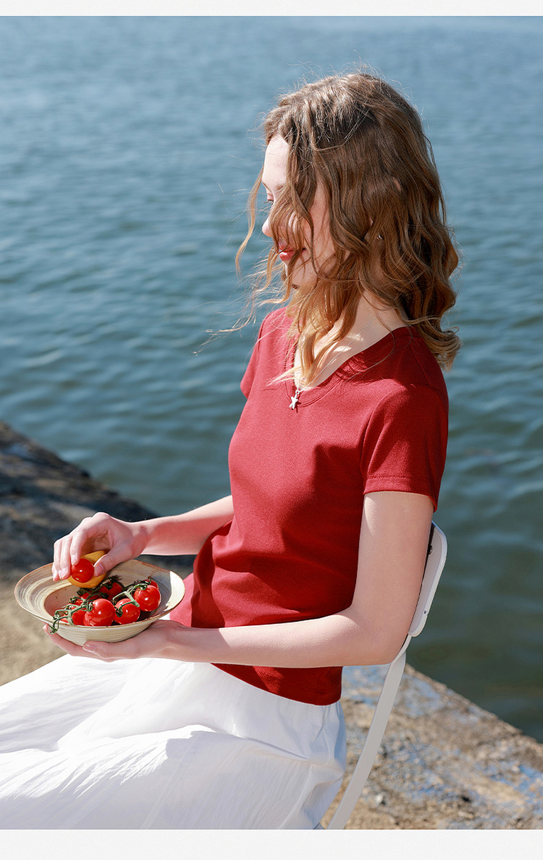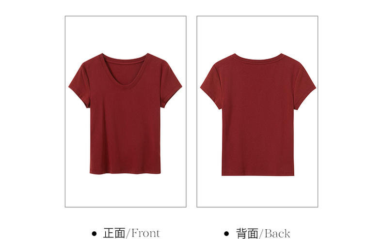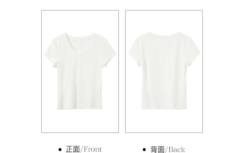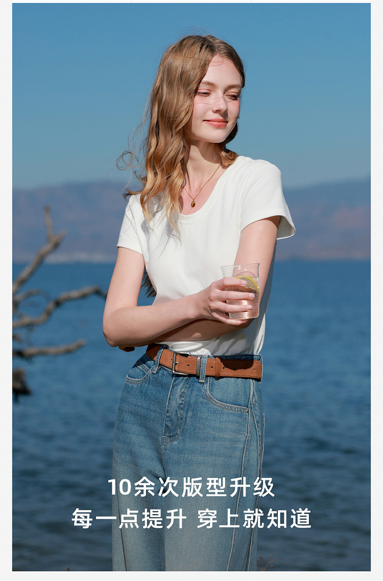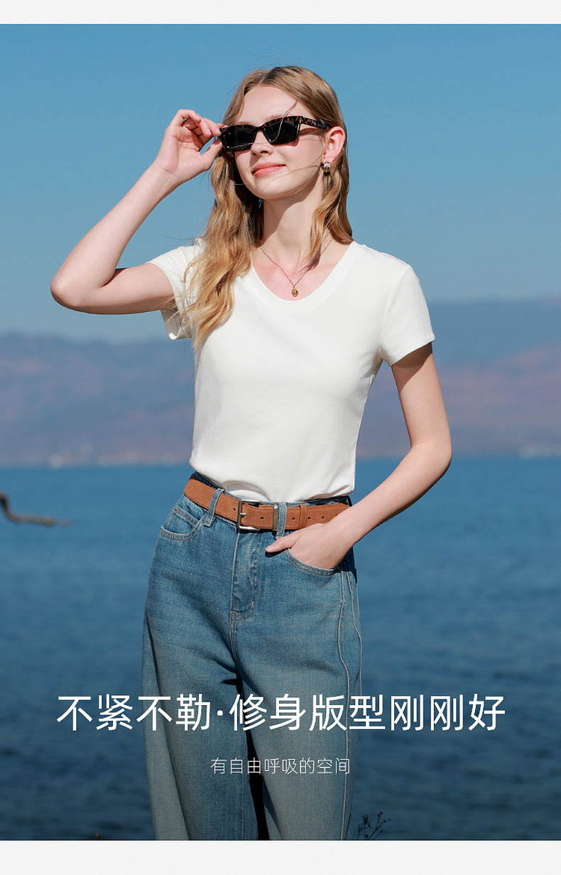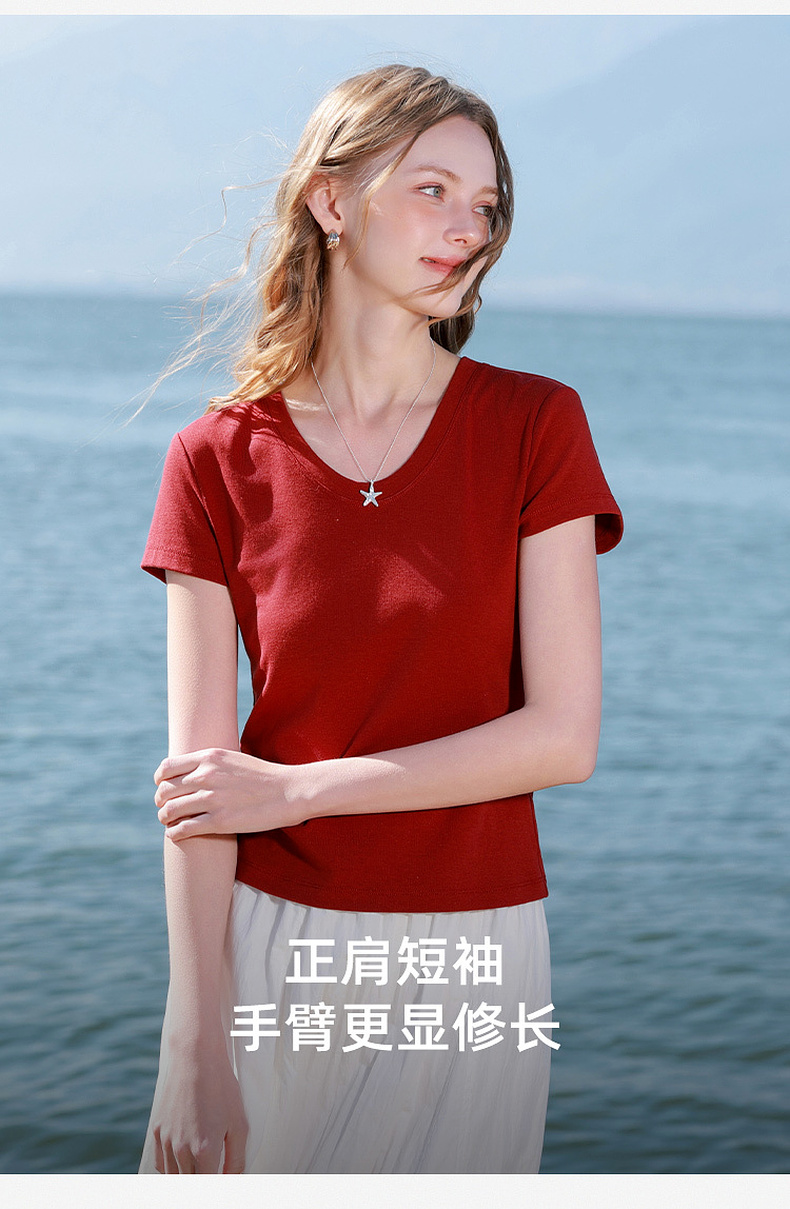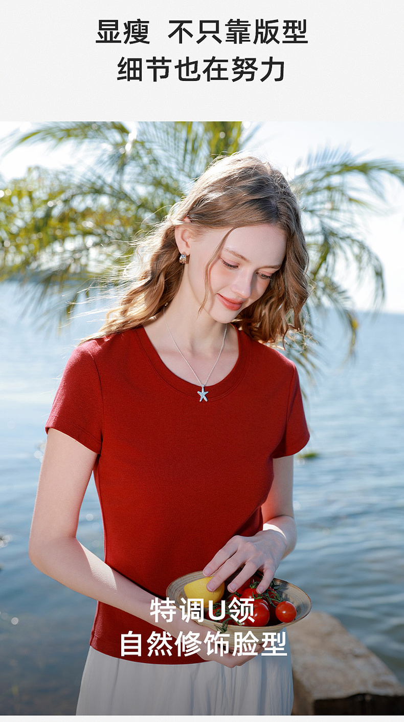 【宋轶同款】[瘦瘦T]三彩2026春季新款U领正肩短袖修身T恤套头上衣短款M