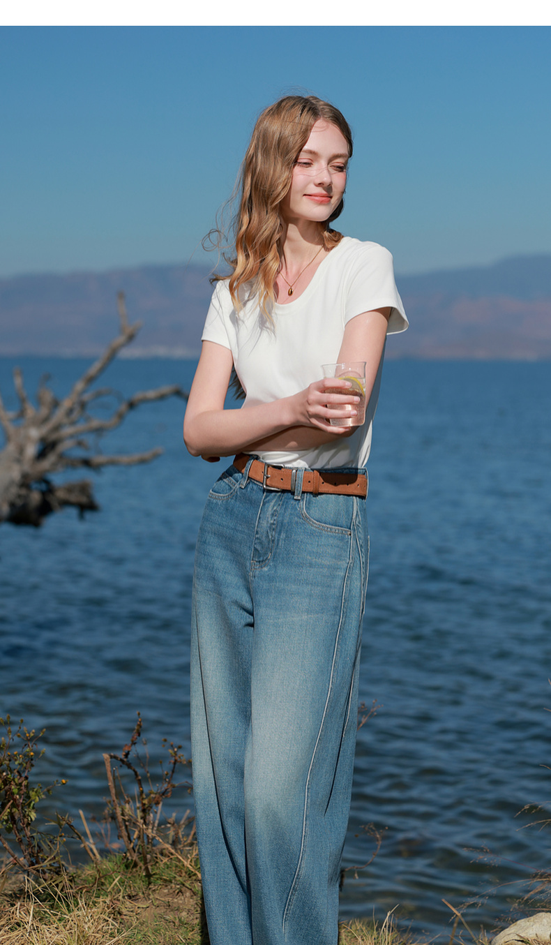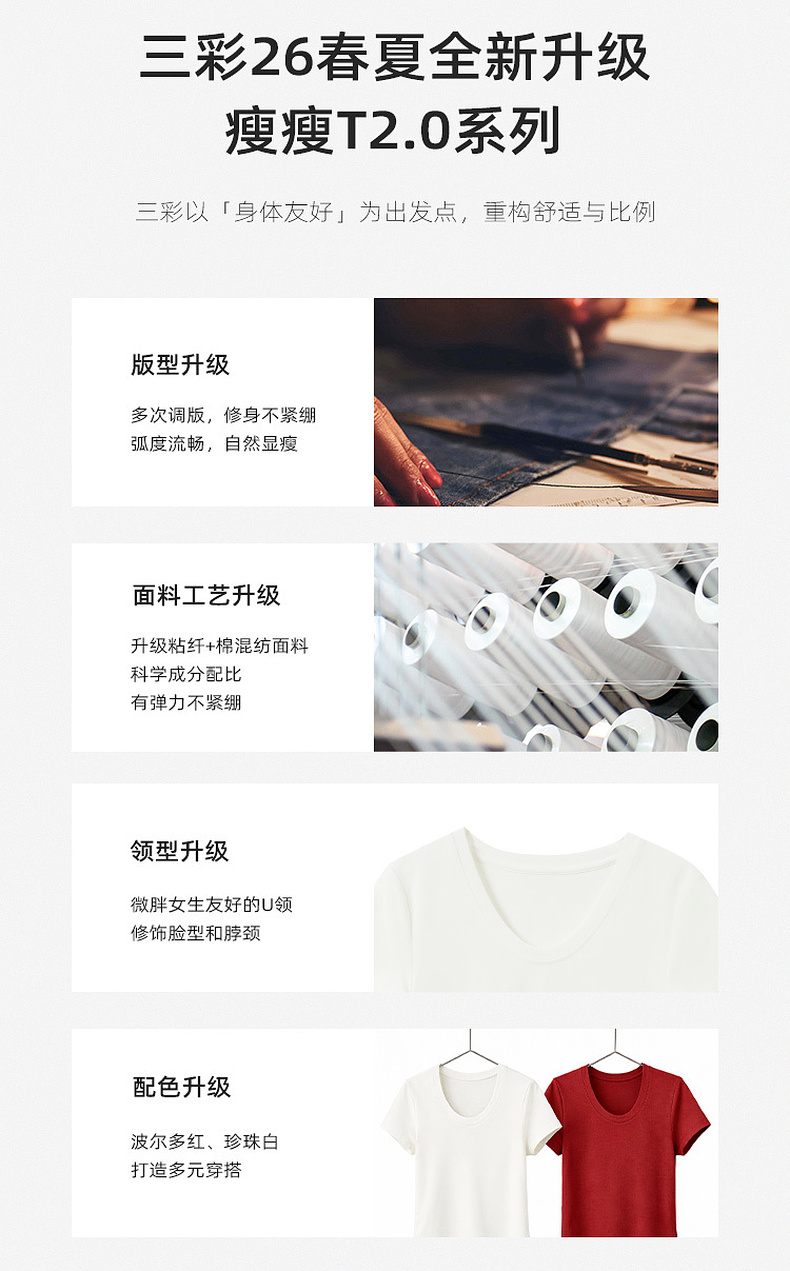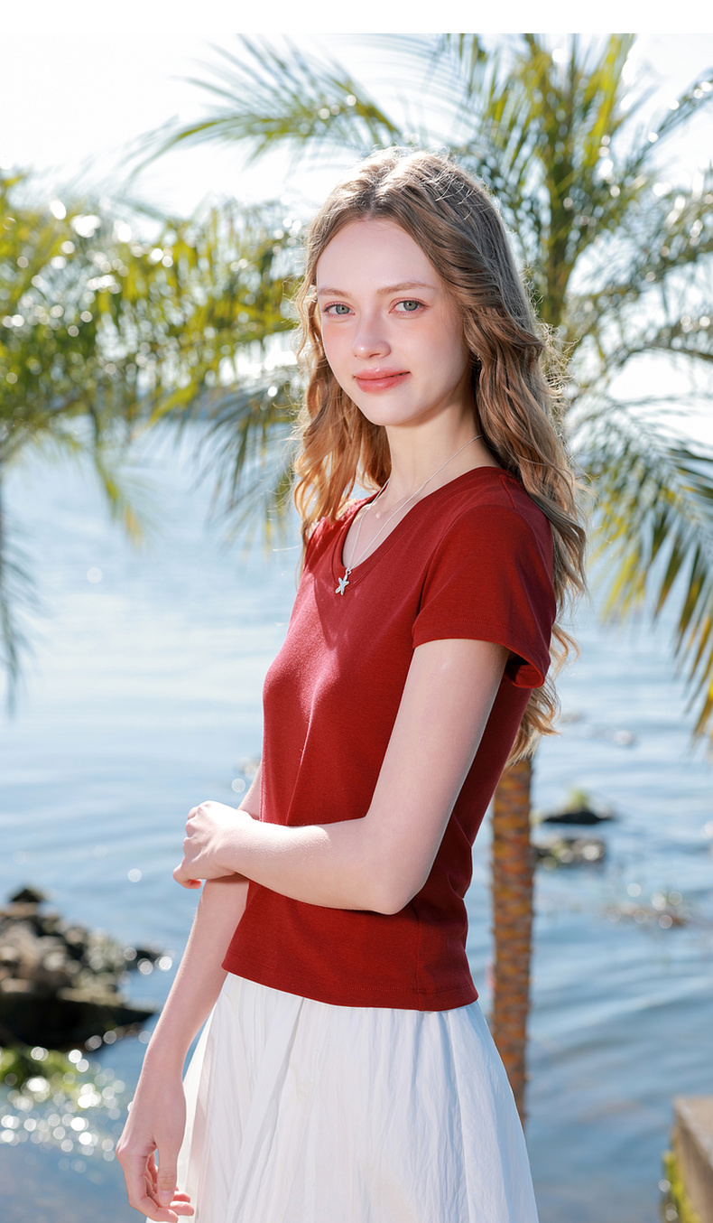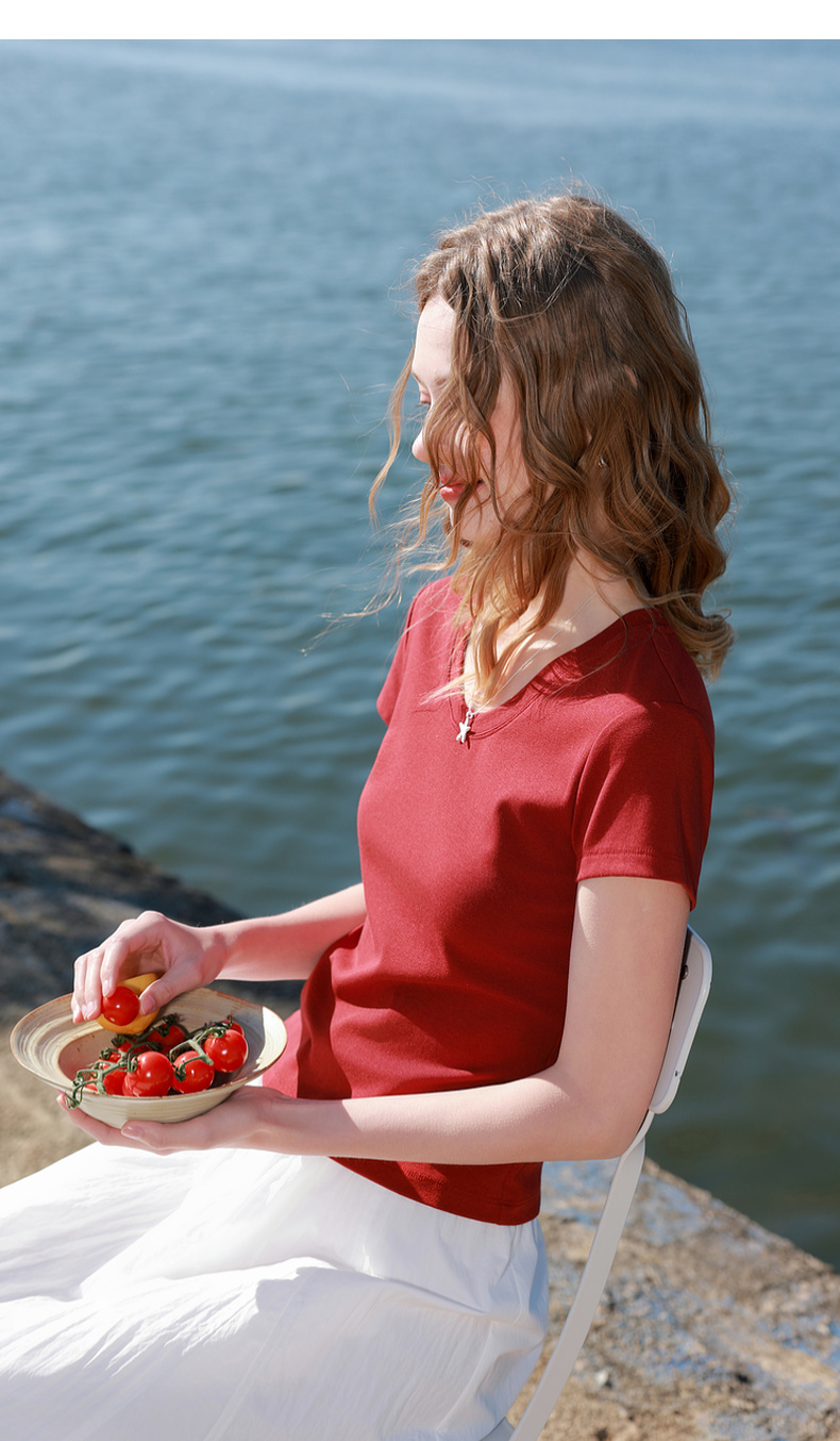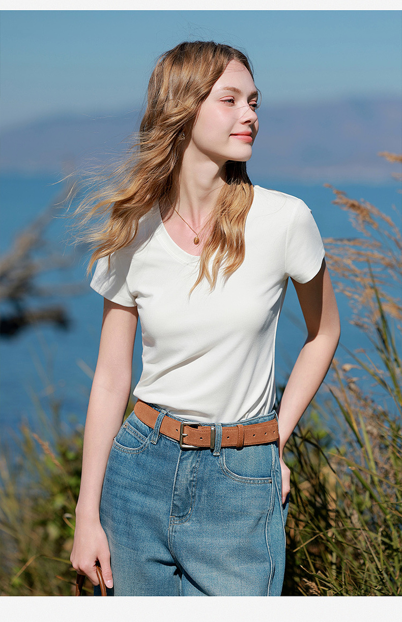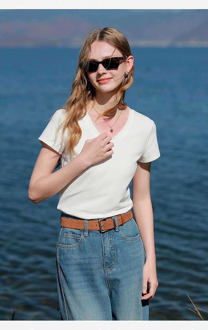 【宋轶同款】[瘦瘦T]三彩2026春季新款U领正肩短袖修身T恤套头上衣短款M