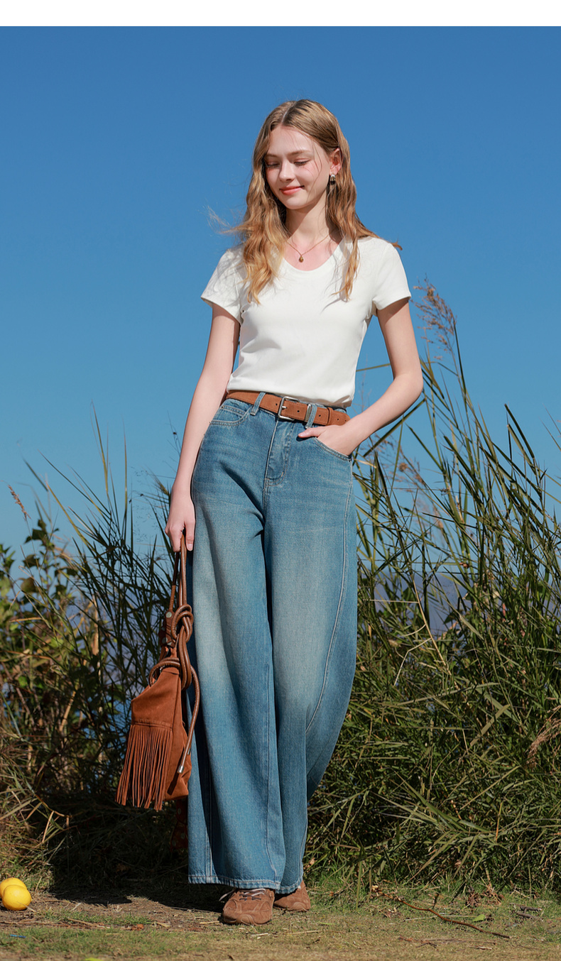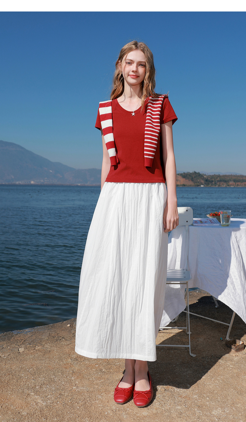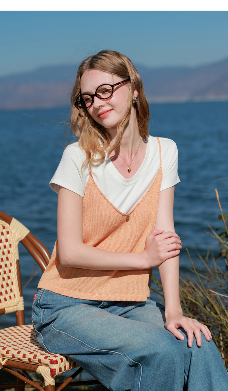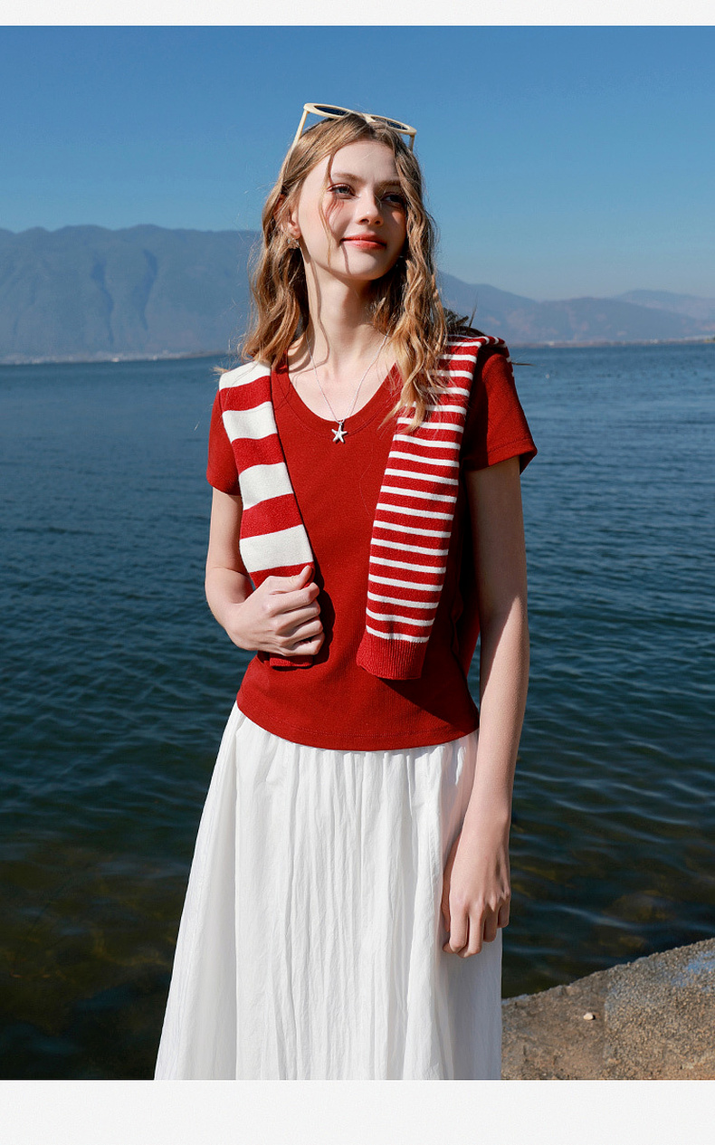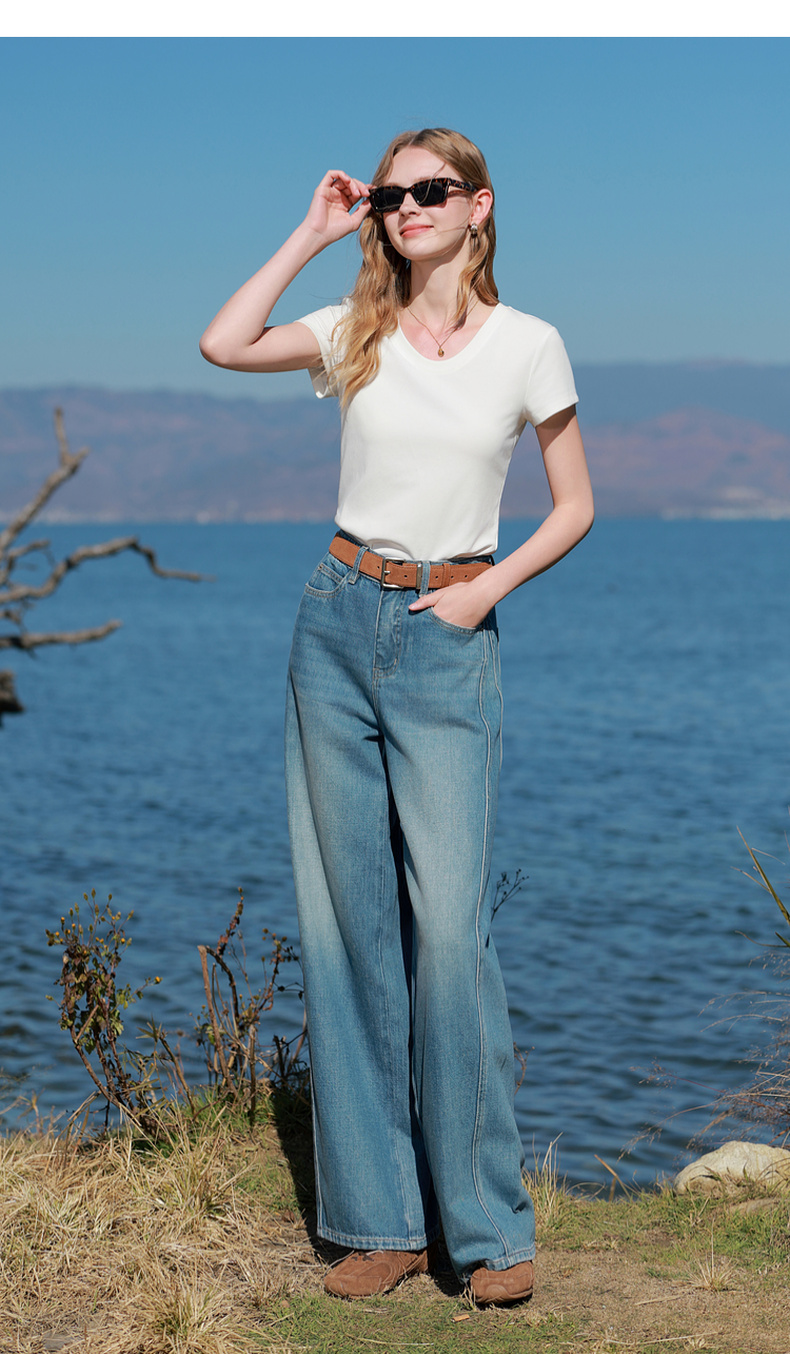 【宋轶同款】[瘦瘦T]三彩2026春季新款U领正肩短袖修身T恤套头上衣短款M