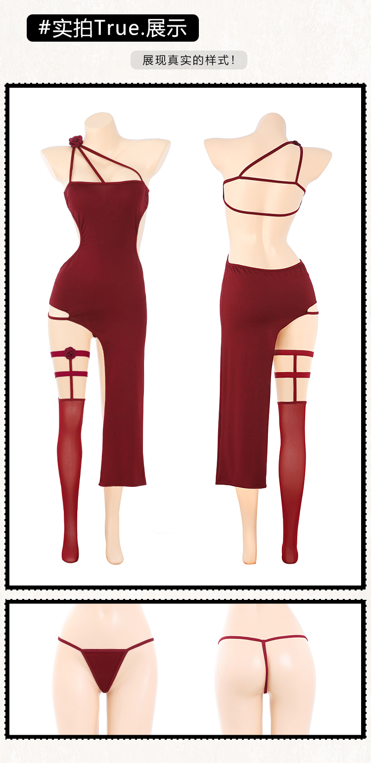 【情趣内衣】霏慕 绯色玫瑰单肩露背连衣裙ZY188