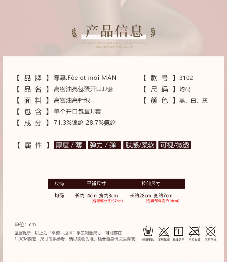 【霏慕】高密油亮包蛋开口JJ套3102情趣内衣男用丝袜快感丝滑