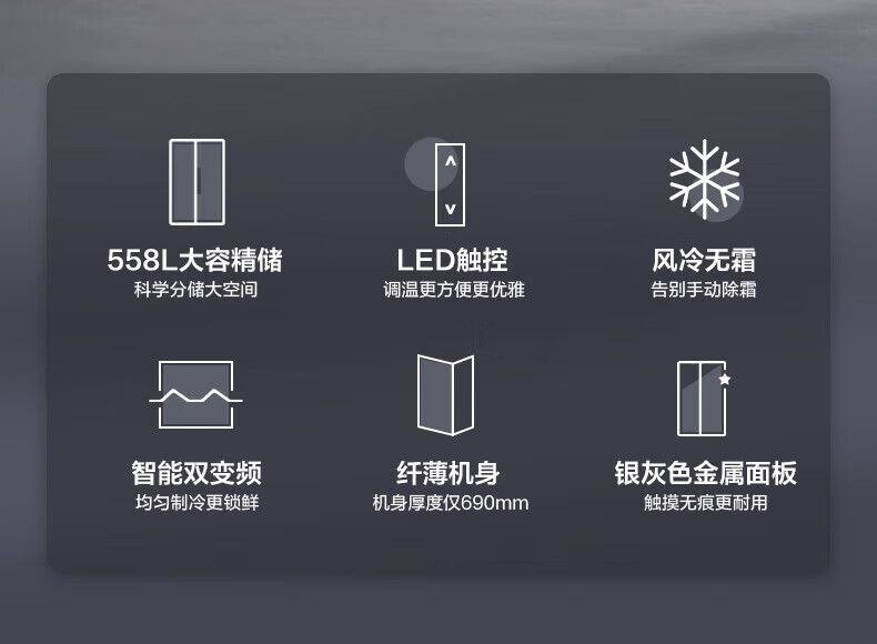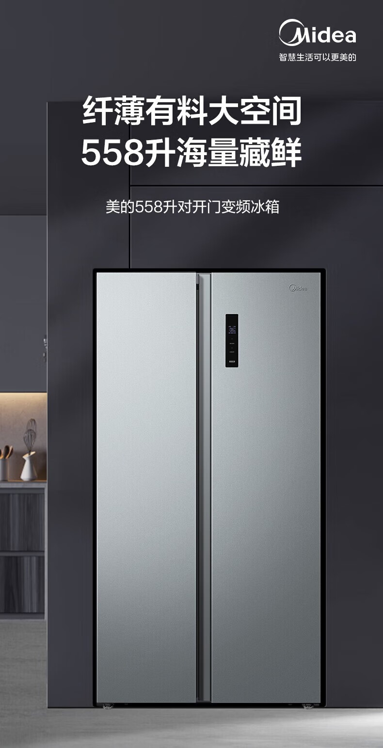 美的(Midea)美的(Midea)冰箱558升大容量双开门对开门节能变频智能控制风冷无霜 【钛钢灰星烁】 BCD-558WKPM(E)