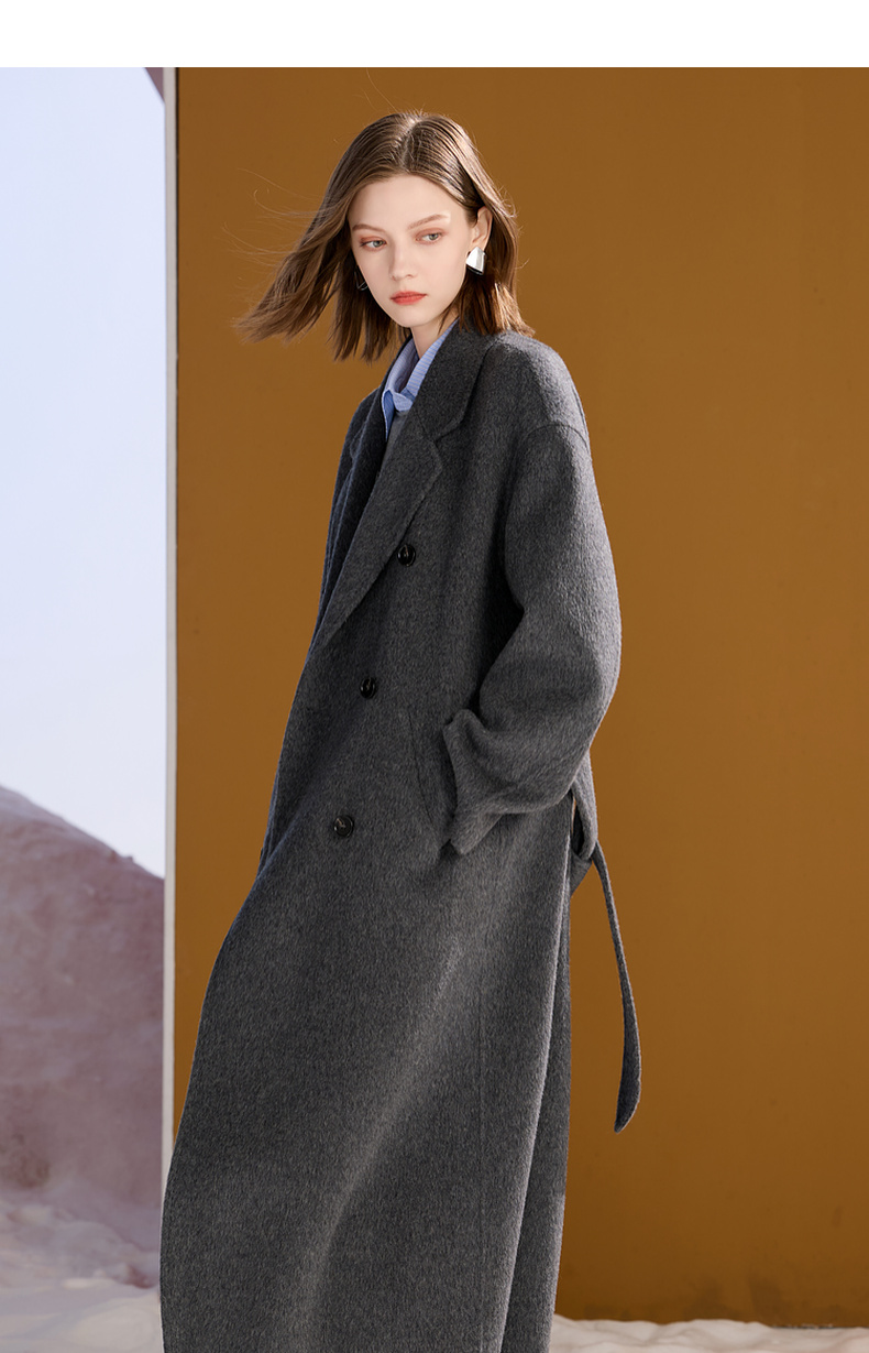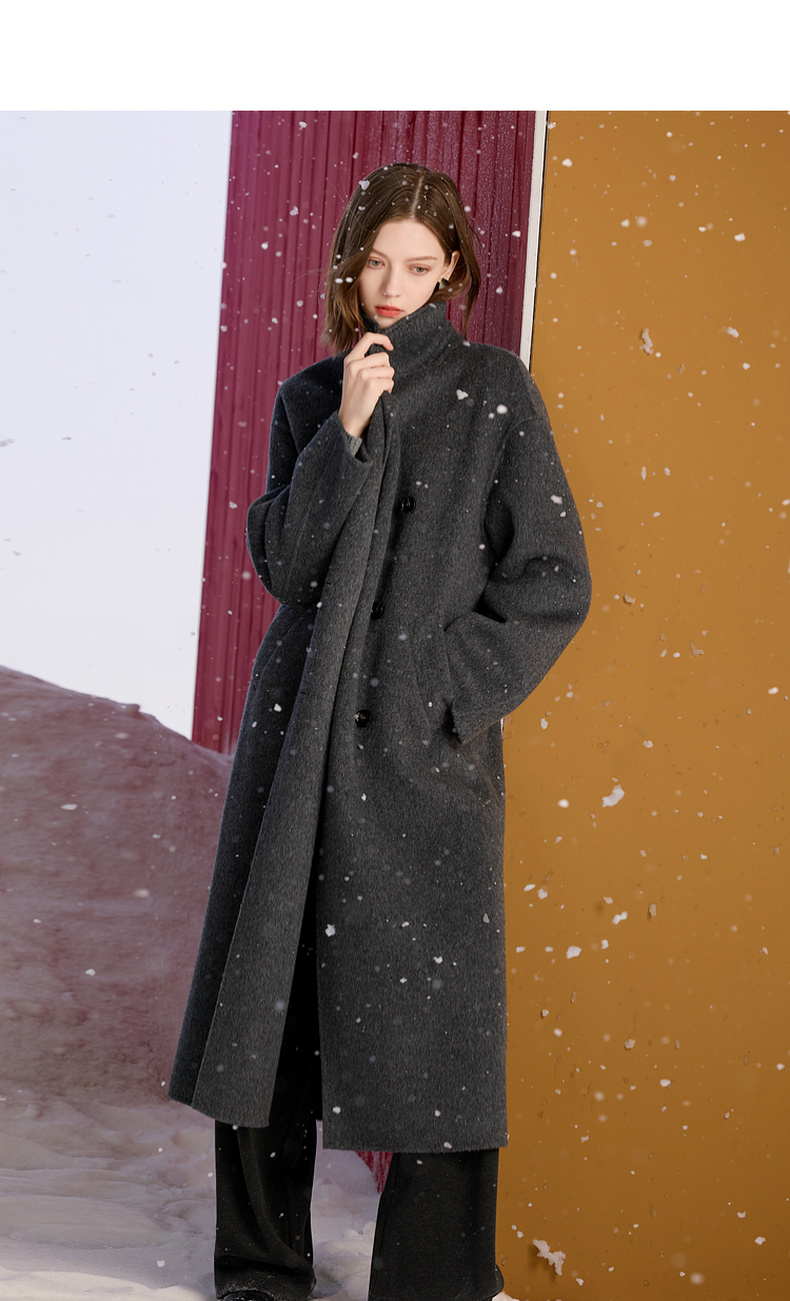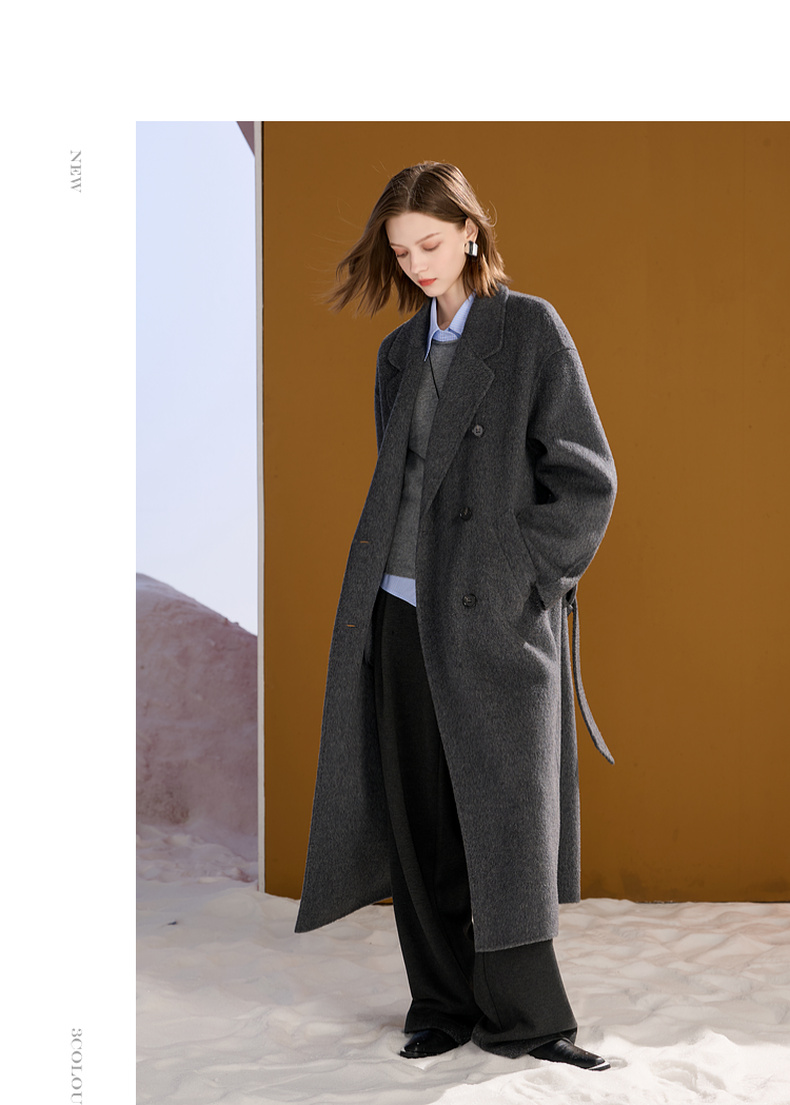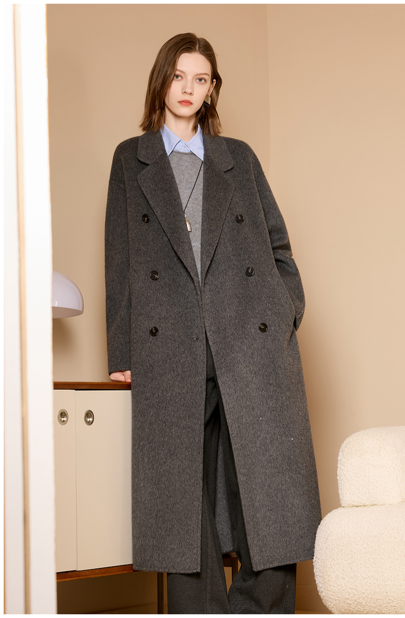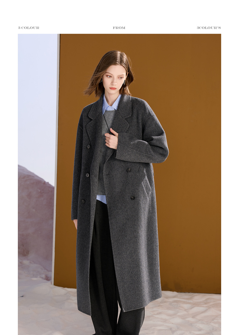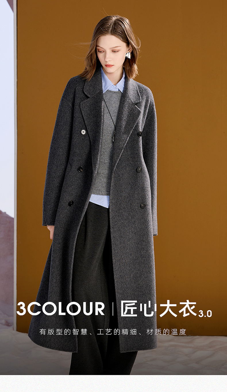 【绵羊毛】三彩2025冬季新款双面呢大衣长款双排扣毛呢外套S