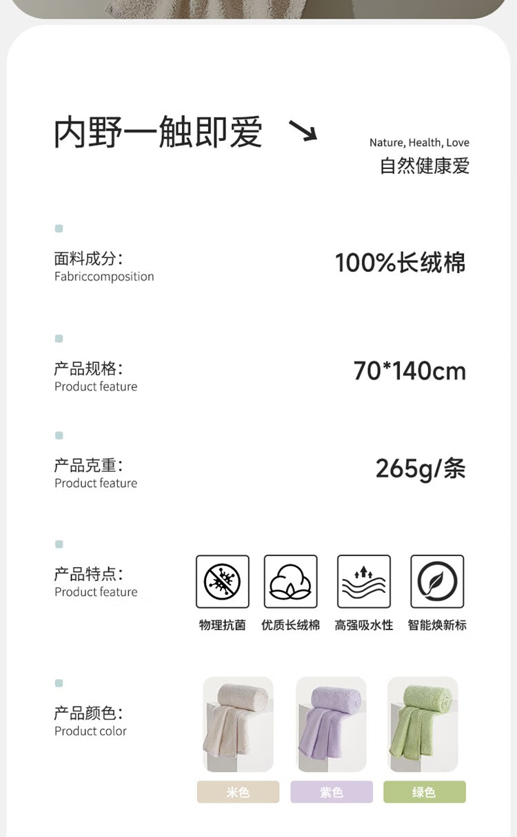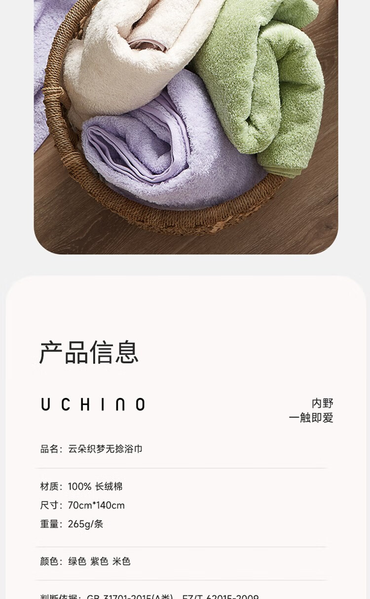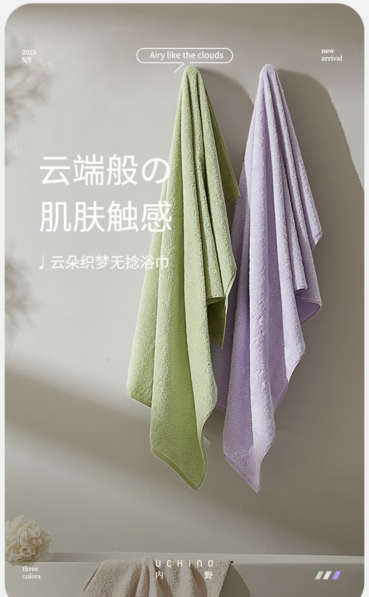 内野XS云朵织梦无捻新疆长绒棉浴巾