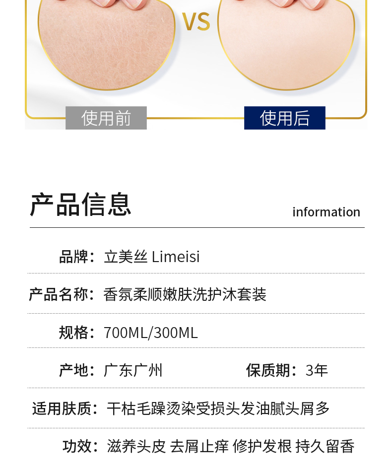 【立美丝】男女通用洗发水持久去屑止痒控油留香沐浴露护发素套装