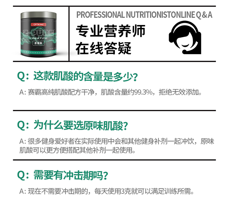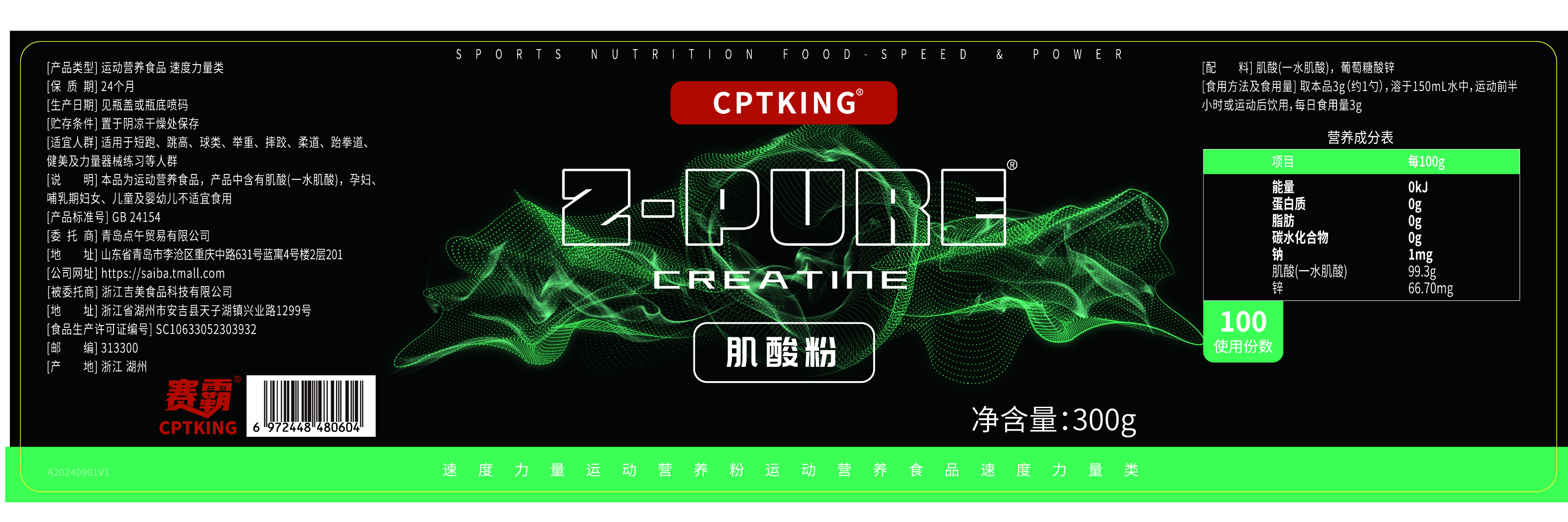 【CPTKING赛霸】肌酸粉300g一水肌酸男女健身增肌