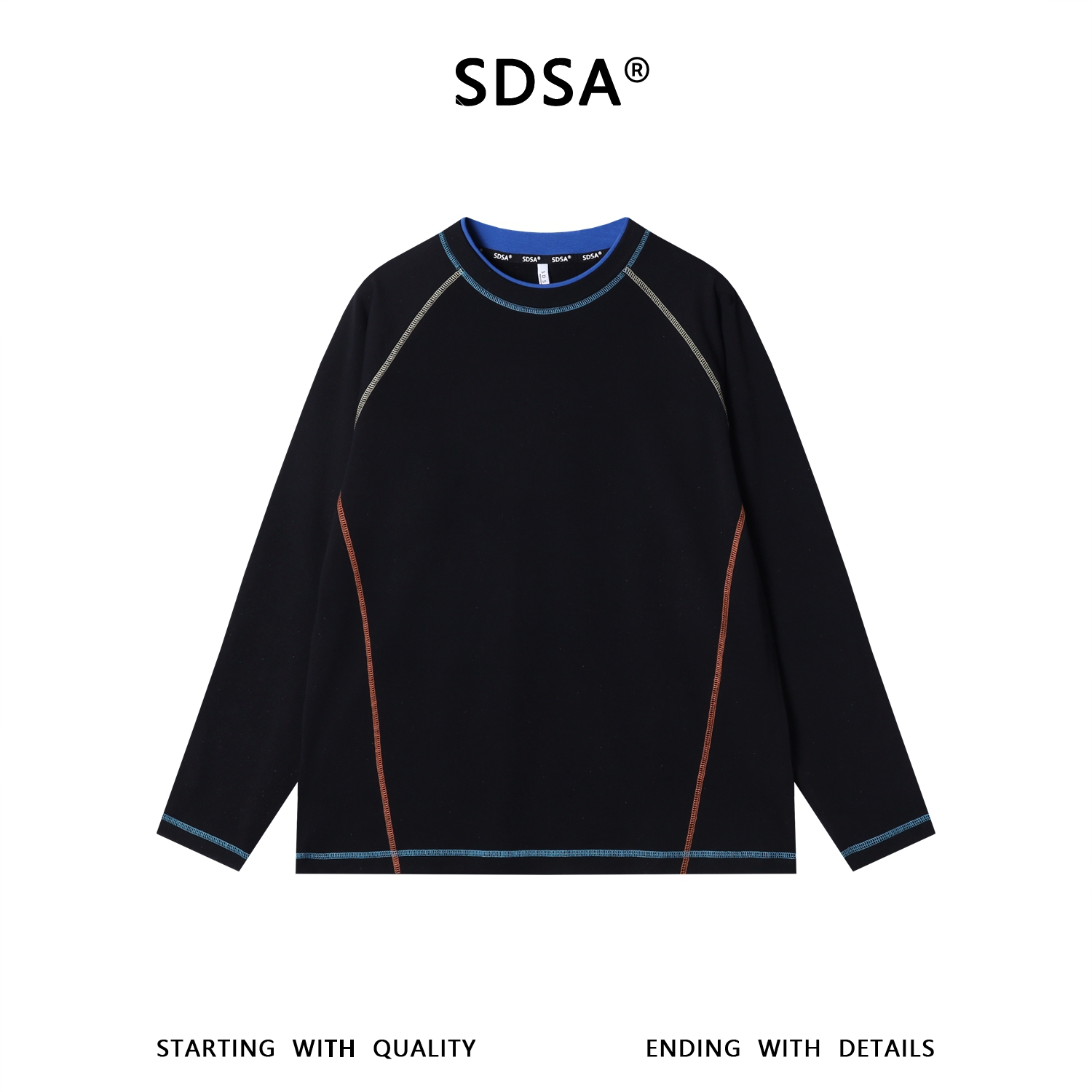 26T51SDSA男装2026新款潮牌街头风明线长袖撞色明线宽松圆领T恤