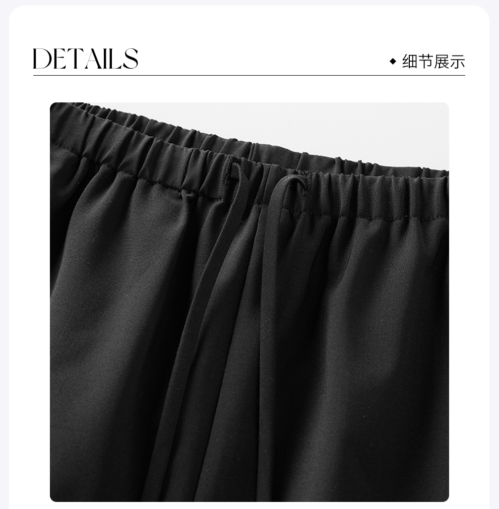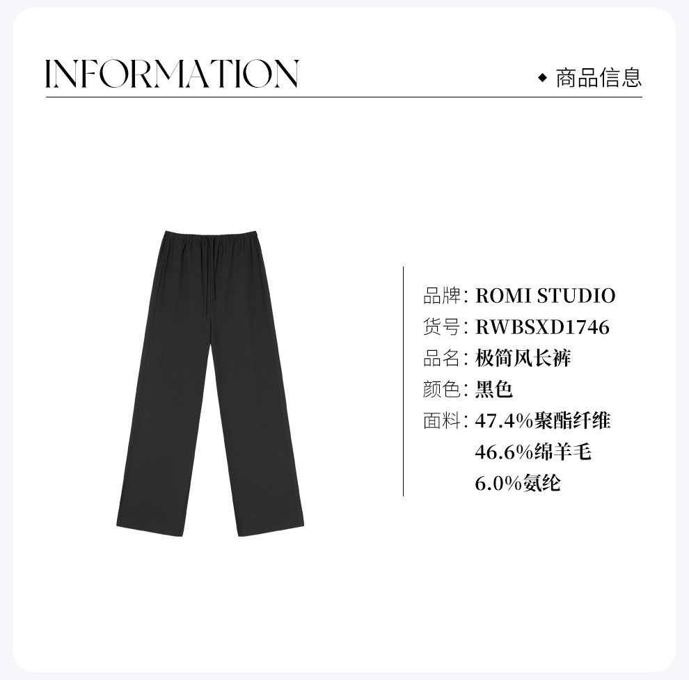 ROMI STUDIO极简舒适经典黑色百搭抽绳直筒休闲裤RWBSXD1746