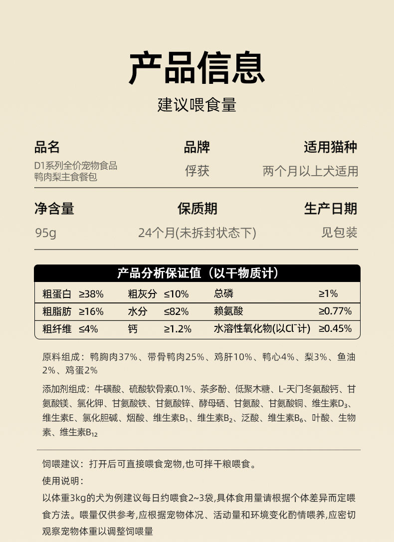 【限时8折】俘获D1狗狗鸭肉梨湿粮包全价主食湿粮包罐头鸭肉雪梨宠物餐包幼犬拌粮主食