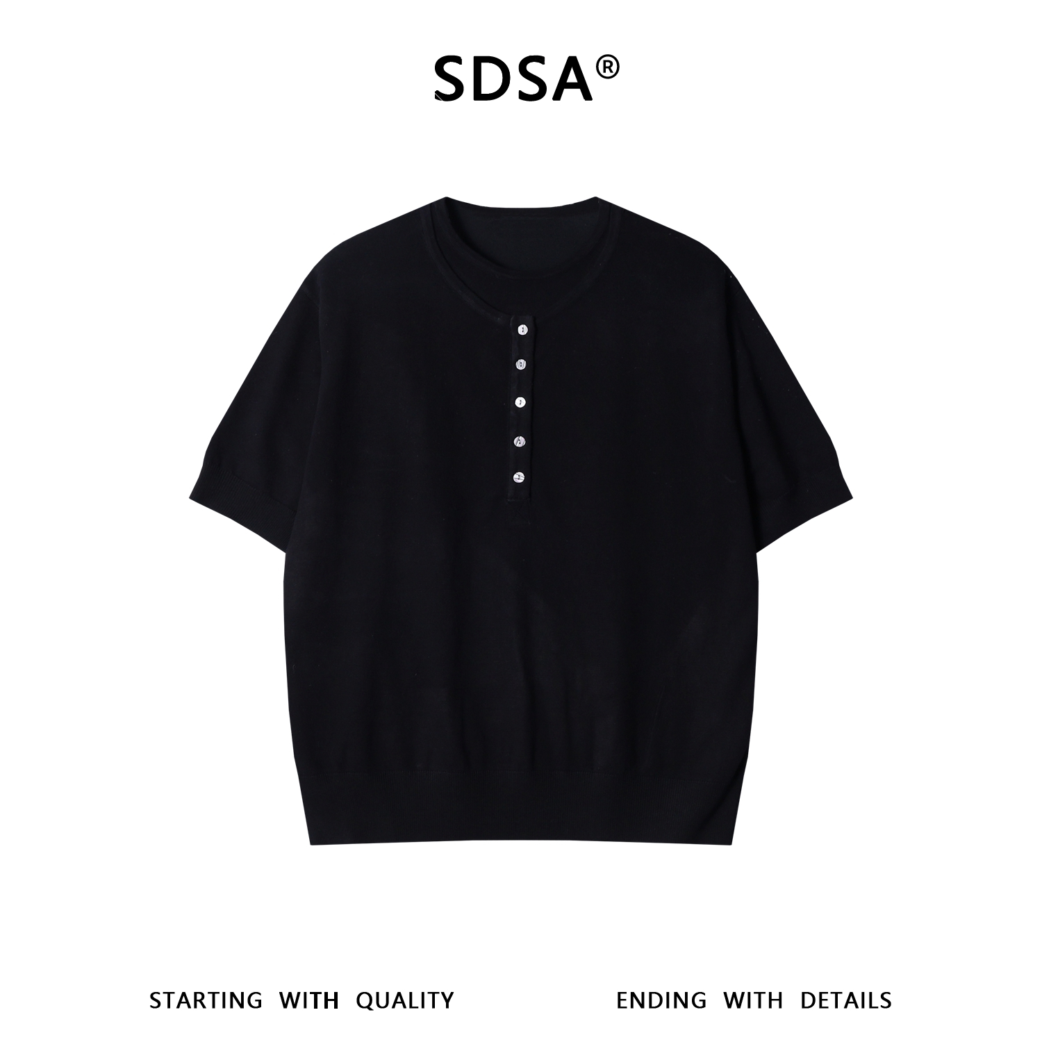 SDSA男装2026新款轻奢简约纯色简约假两件针织圆领短袖T恤百搭