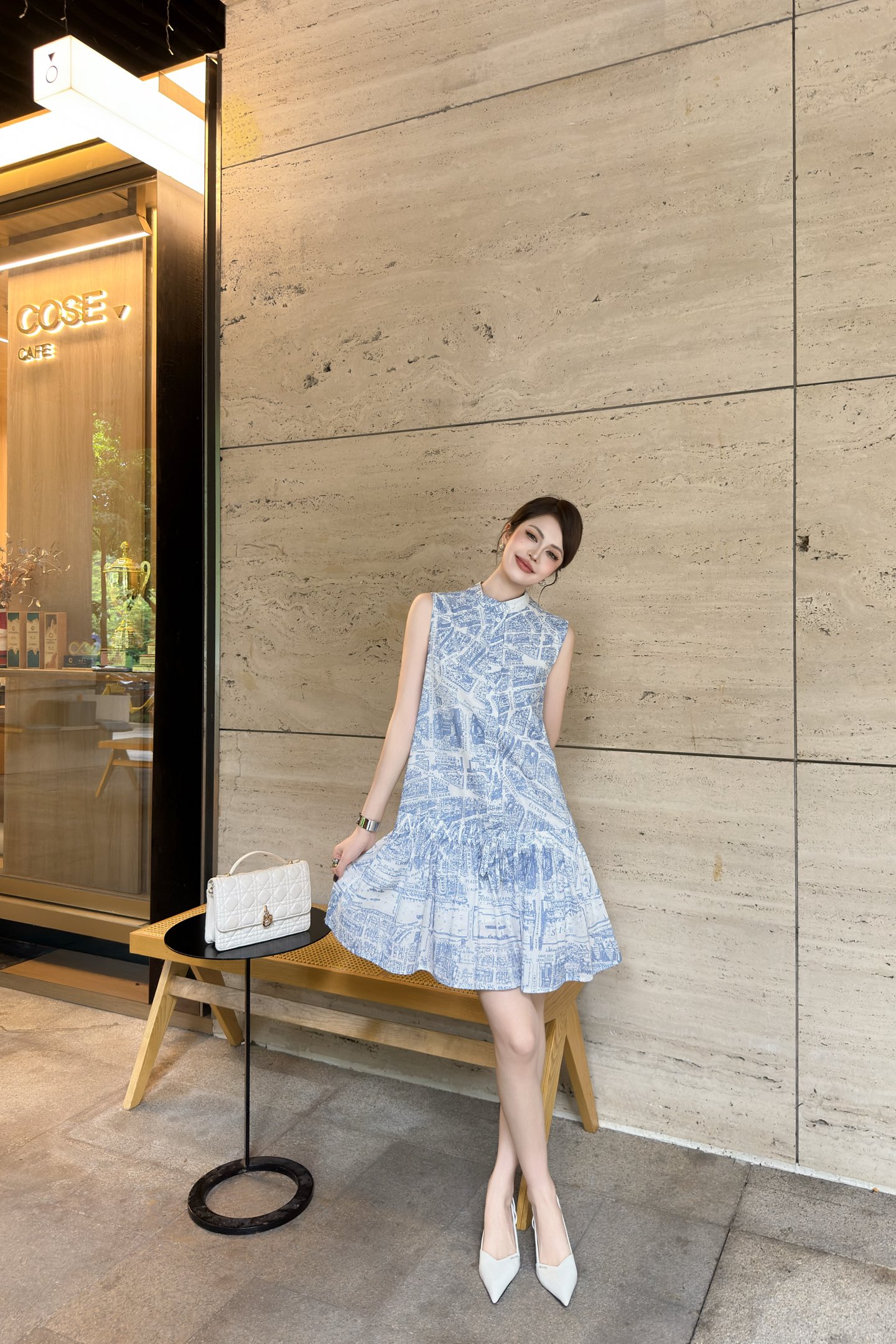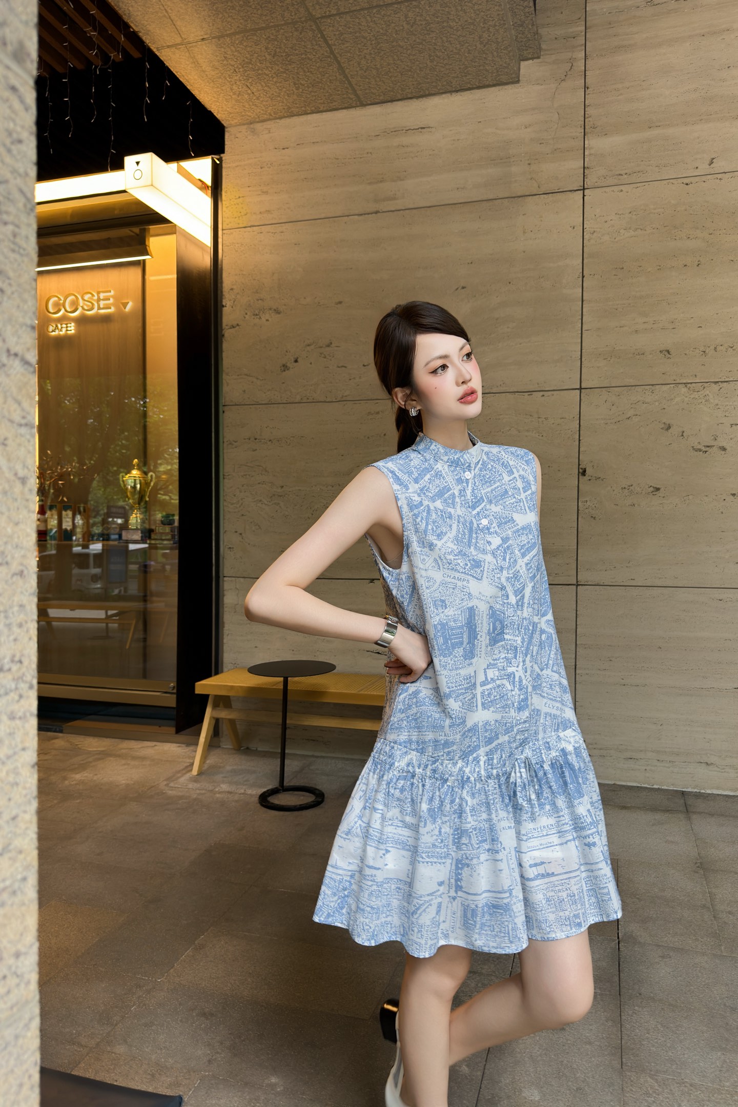 D家 25早秋新款 巴黎地图印花连衣裙