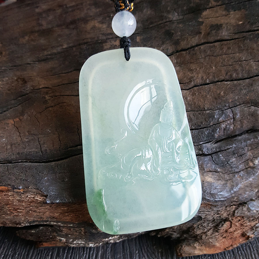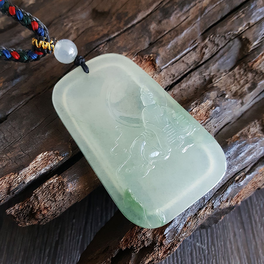 名称 | 天然收藏级冰种湖水绿飘花观音造型翡翠(平安、吉祥)吊坠项链 |