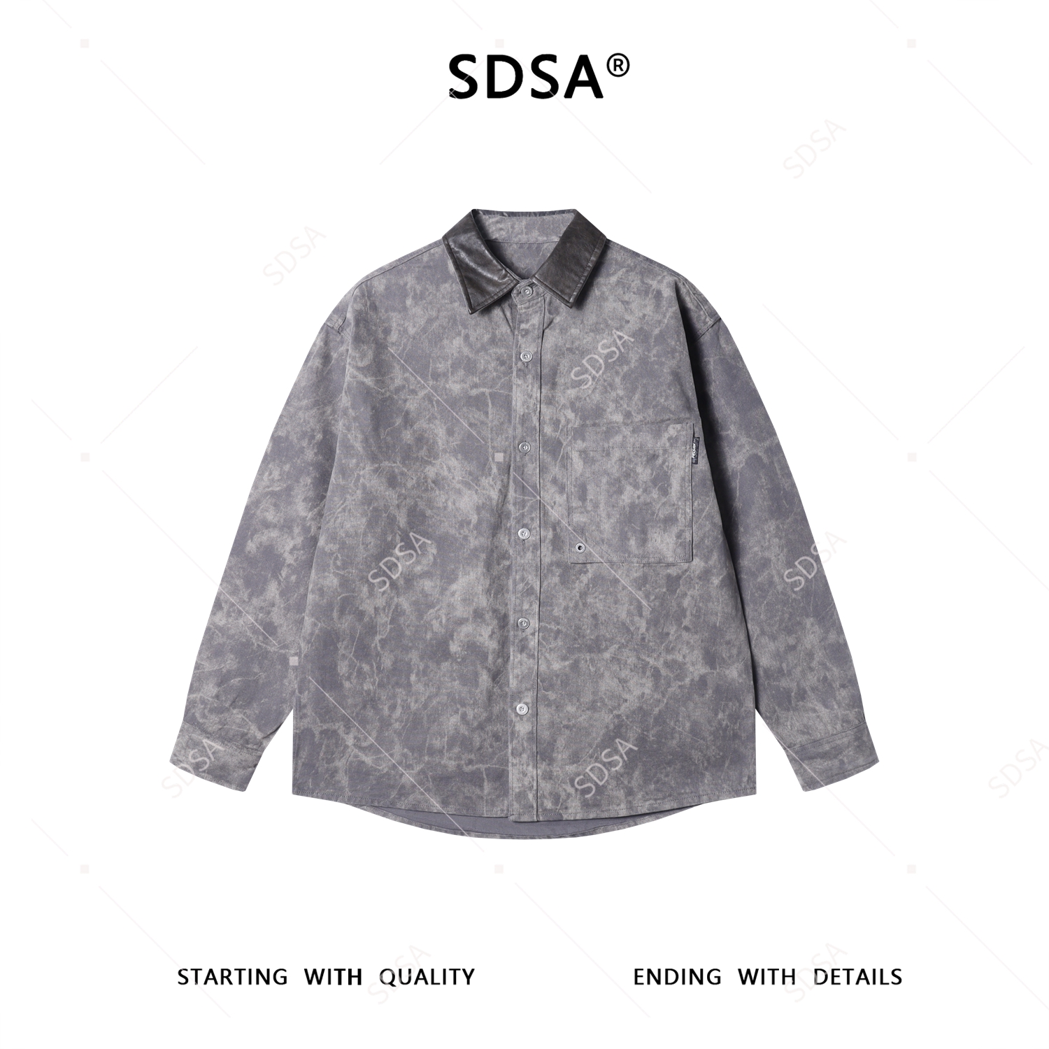 6016SDSA男士秋冬新款痞帅男装韩版扎染拼接翻领休闲长袖衬衫百搭衬衣