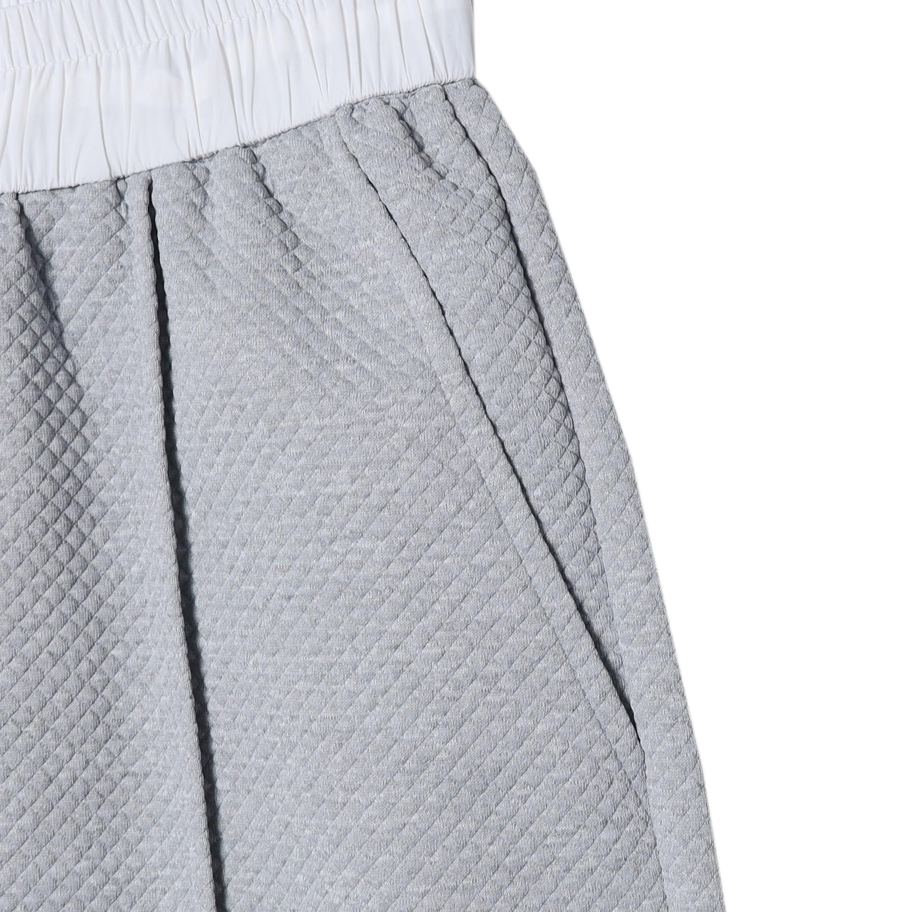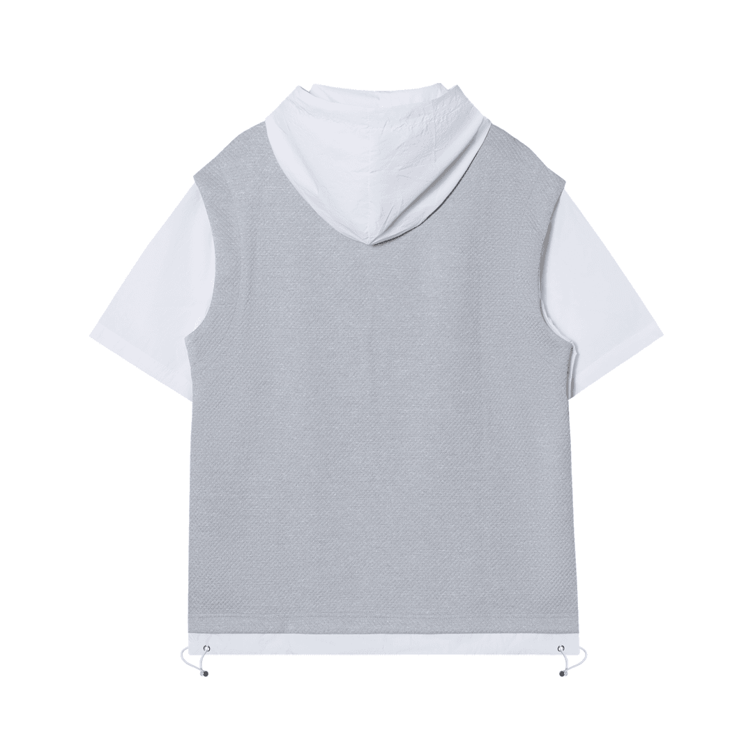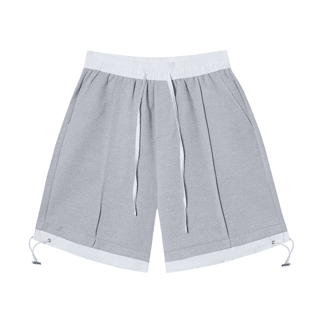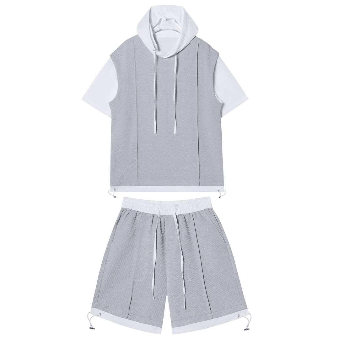 T1182新款灰白拼接连帽男士套装百搭潮流街头休闲上衣宽松短裤