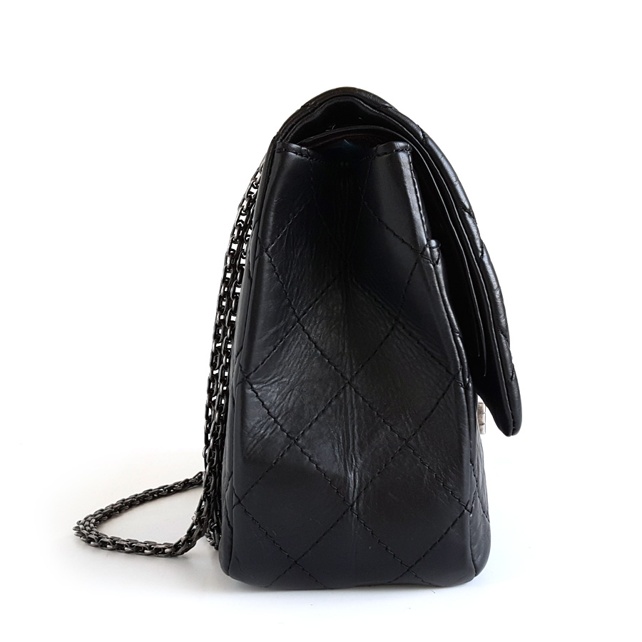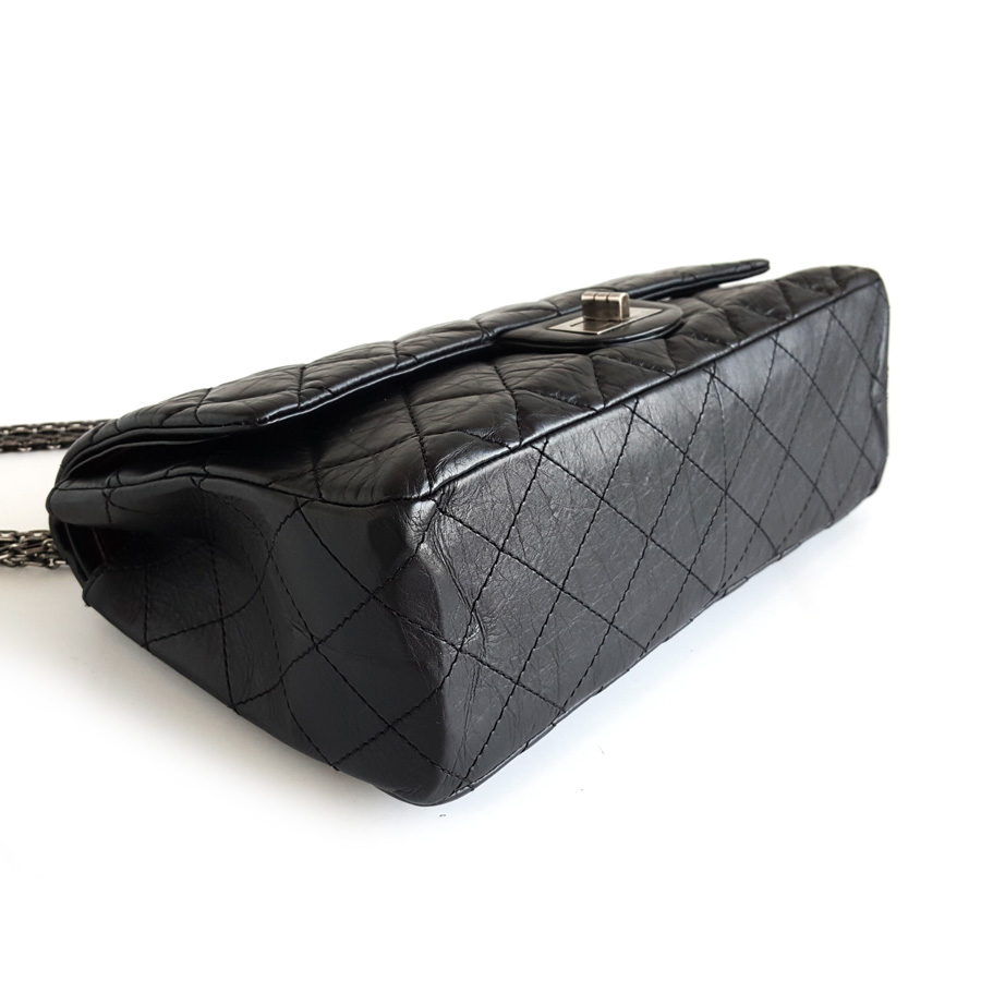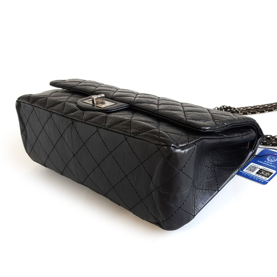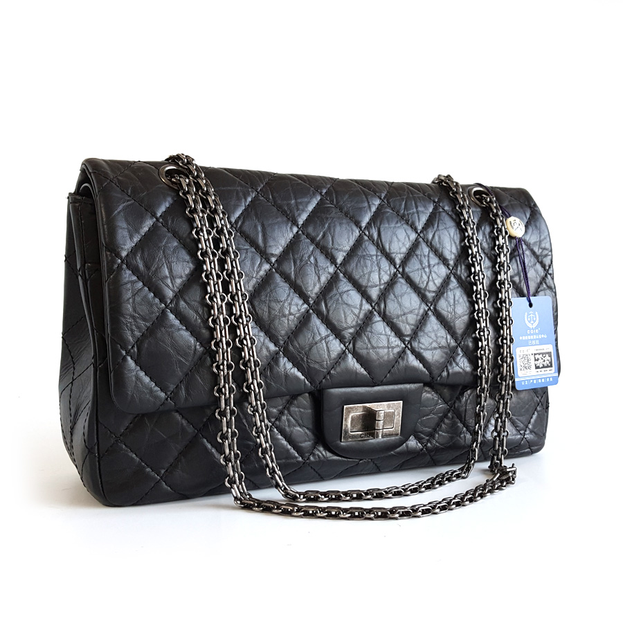 【95新】CHANEL香奈儿2.55A37590Y04150C3906大号31CM黑银牛皮2.55链条包单肩包女士 281225AK43