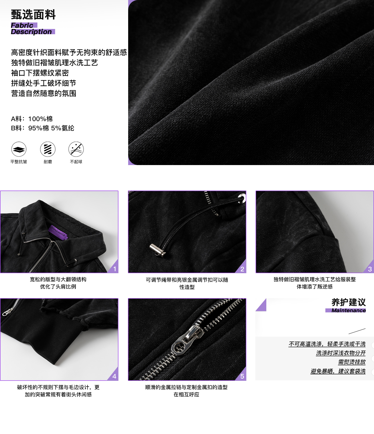 TIWILLTANG启世录“缄默异秩”斜门襟结构牛仔水洗夹克无领外套男