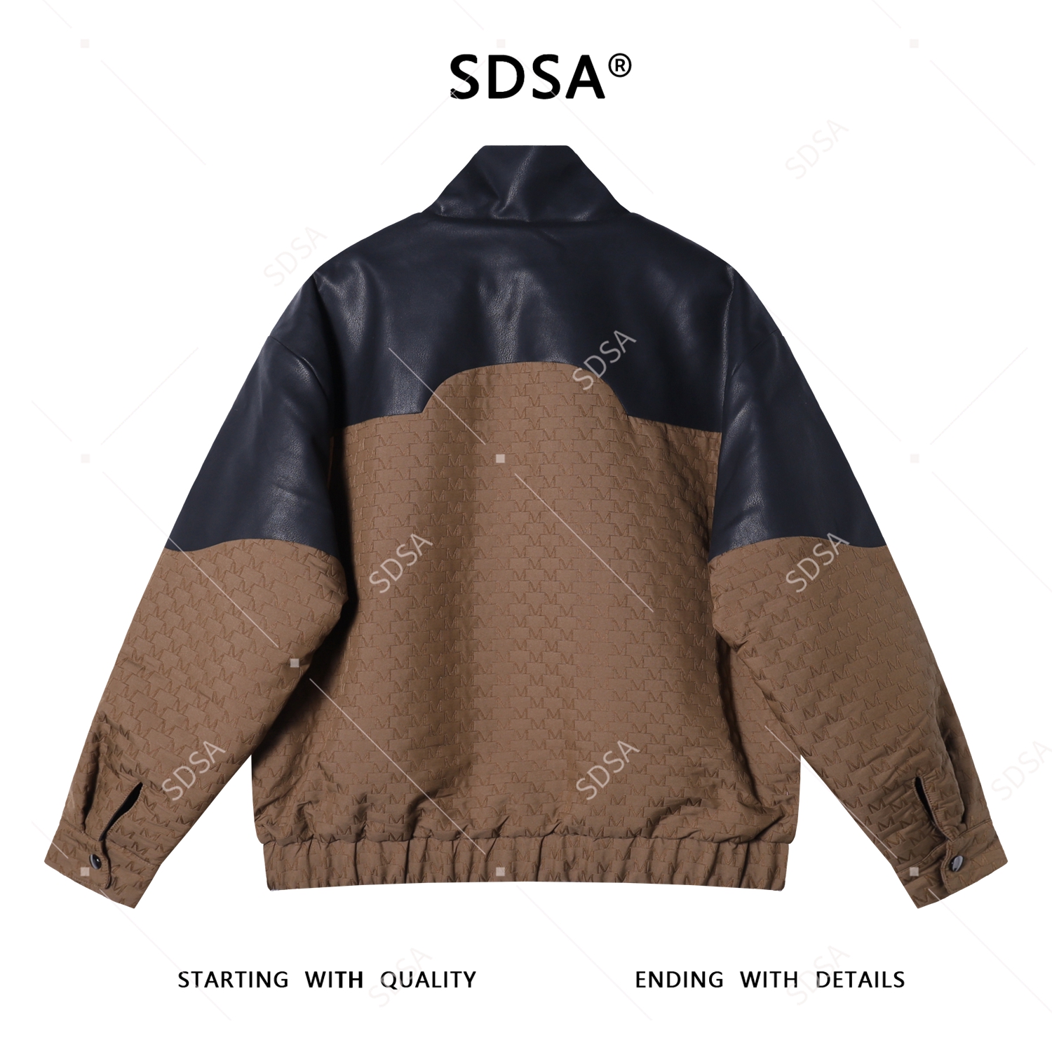 2293SDSA男士秋冬新款痞帅男装美式撞色拼皮立领夹克棉服百搭时尚外套