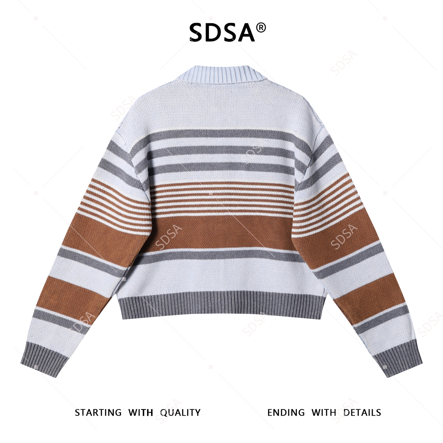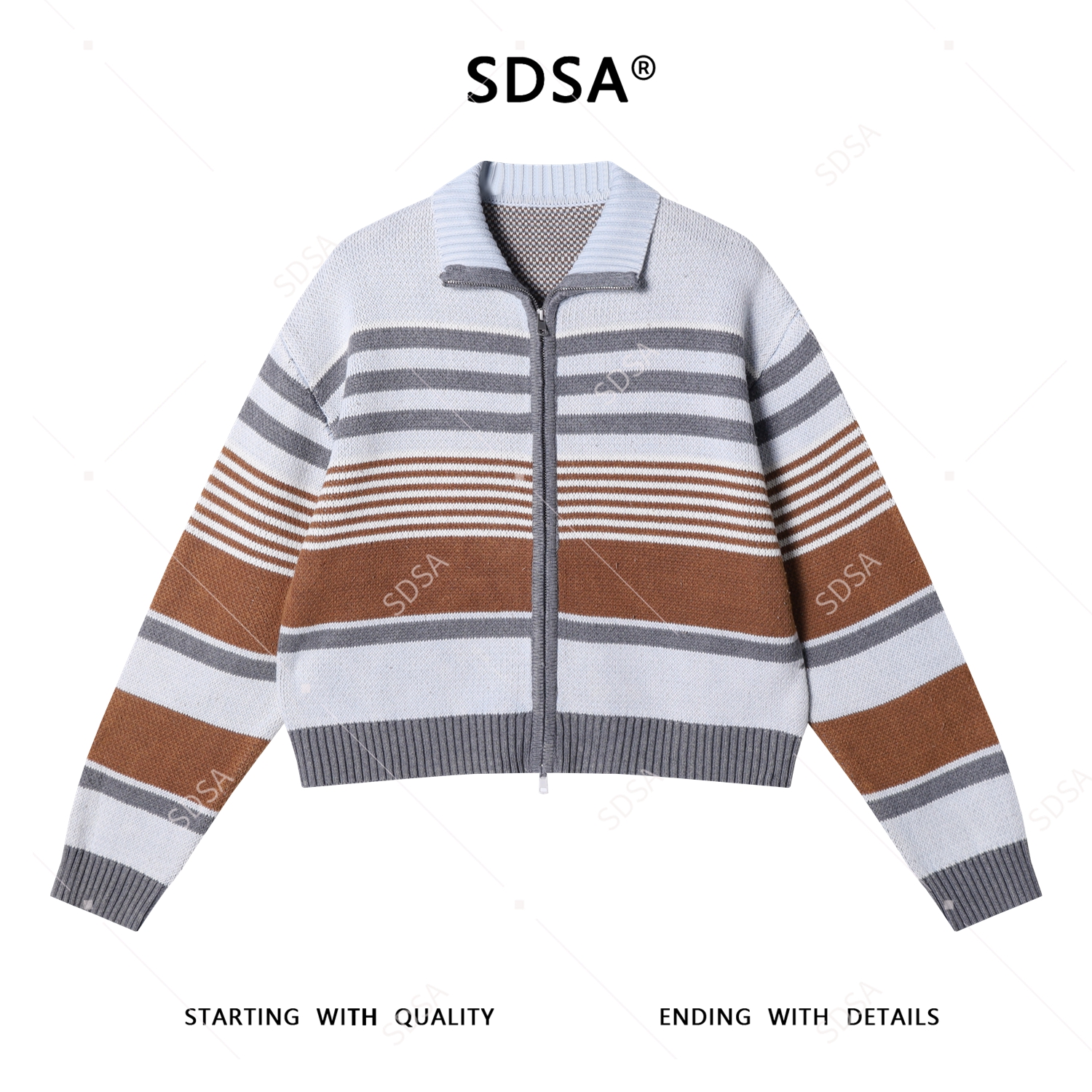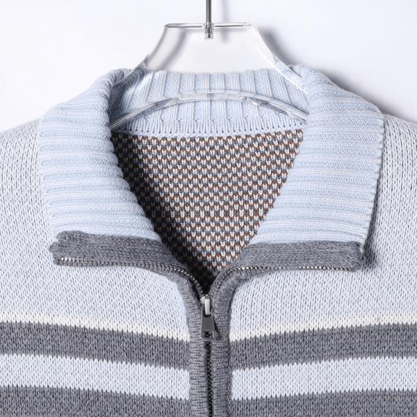 72367SDSA秋冬新款痞帅男装复古时尚条纹拉链翻领针织衫百搭开衫毛衣