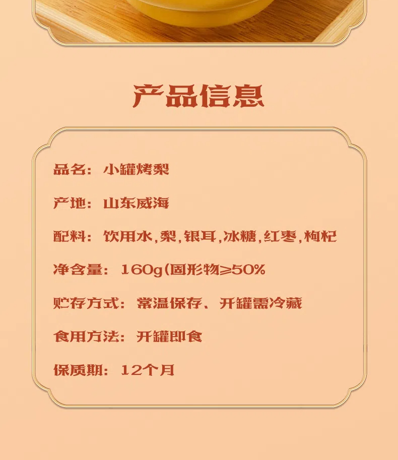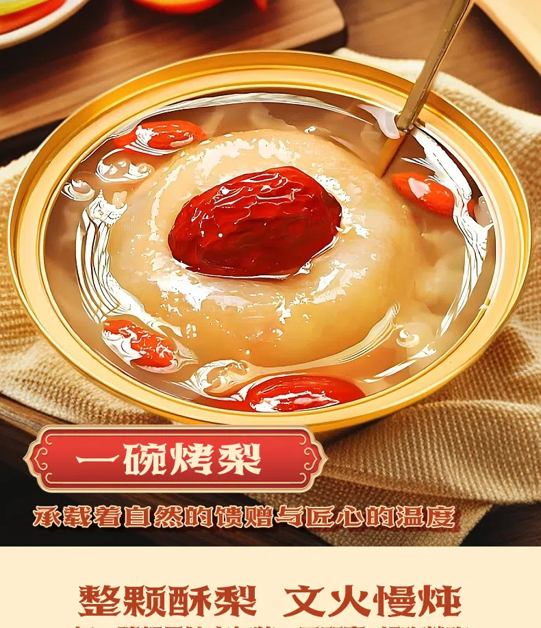鲜炖整颗梨礼盒160g/碗 即食烤梨红枣枸杞莲子 水果罐头 -正洋