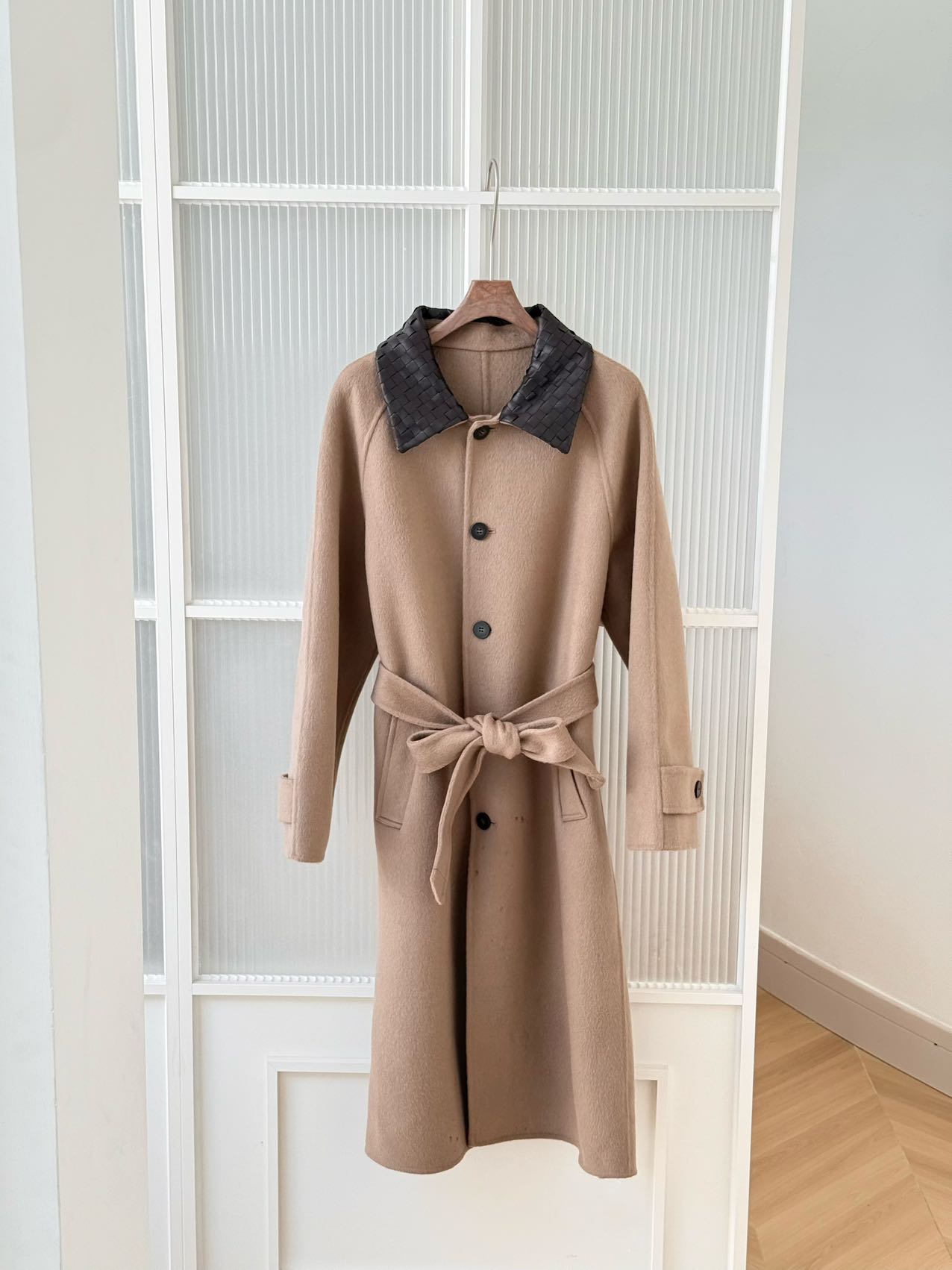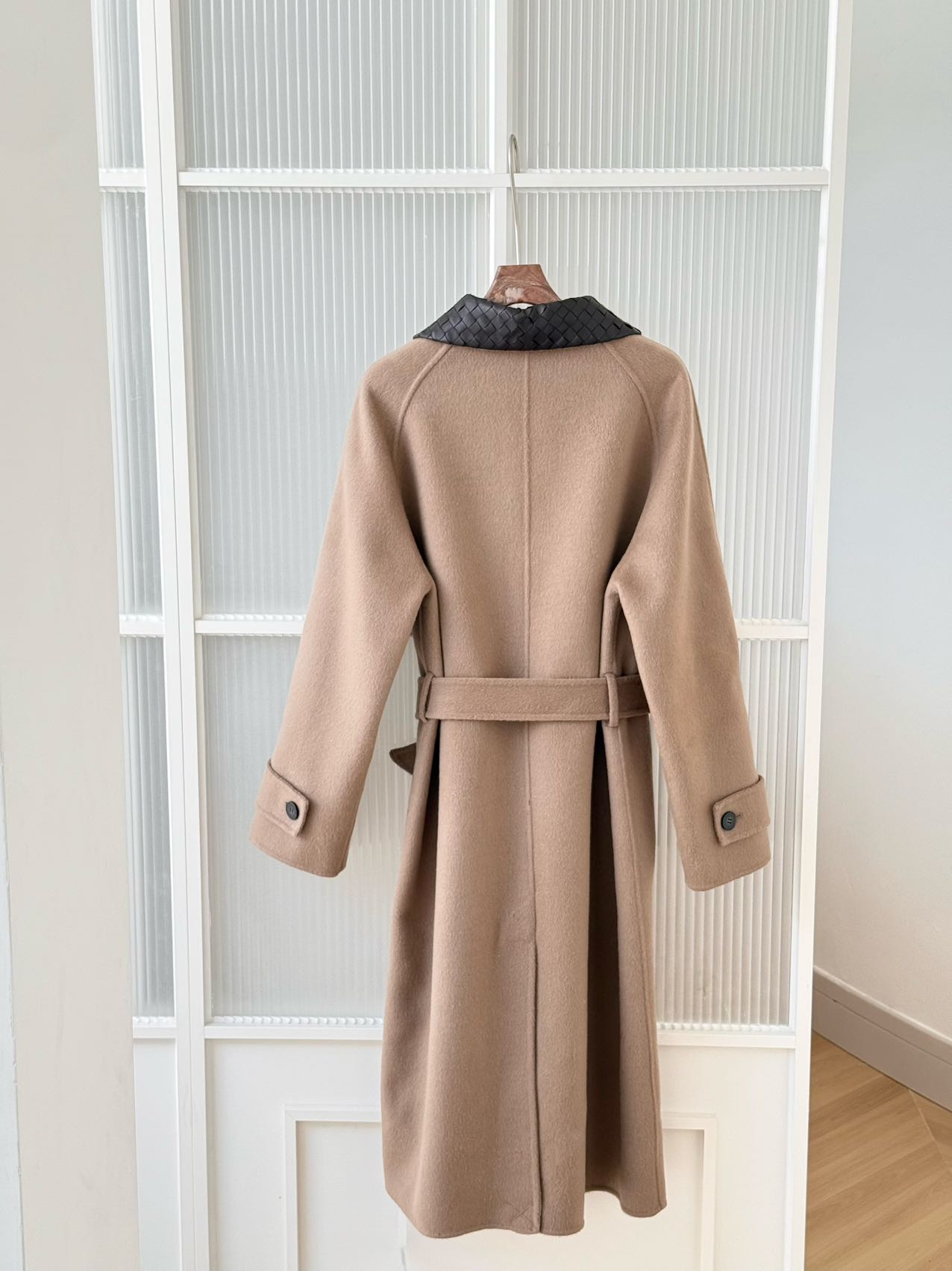 🧥 2025BV撞色编织皮领双面羊毛羊绒大衣