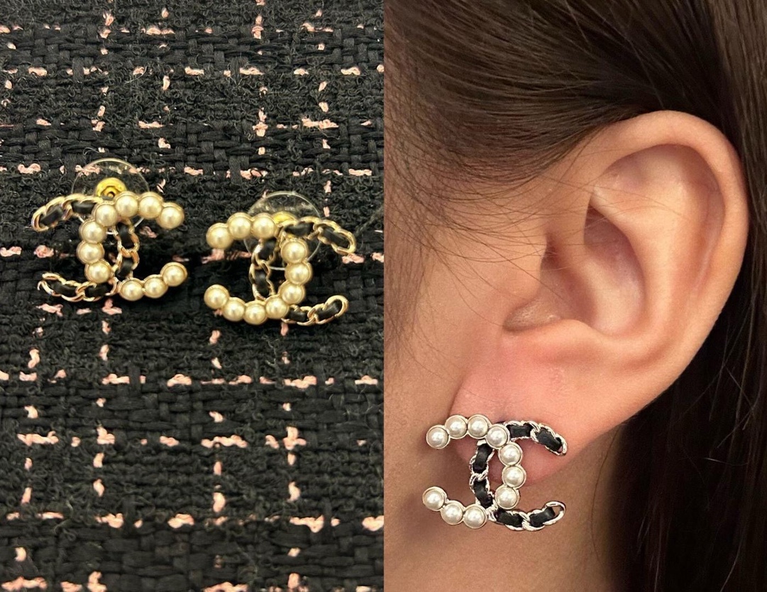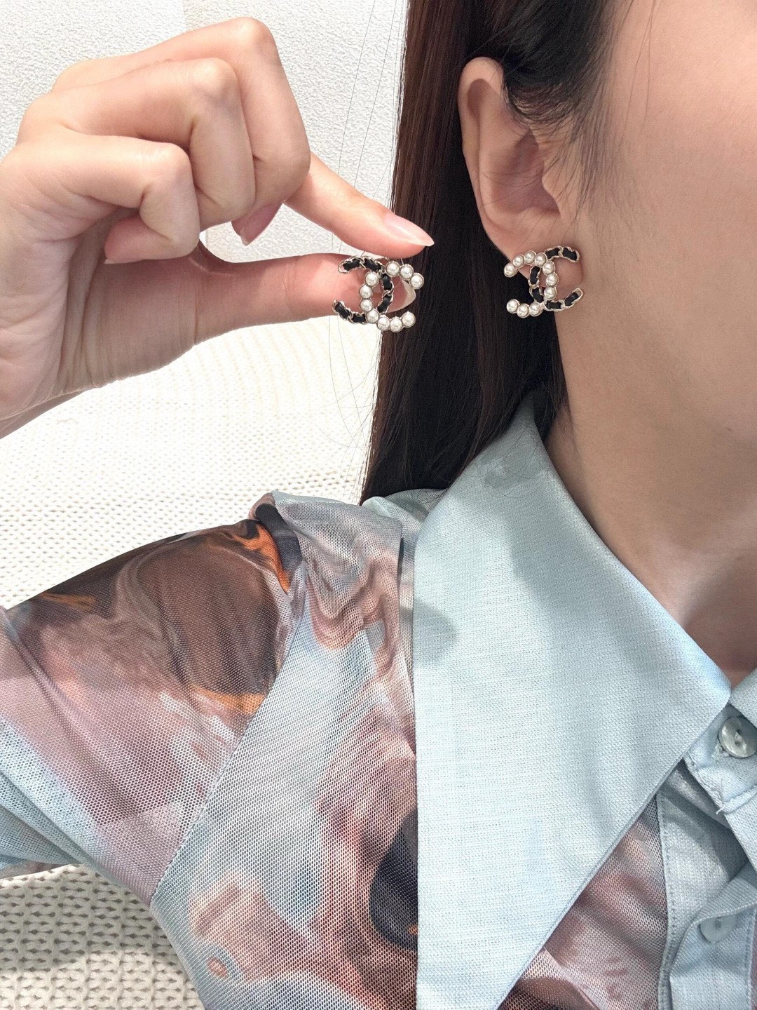 【香穿皮珍珠双c耳钉】Z 4800,量大咨询客Fu❗️25秋冬最新款❗️本季必入爆款🔥编号251208821,送包装!最最最经典的穿皮设计,每季必入的CC系列🤩酷帅不羁中带着复古的经典😍一半珍珠,一半皮穿链!黄金尺寸!超级修饰脸型!简约又有点存在感💗上身简单干练,经典百搭❗️日常通勤必入👍🏻👍🏻