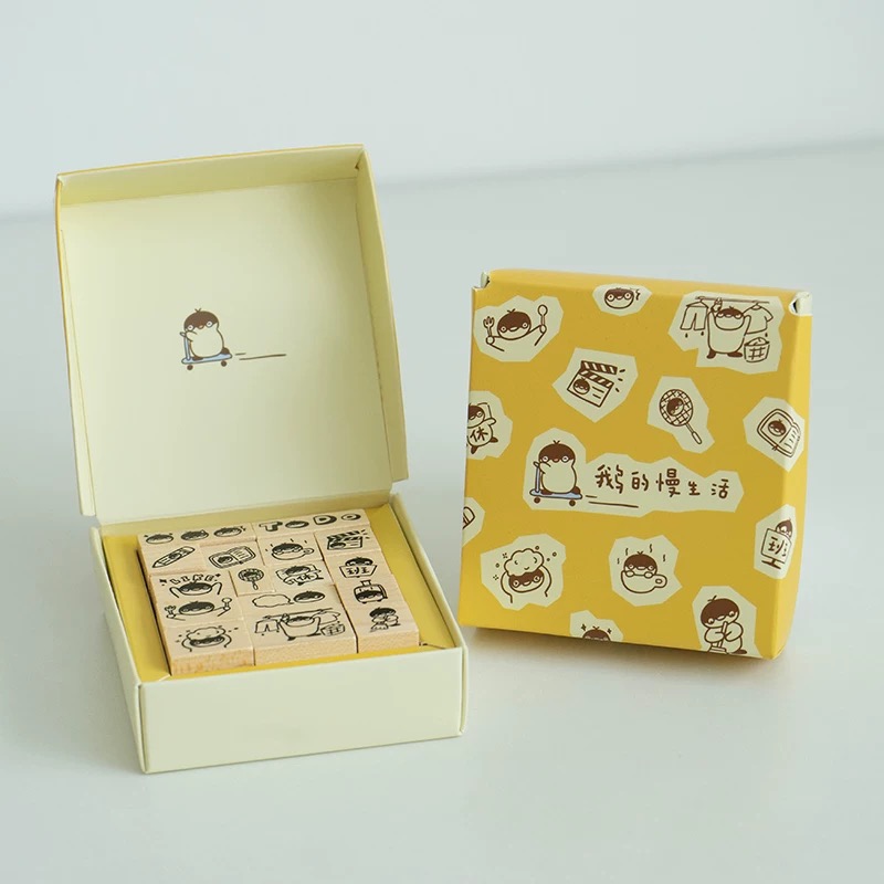 白日几何 卡乐鹅系列鹅的慢生活diy木头印章单枚生活记录手帐素材