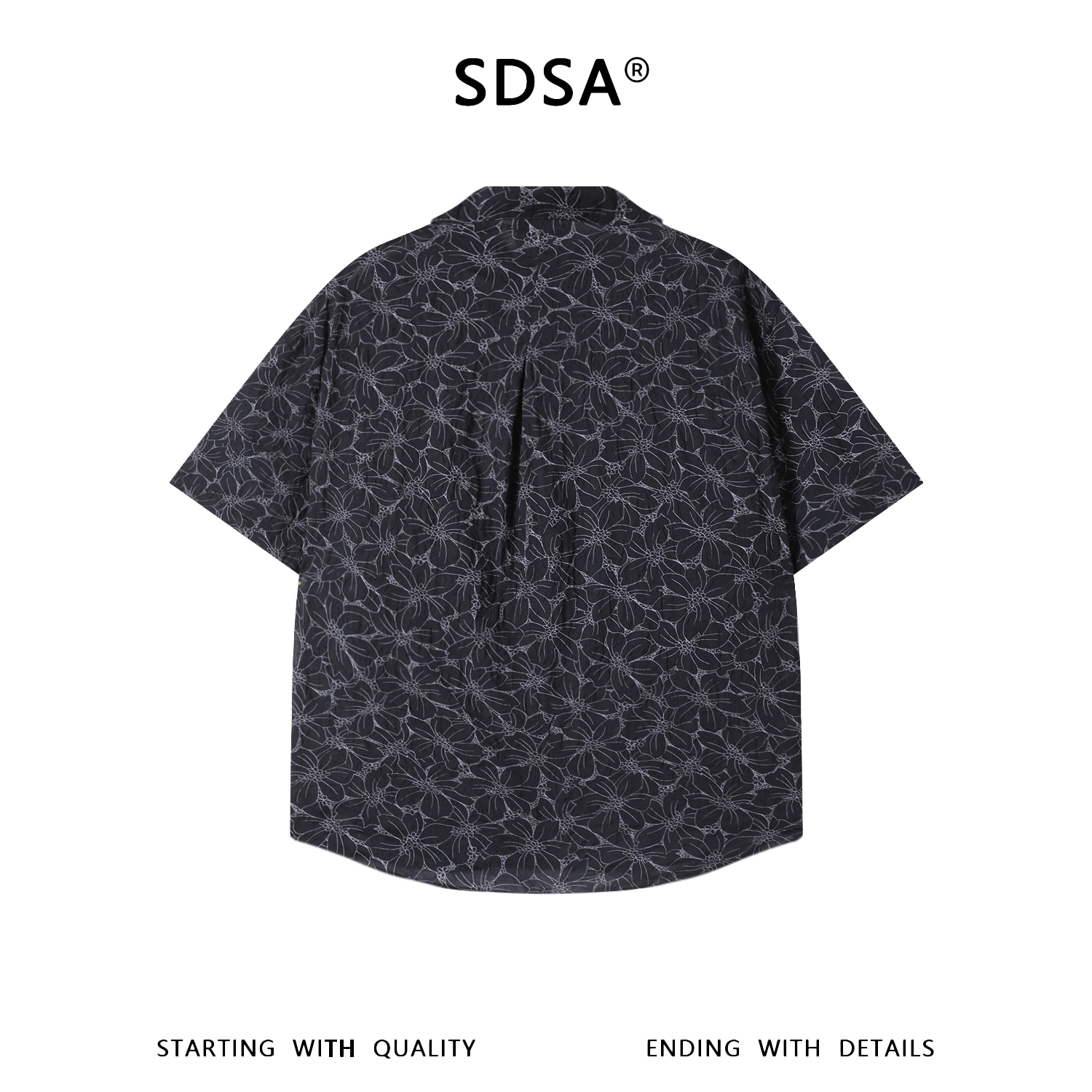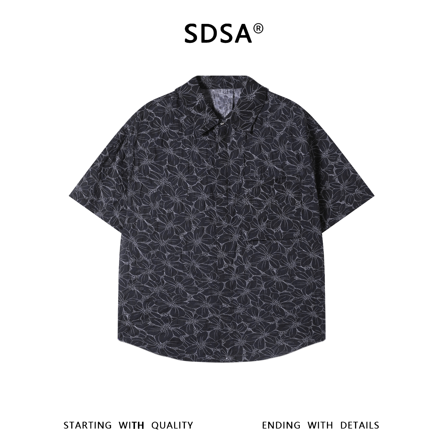 SDSA男装2026新款高贵轻奢日系简约满印植物花卉短袖衬衫百搭休闲