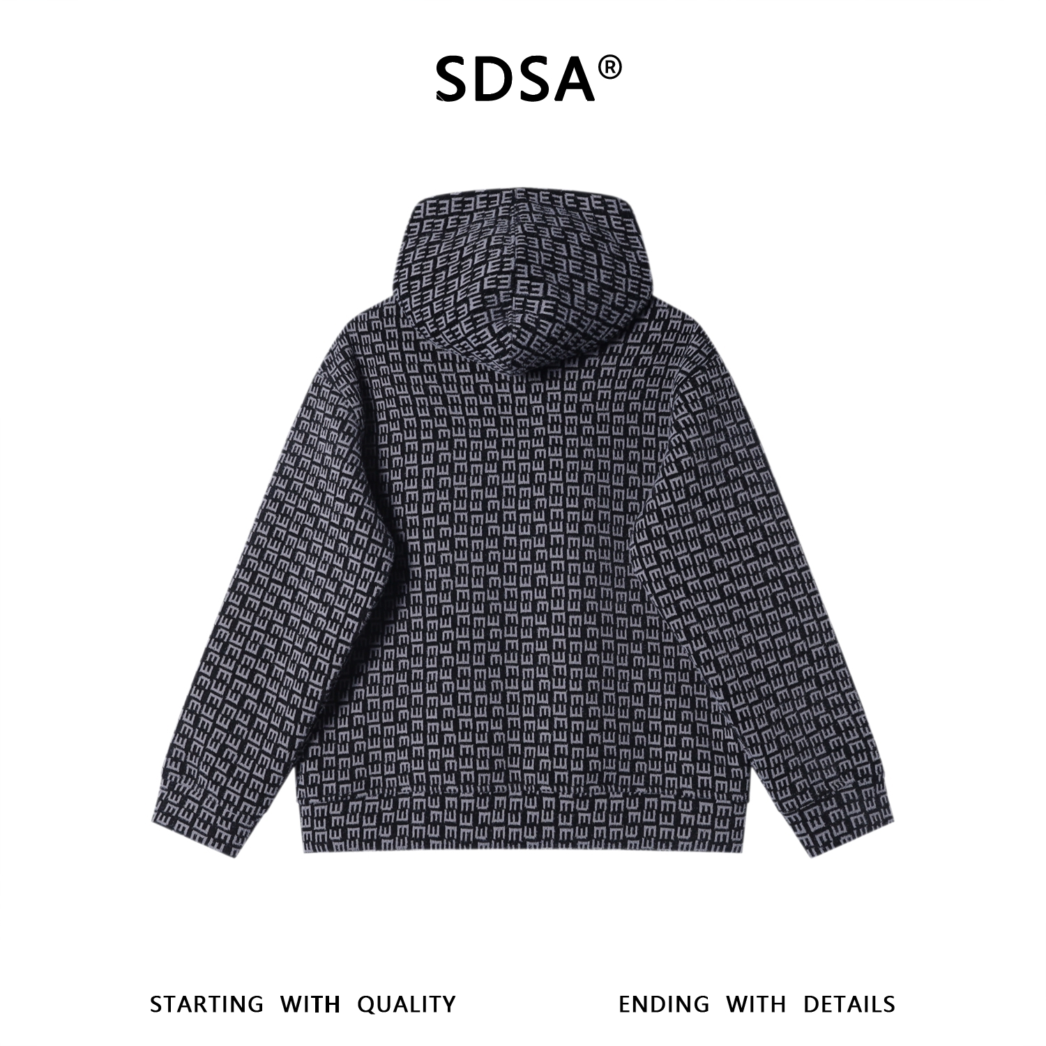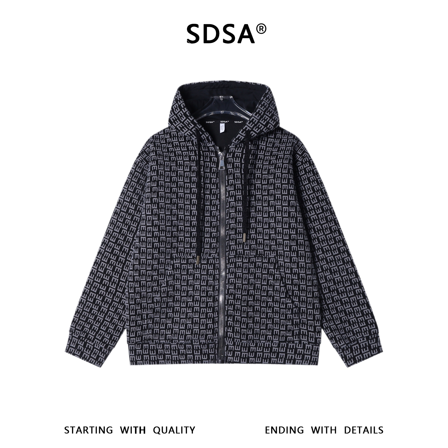 SDSA男士秋冬新款痞帅男装时尚撞色满印字母绒毛拉链连帽卫衣百搭