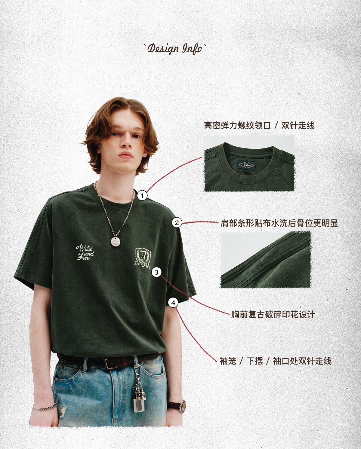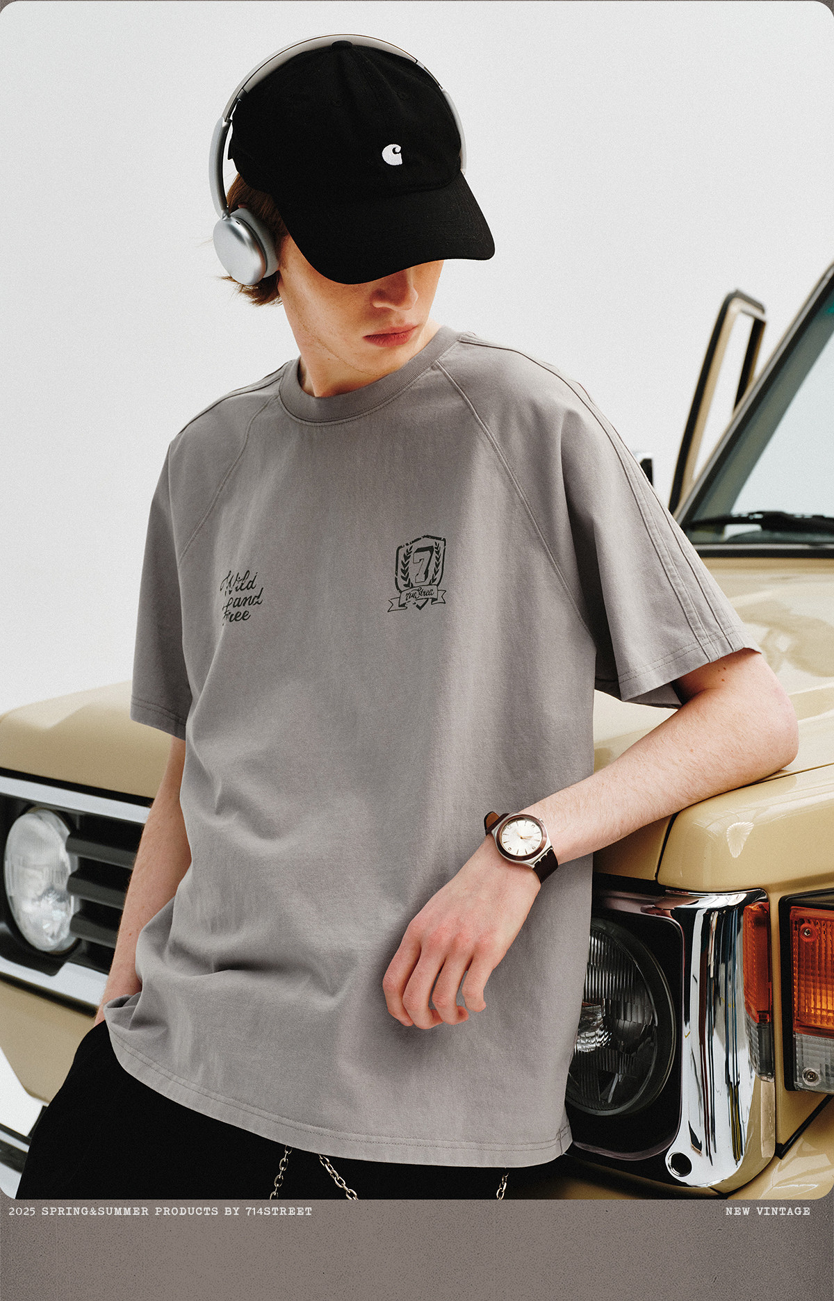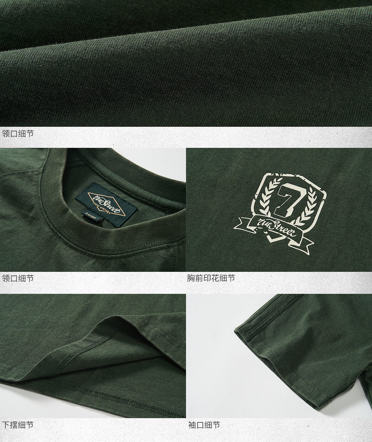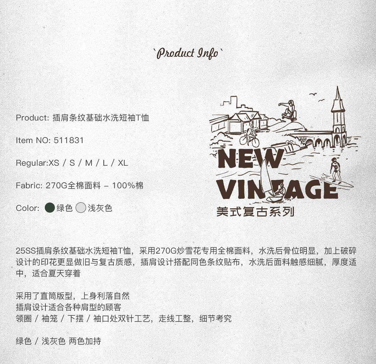 714street重磅270g全棉水洗做旧插肩短袖T恤男2025夏季新款情侣装