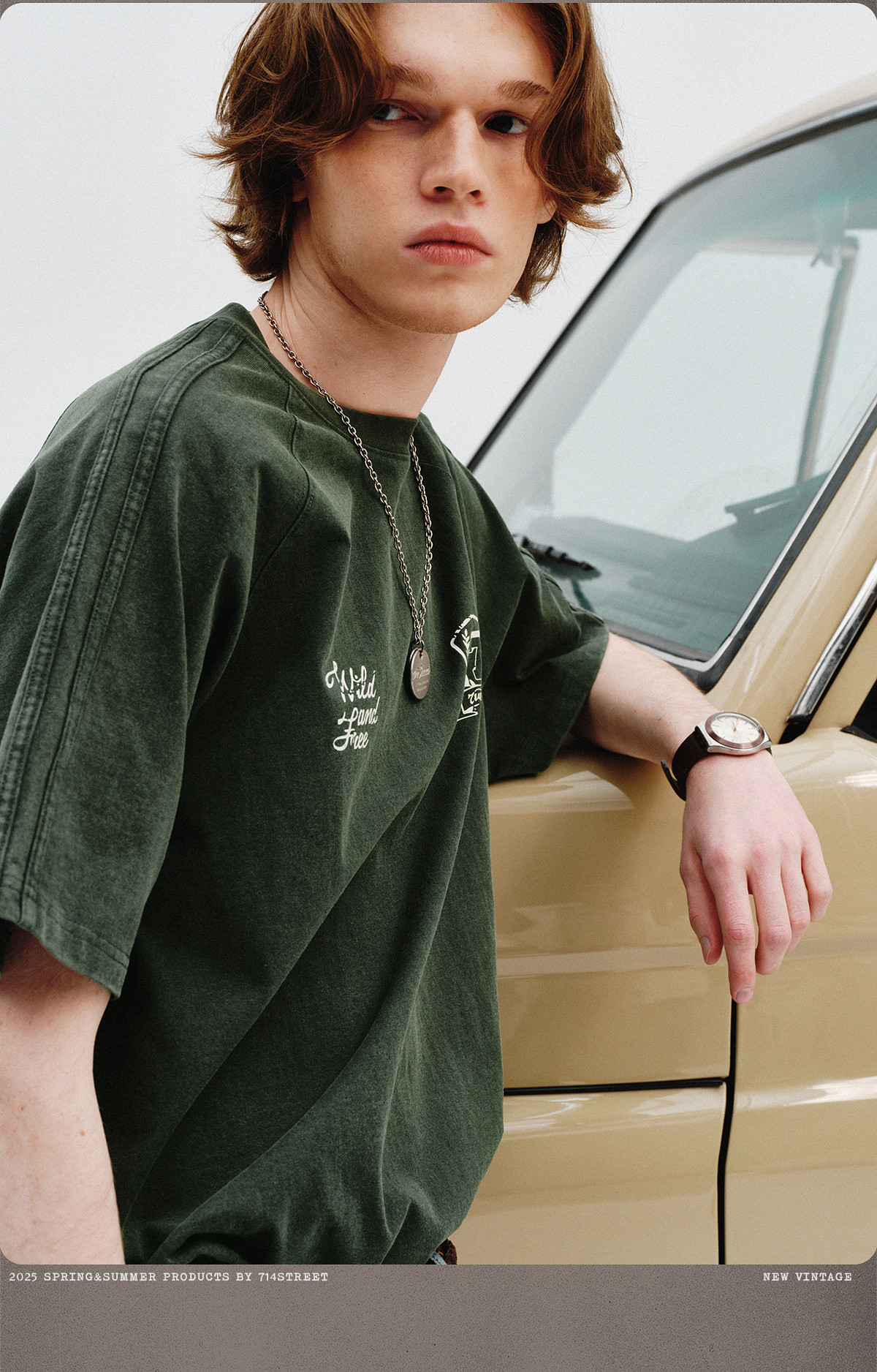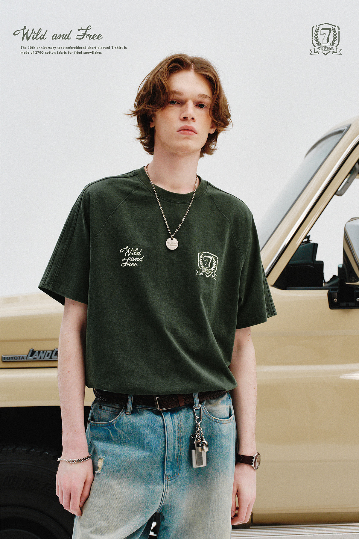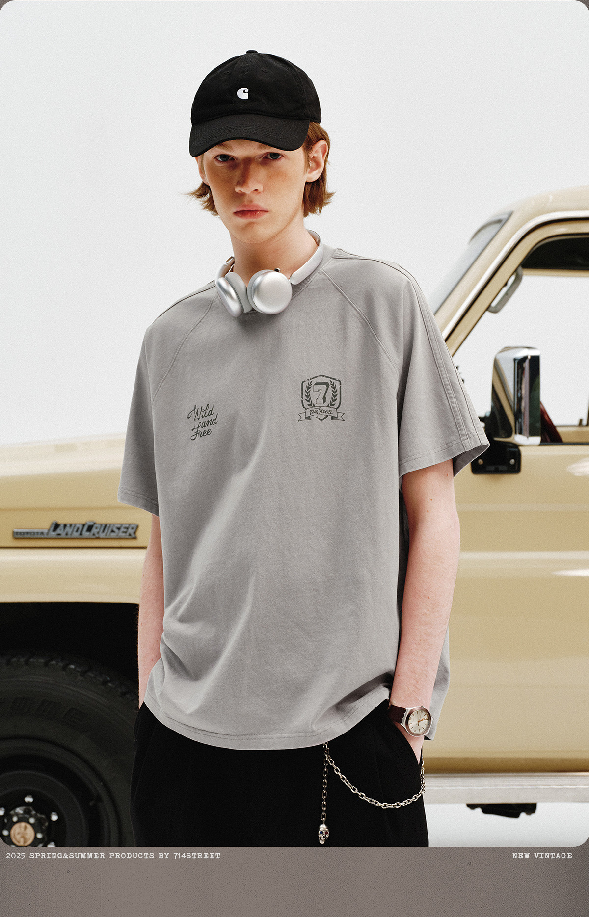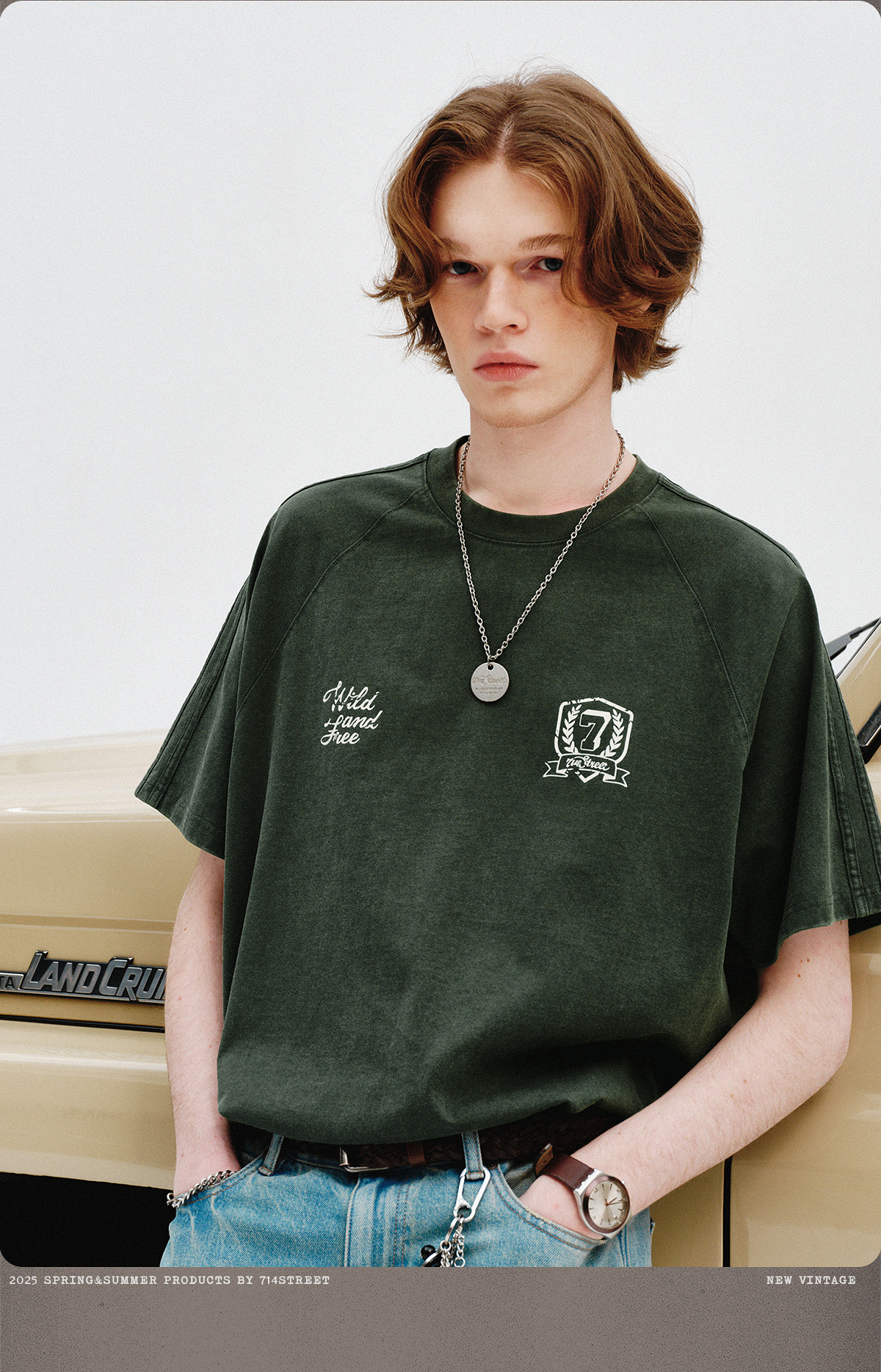 714street重磅270g全棉水洗做旧插肩短袖T恤男2025夏季新款情侣装