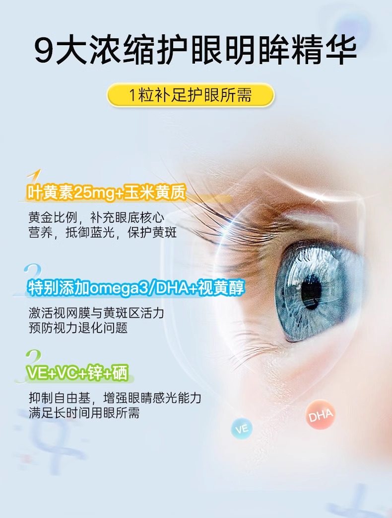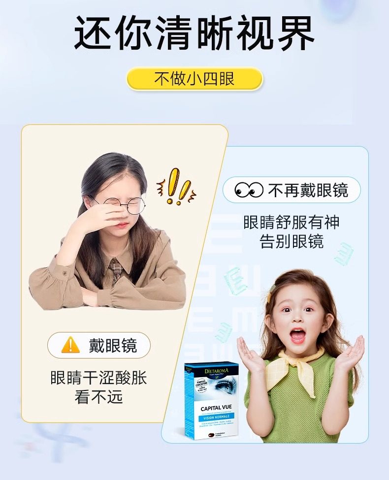 【明眸再现】度数儿童修护叶黄素护眼散光保护视力青少年官方旗舰