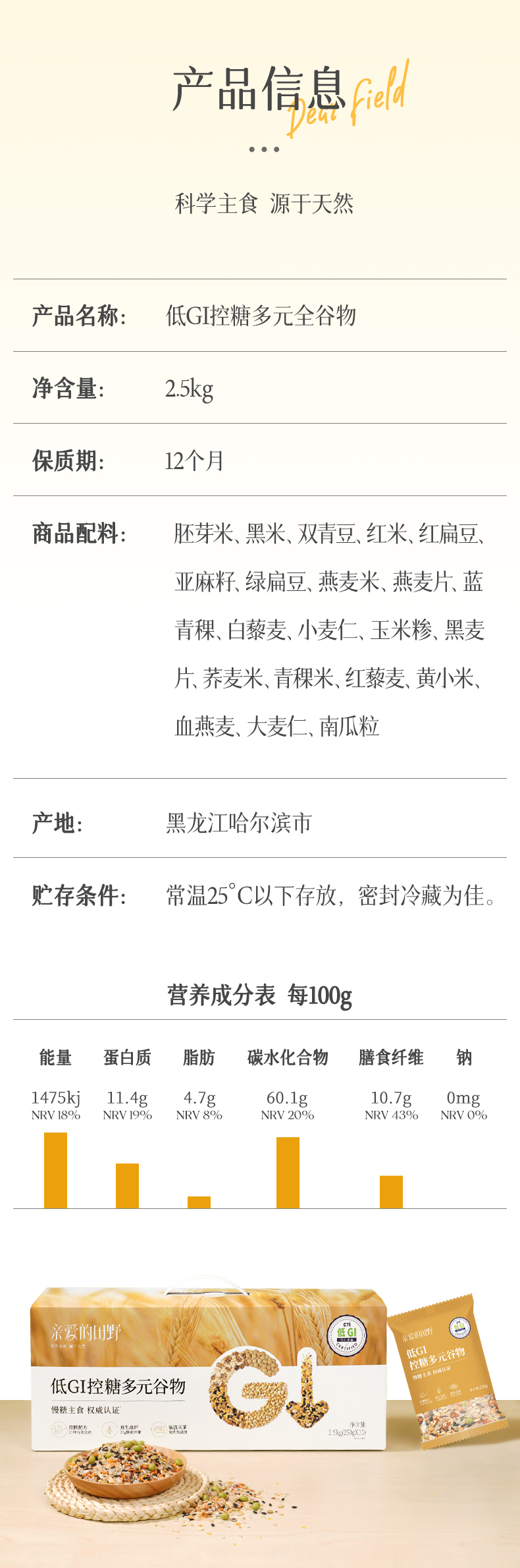 亲爱的田野低gi大米2.5kg慢糖粮专用控糖糖友主食