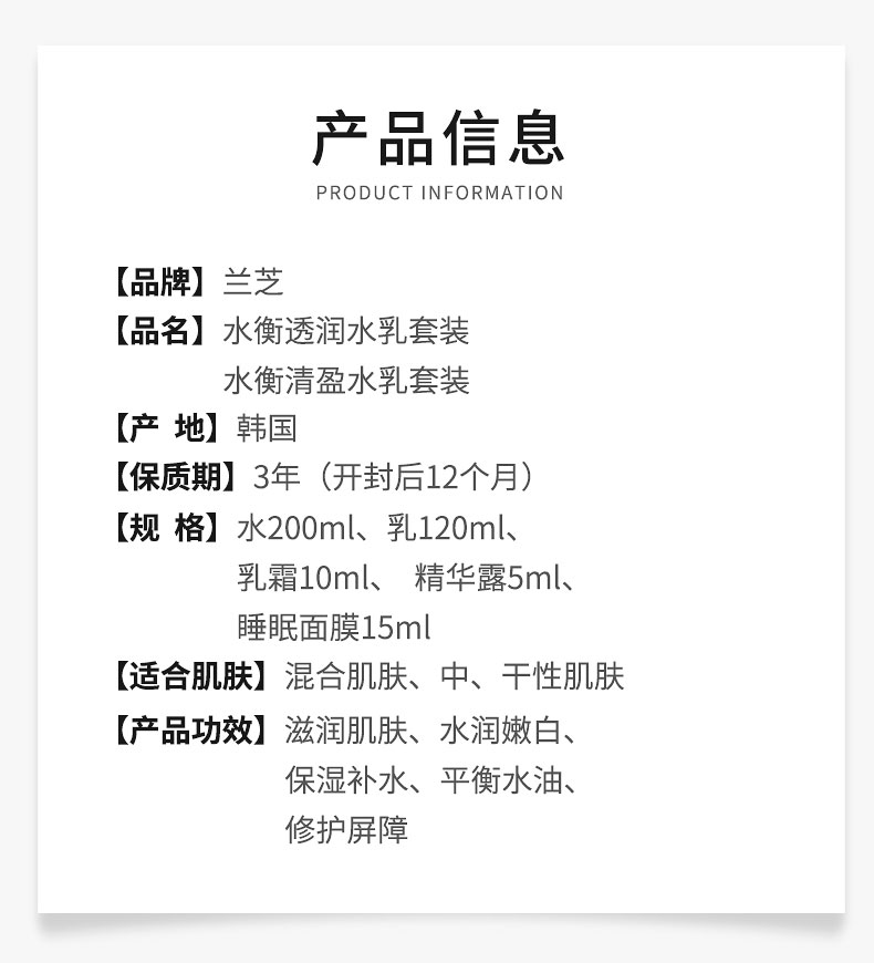 品牌名称:兰芝滋润2件套 品牌发源地:韩国
