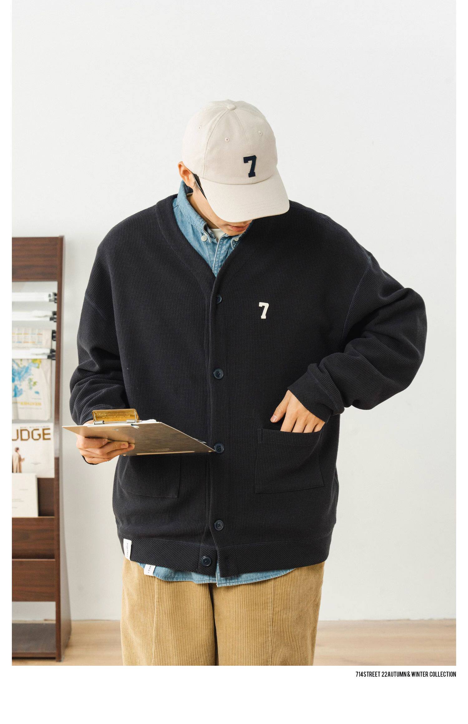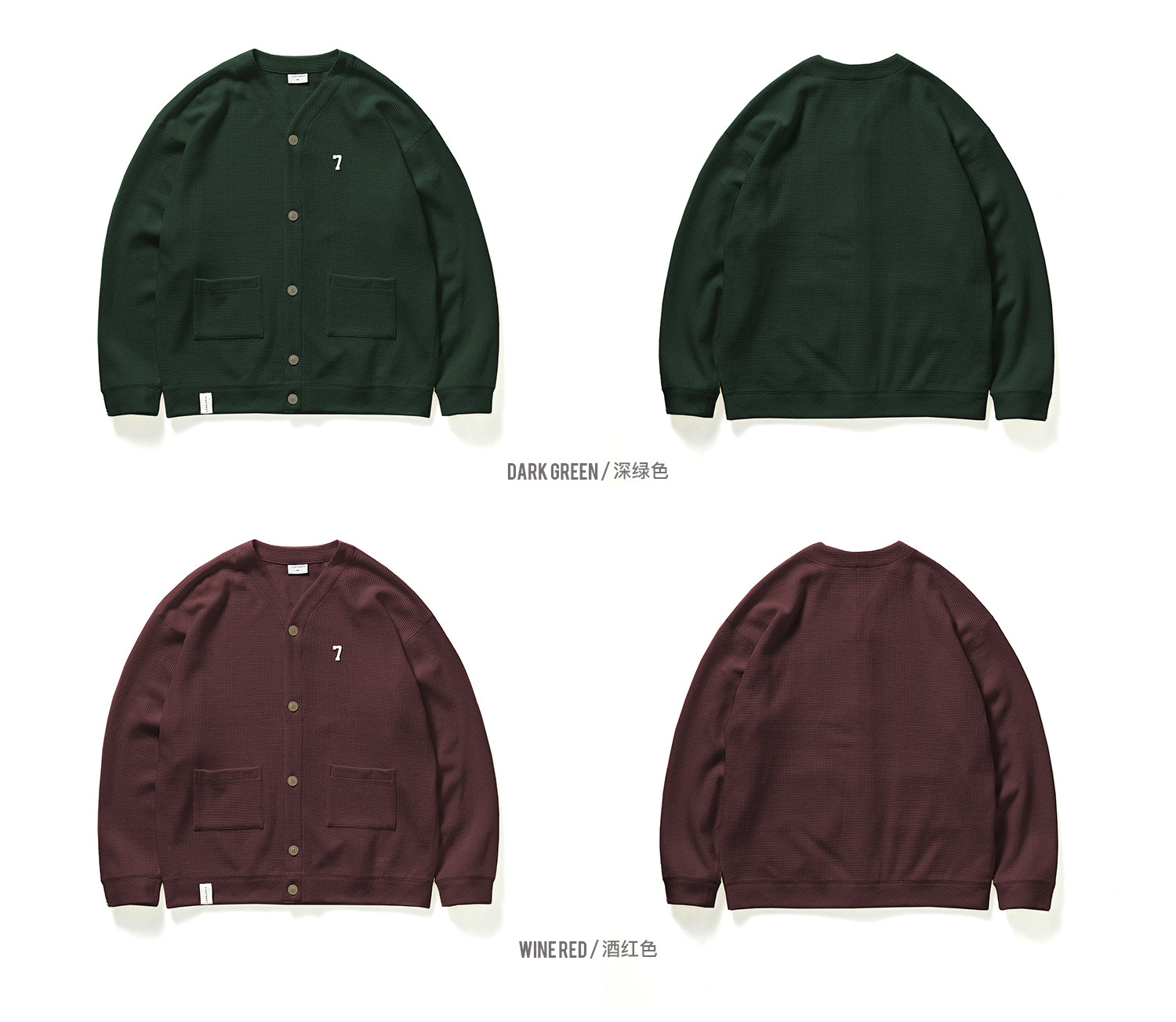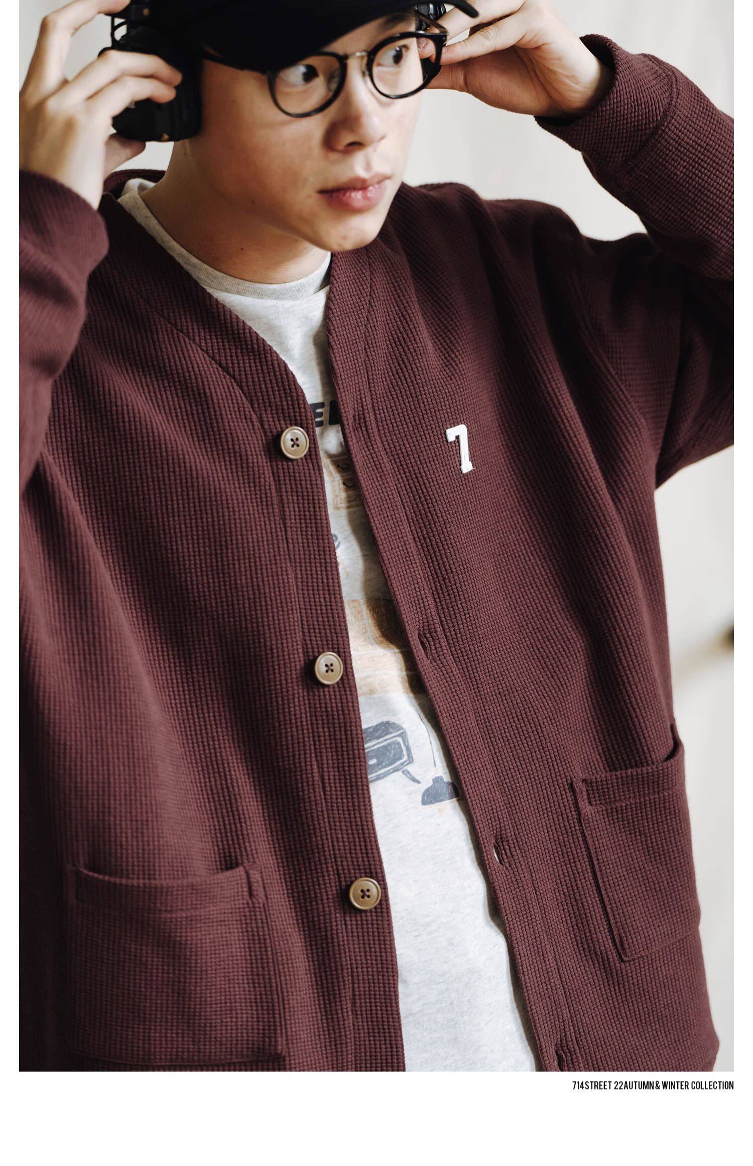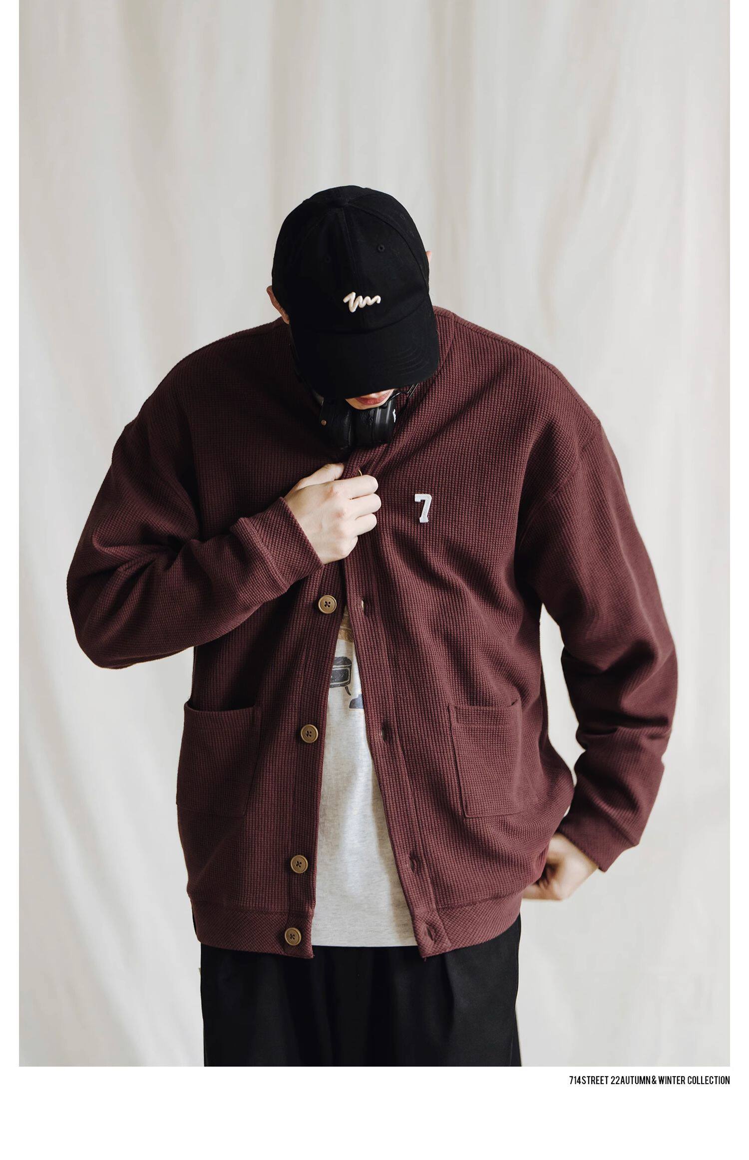 714street华夫格开衫男春秋纯色V领毛衣男潮牌针织衫情侣装外套