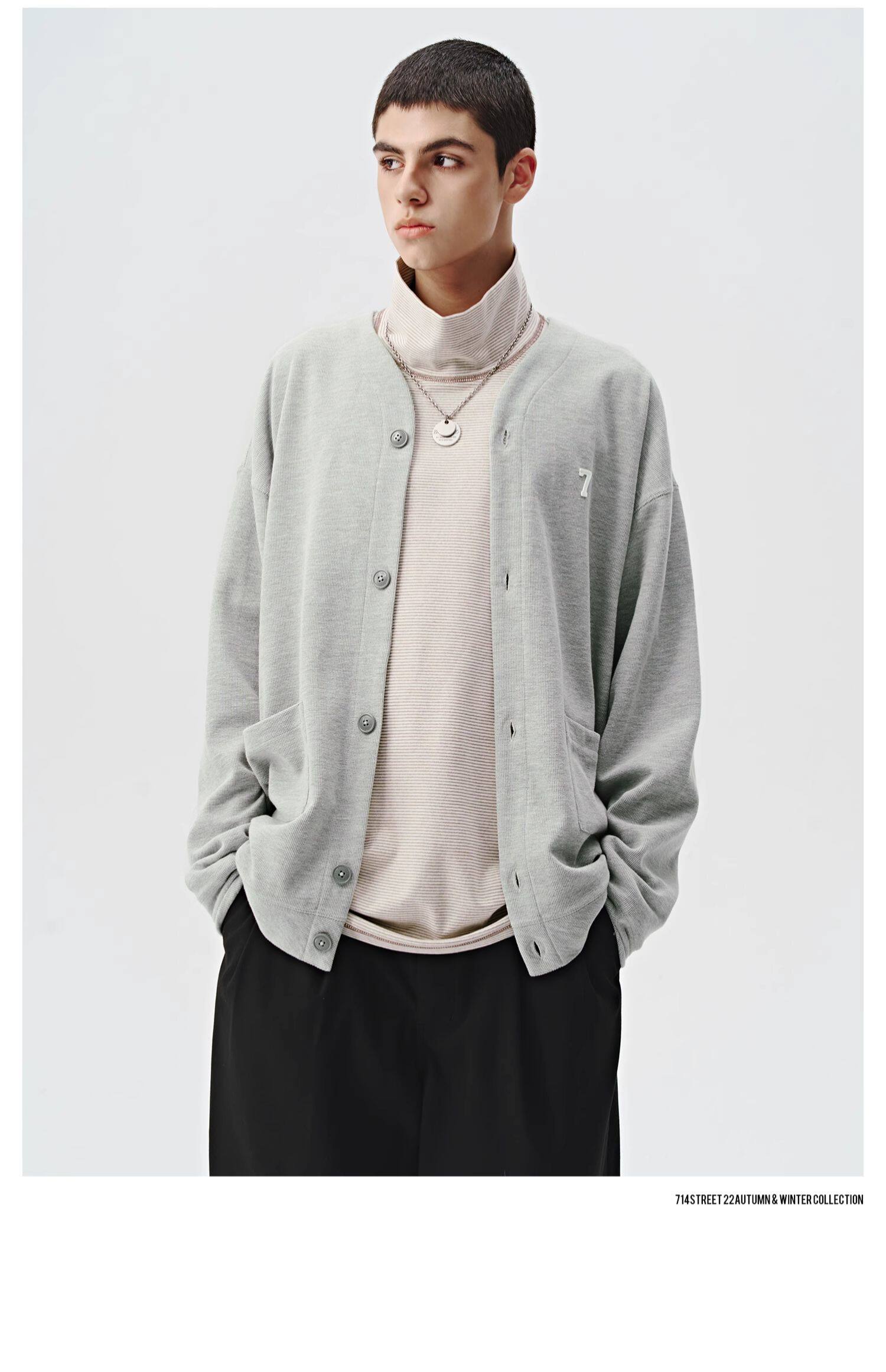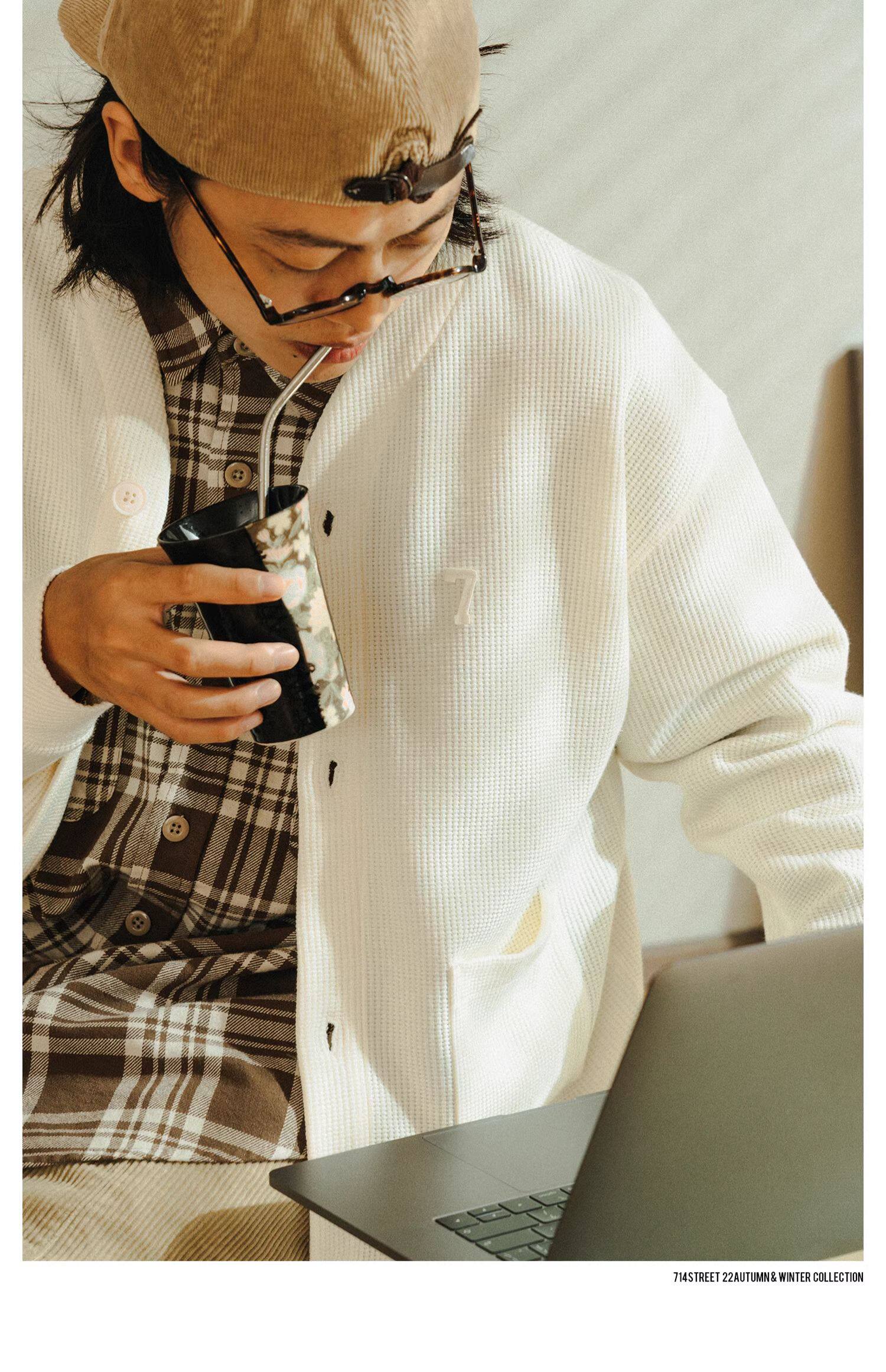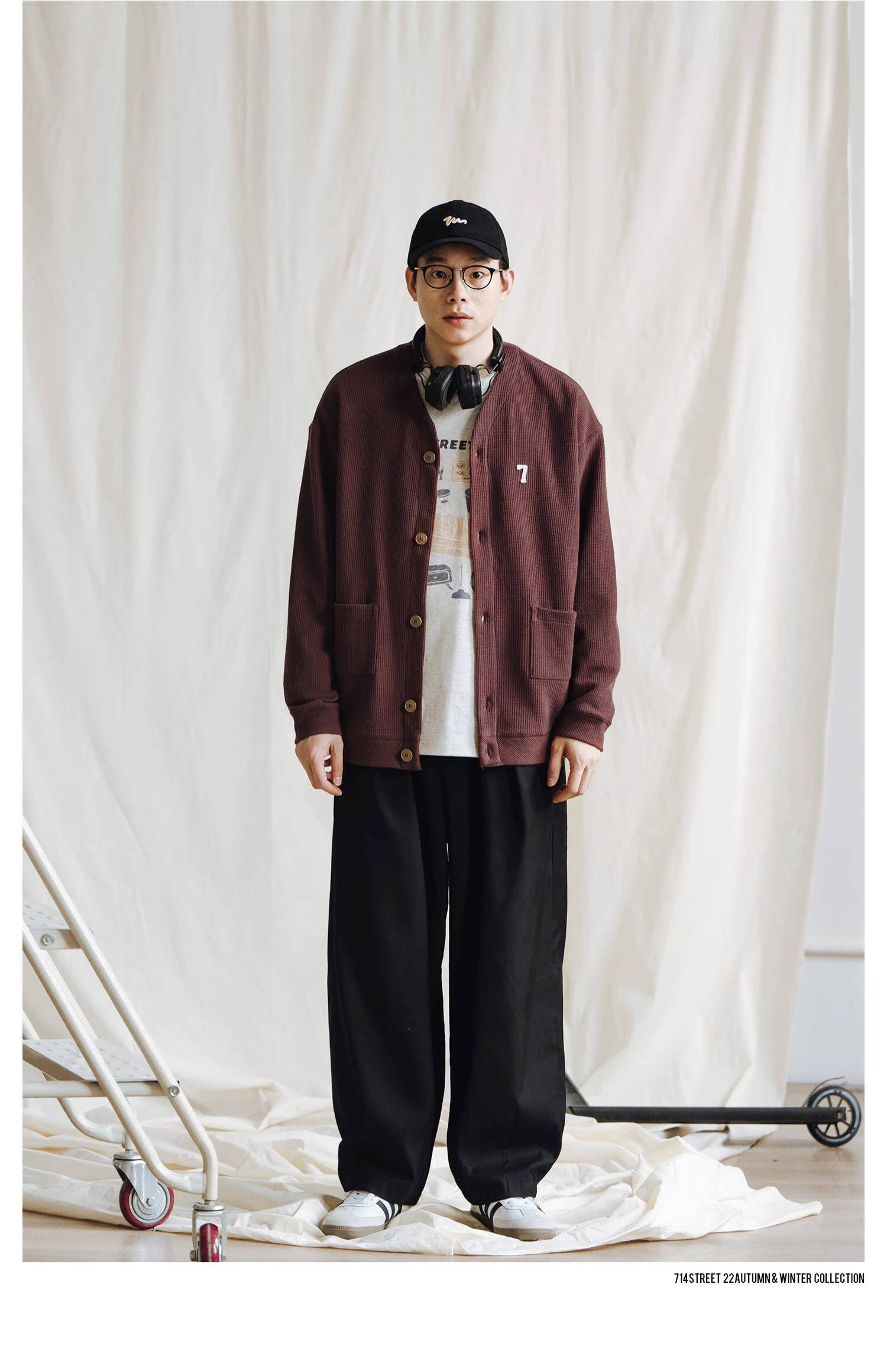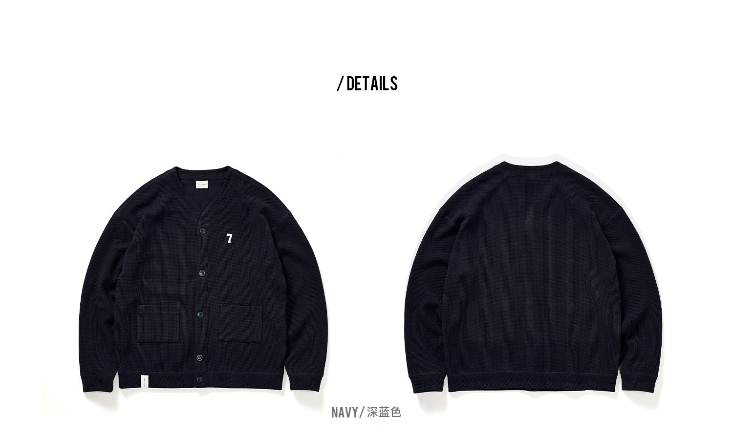 714street华夫格开衫男春秋纯色V领毛衣男潮牌针织衫情侣装外套