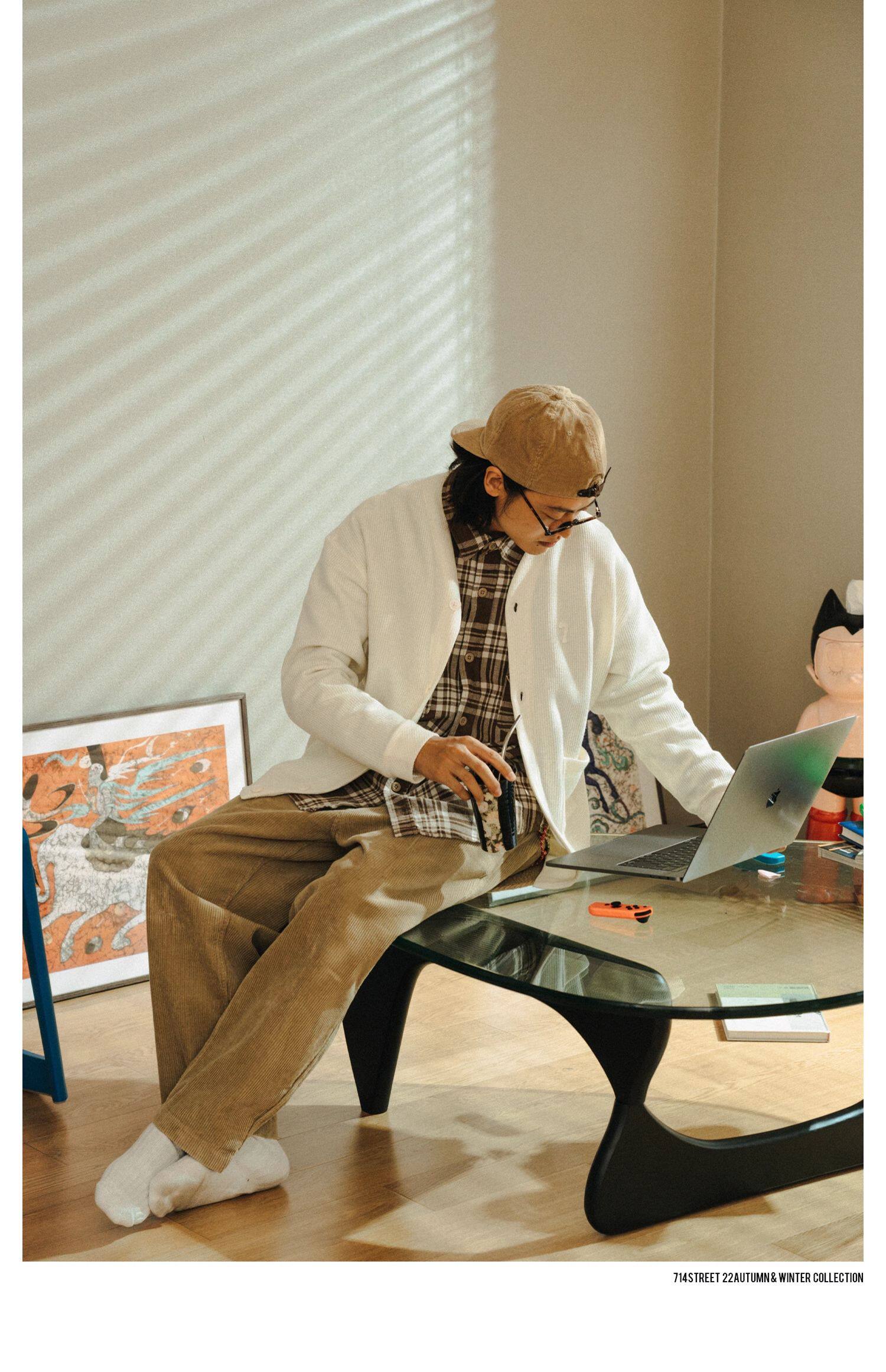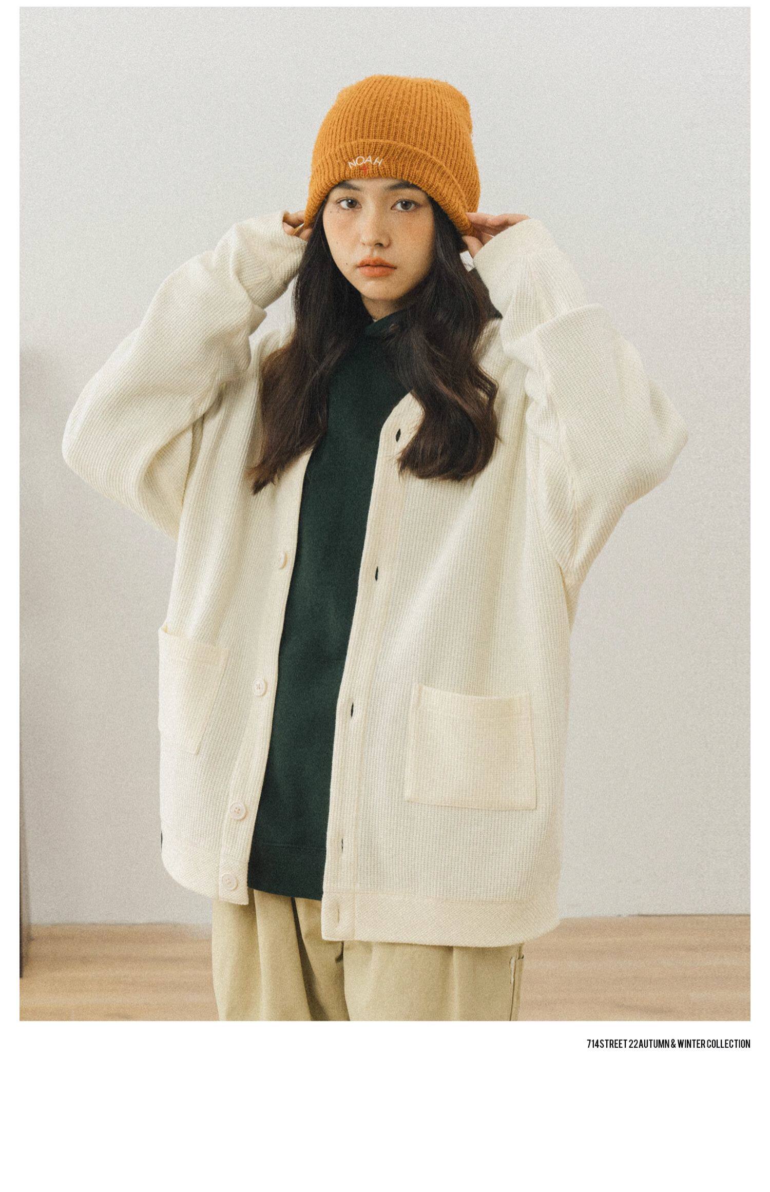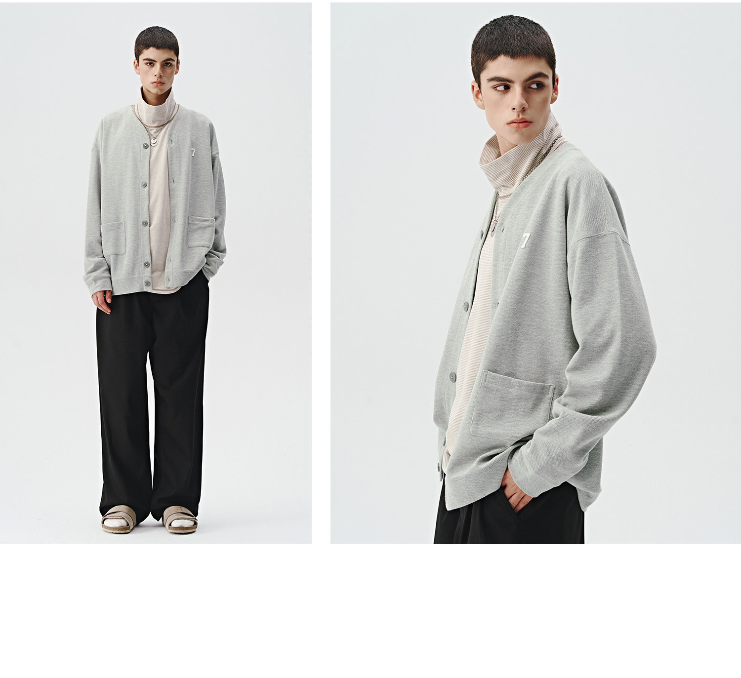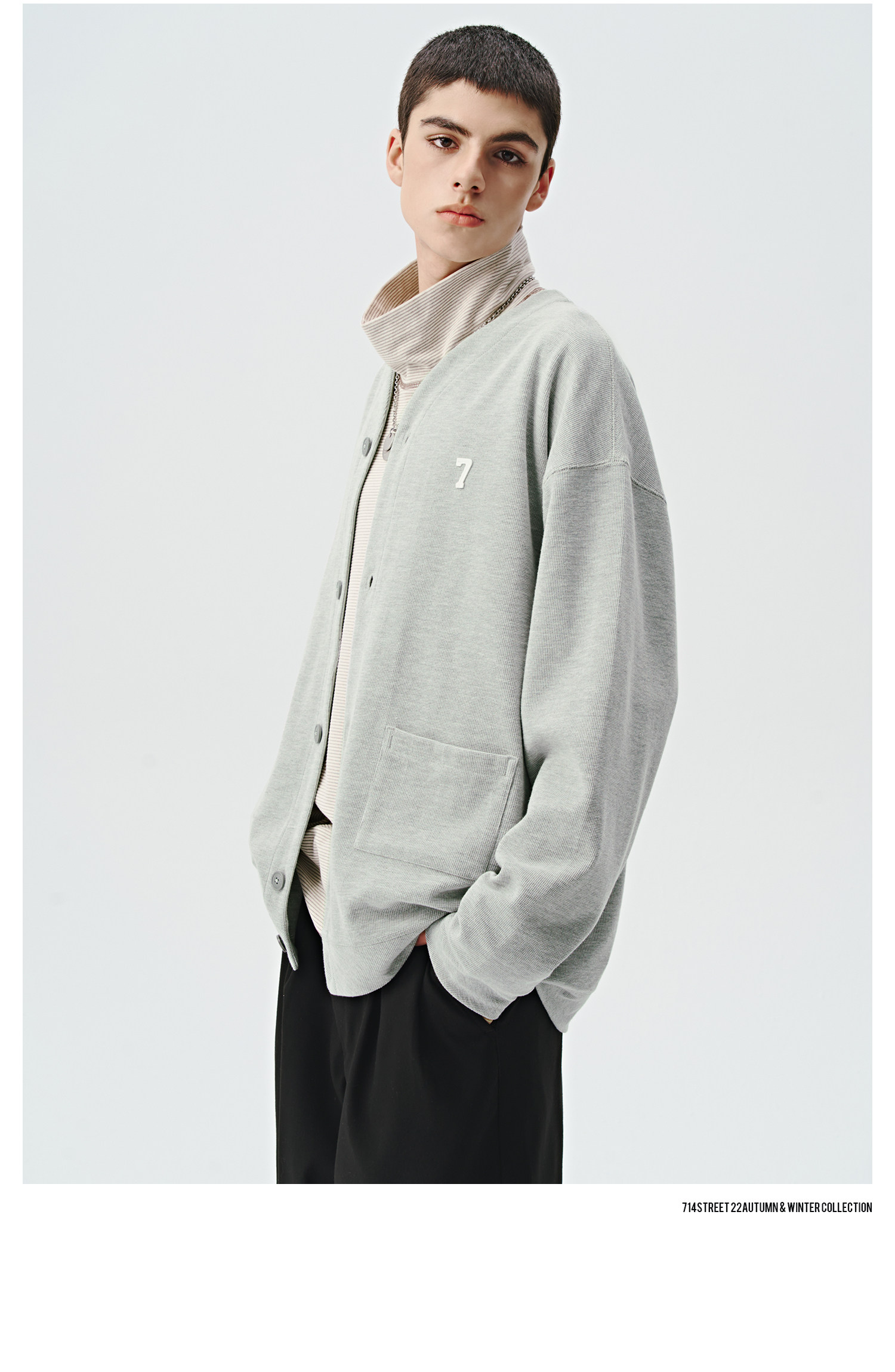 714street华夫格开衫男春秋纯色V领毛衣男潮牌针织衫情侣装外套