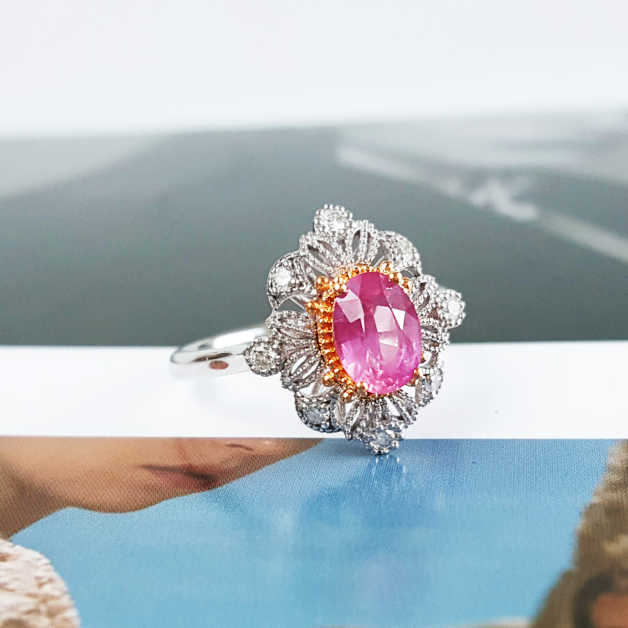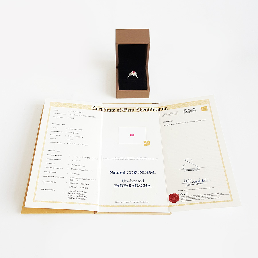 名称 | AU750精品白金镶钻镶天然1.10克拉无烧帕帕拉恰蓝宝石戒指 |