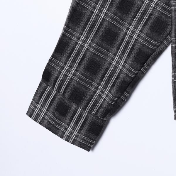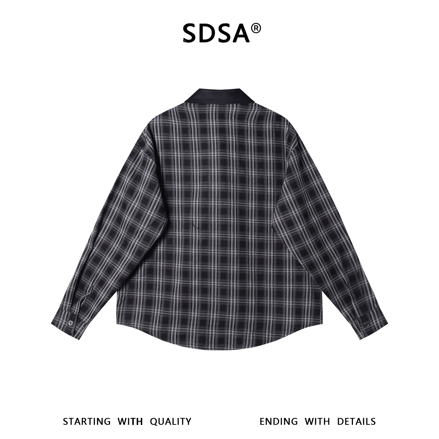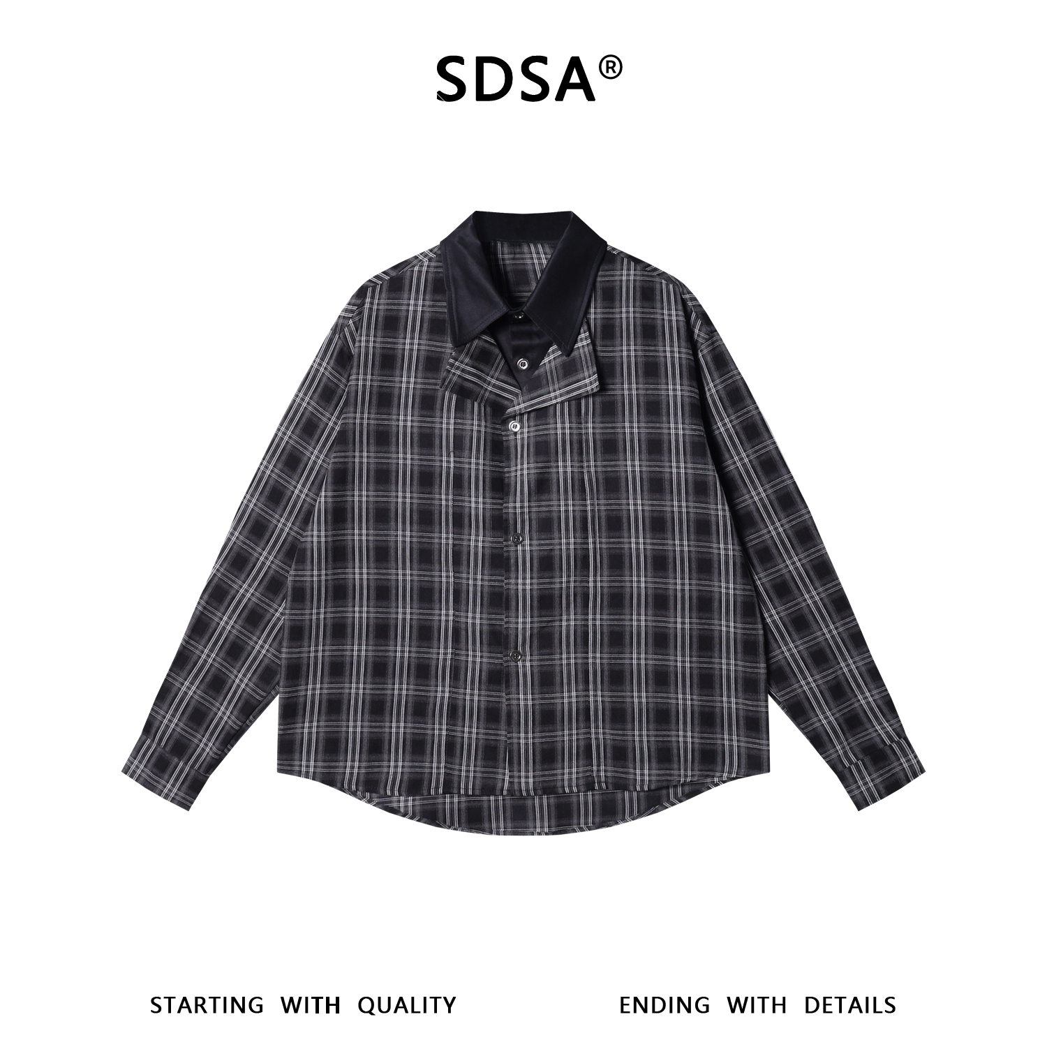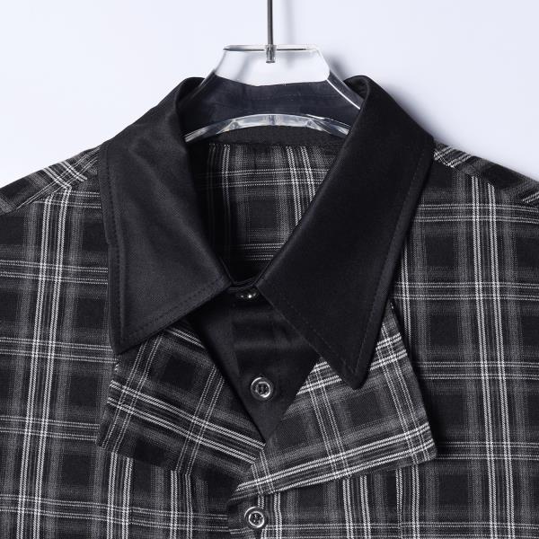 7024SDSA男士春夏新款痞帅男装宽松潮牌拼接撞色格子翻领长袖衬衫百搭