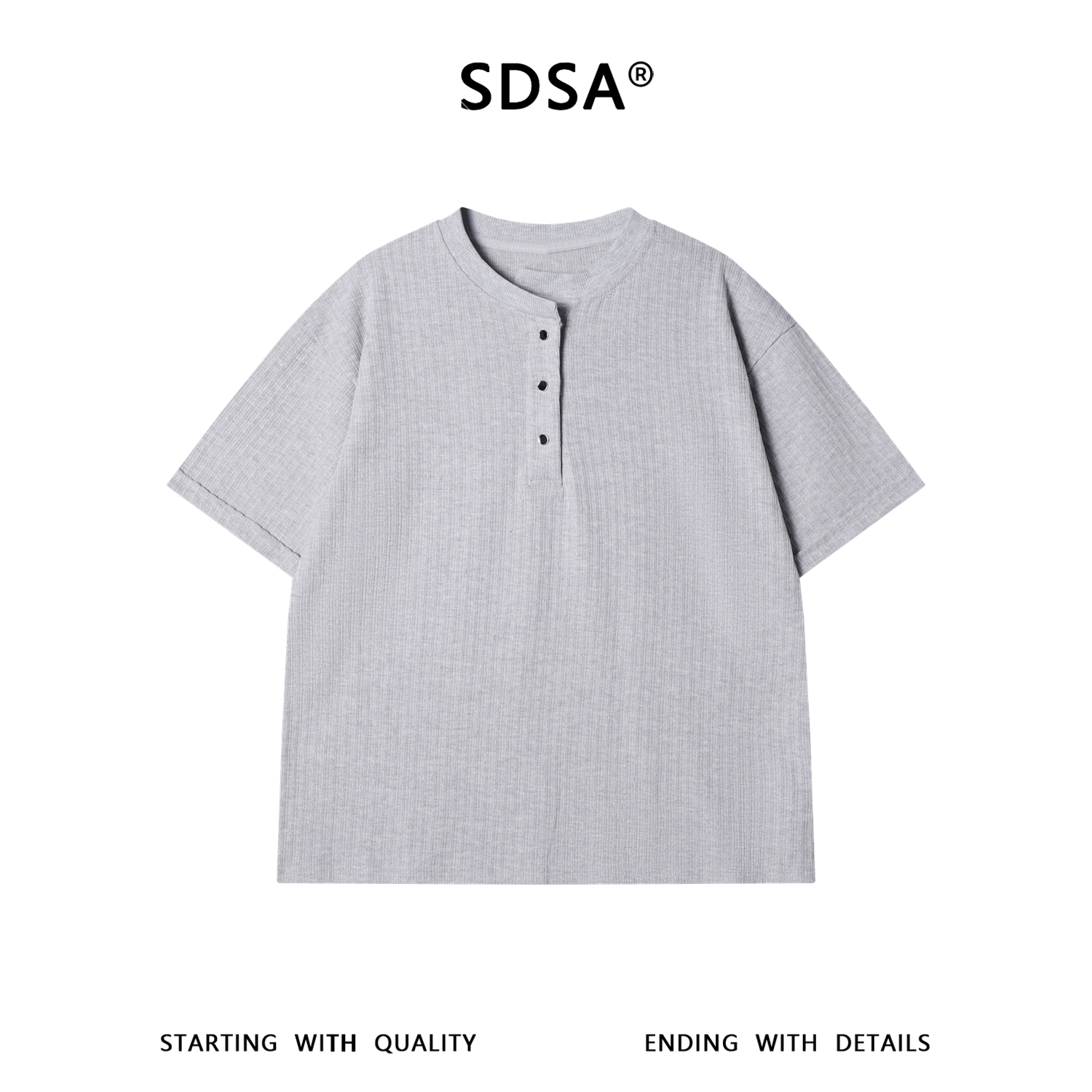 SDSA男装2026新款肌理感半纽扣亨利领短袖T恤宽松圆领休闲上衣