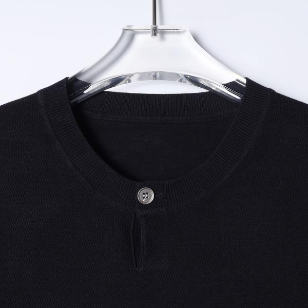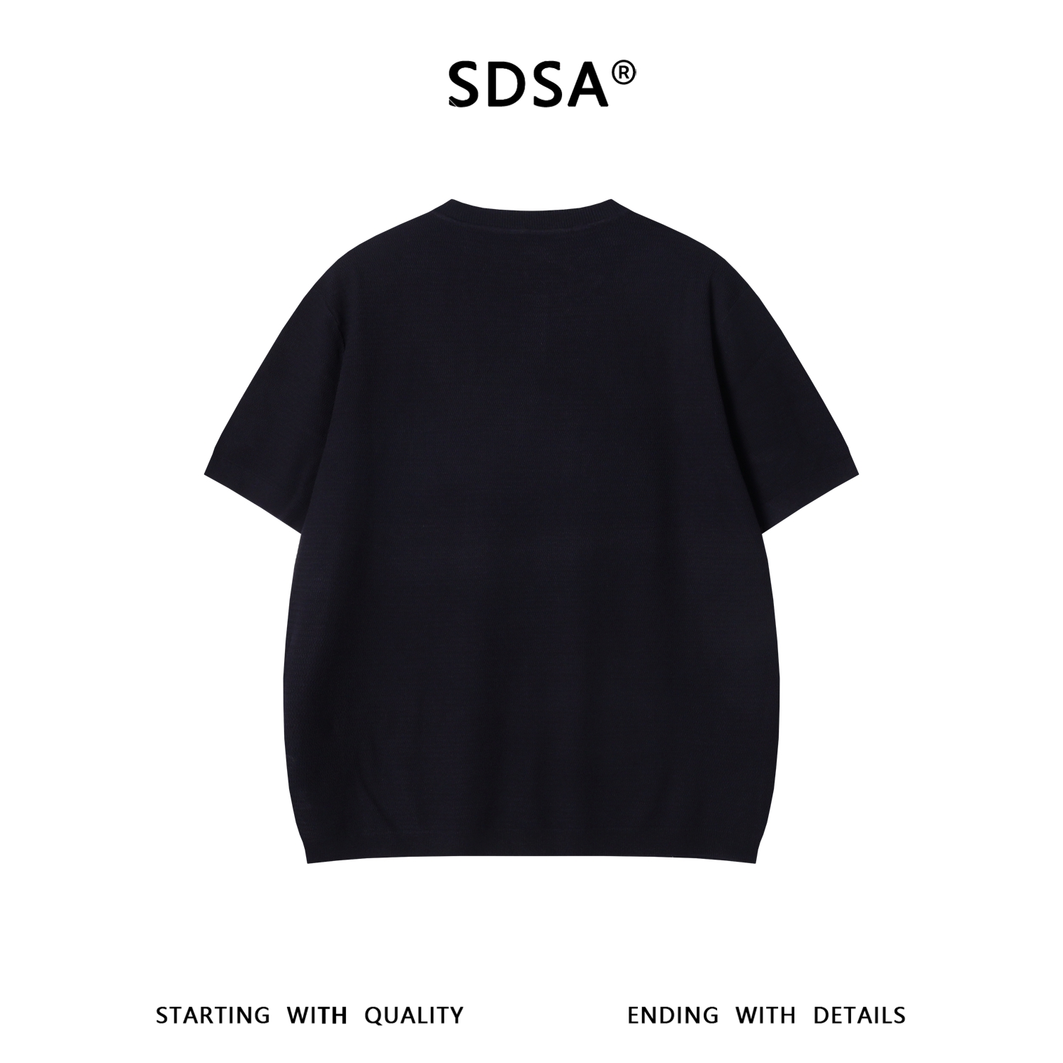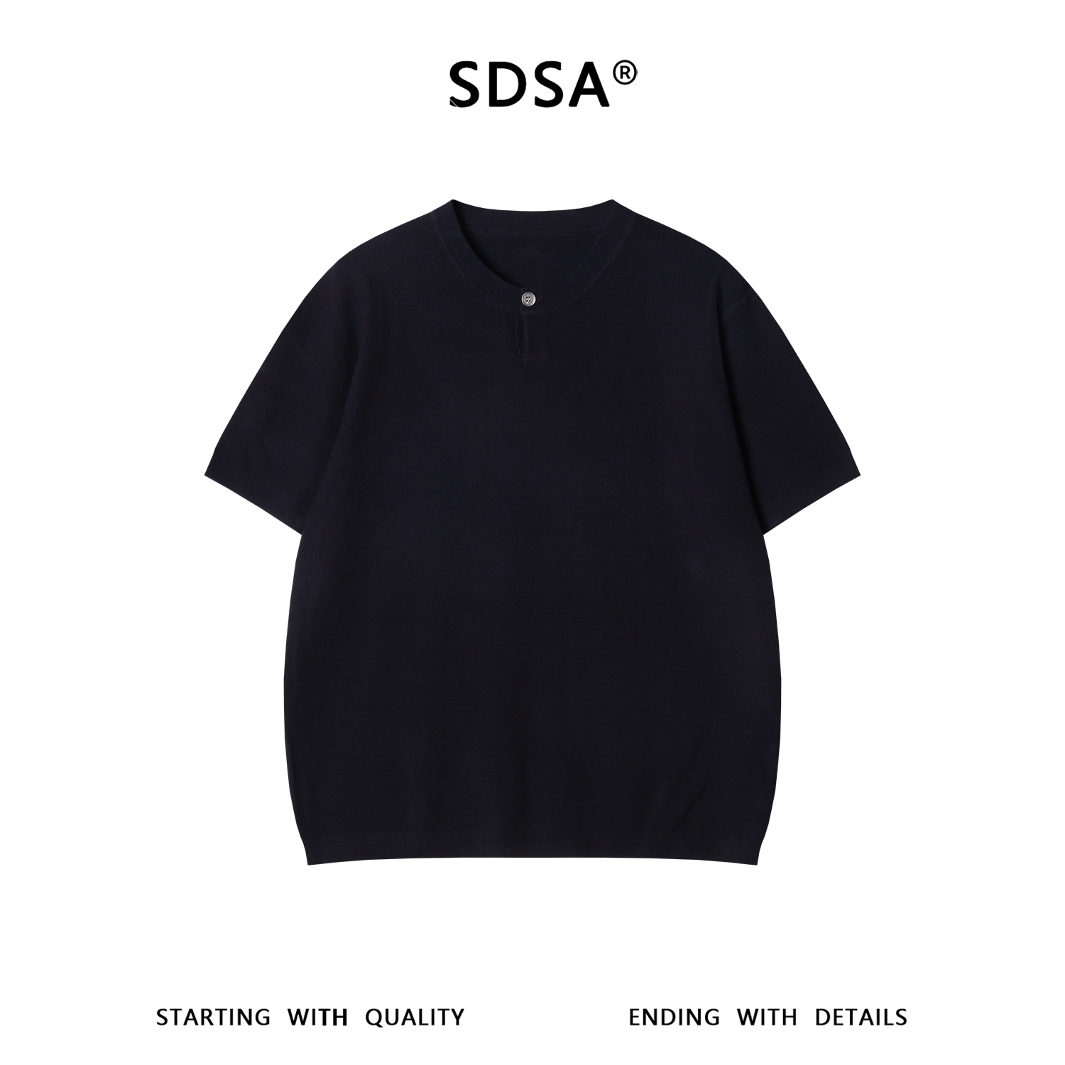SDSA男装2026新款高贵轻奢美式简约波浪暗纹单扣针织短袖T恤百搭