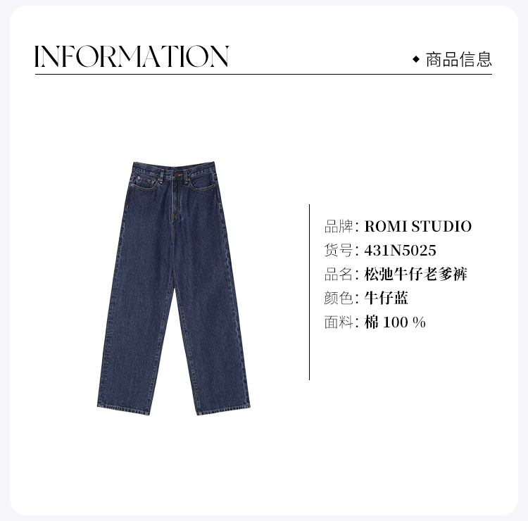 ROMI STUDIO“法式优雅”100长绒竹节棉绳染洗水直筒牛仔裤431N5027