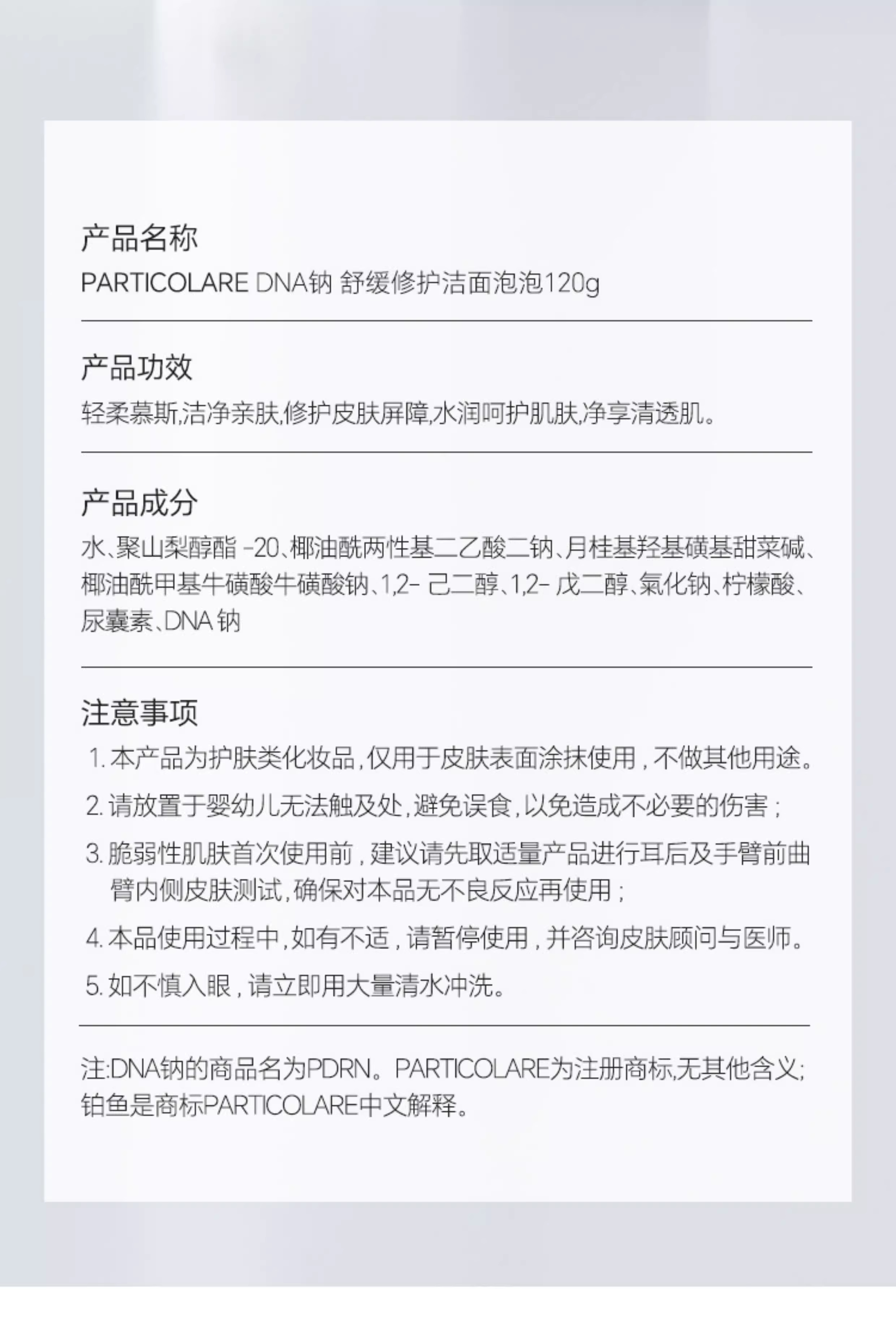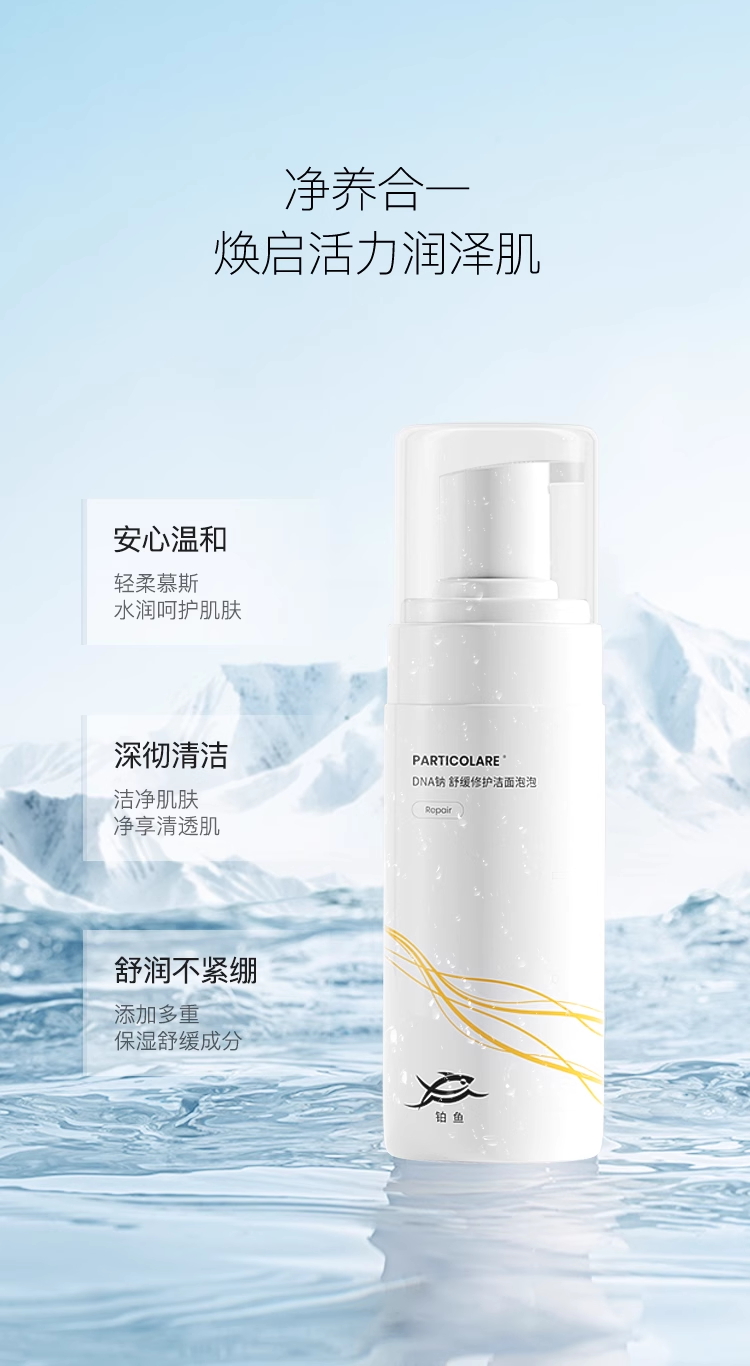 【妆】铂鱼DNA钠舒缓修护洁面慕斯深层控油清洁毛孔洗面奶男女
