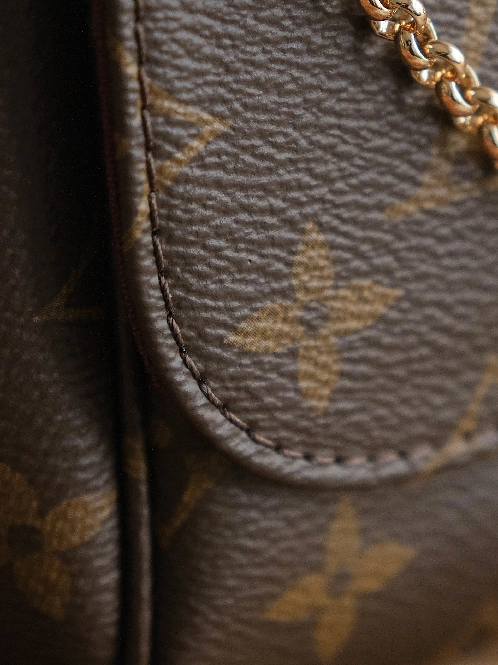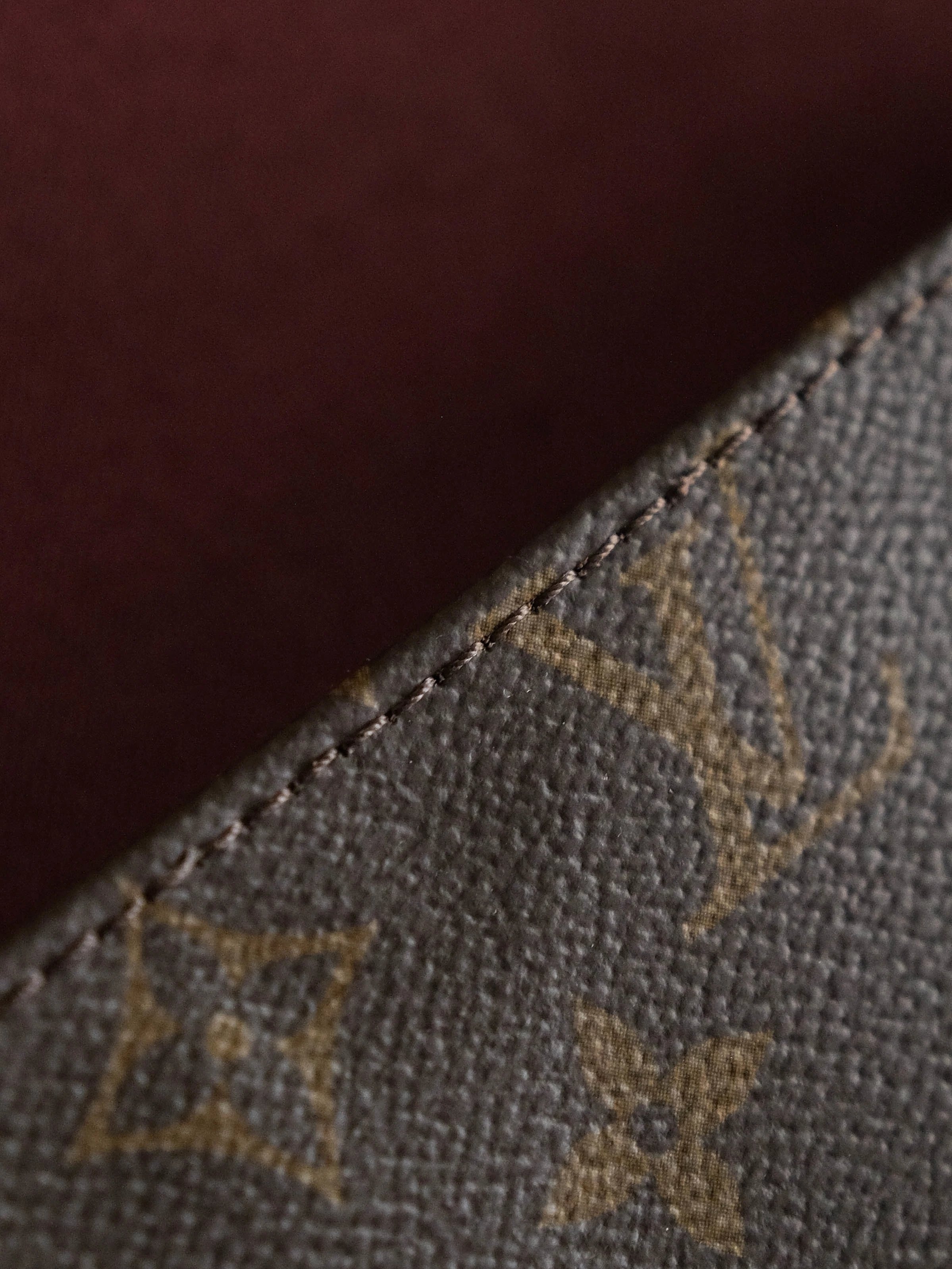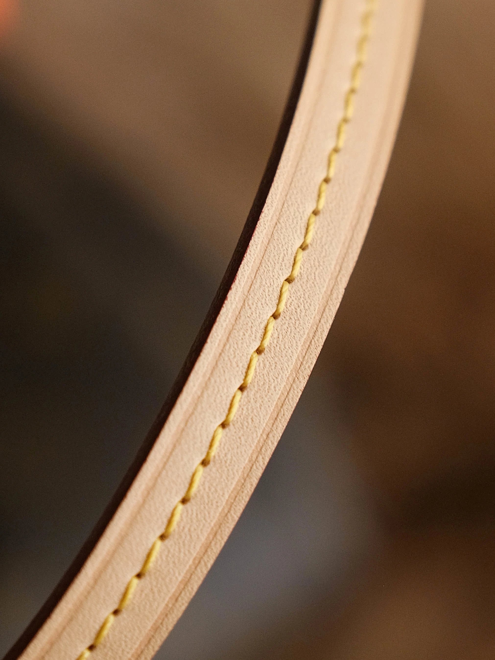 顶部车线4针双重回线。注意最重要的也是最有难度的是皮边最下方微微凸起的一个尖头