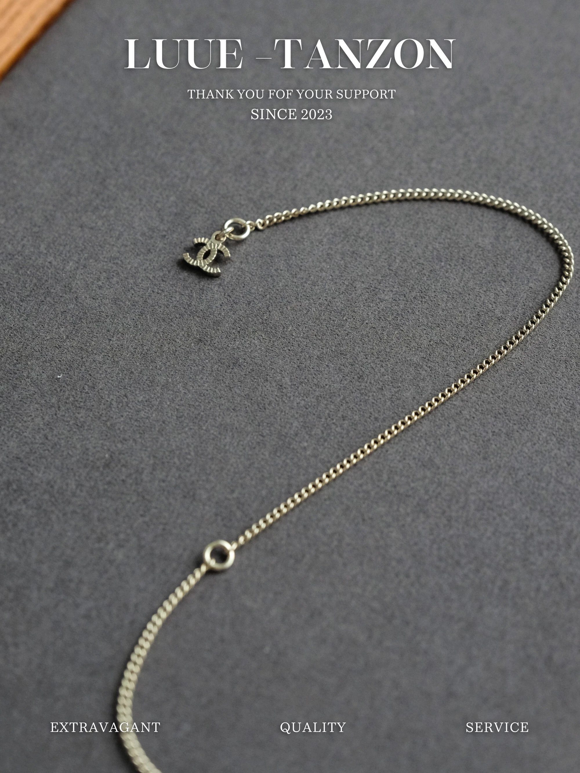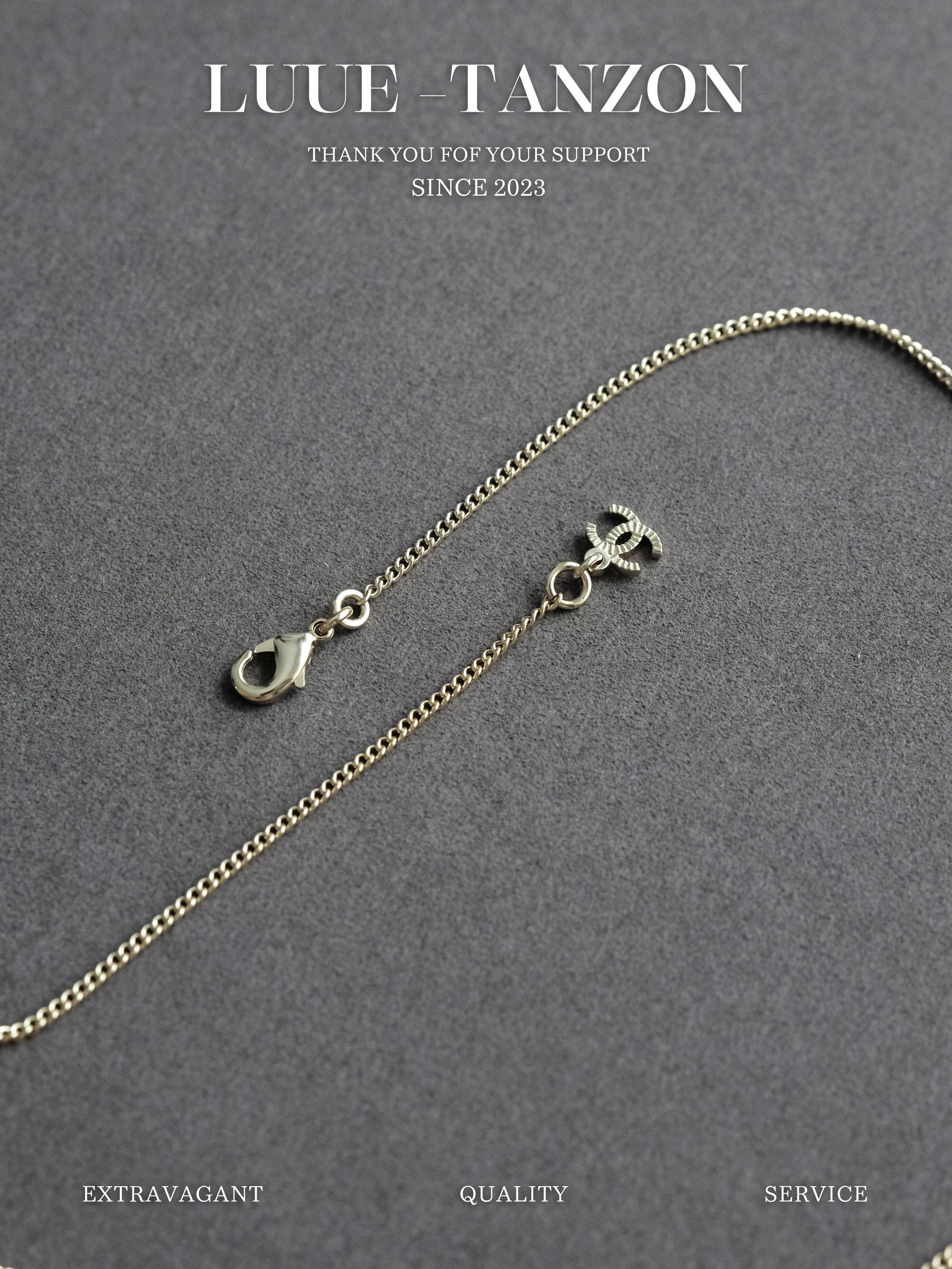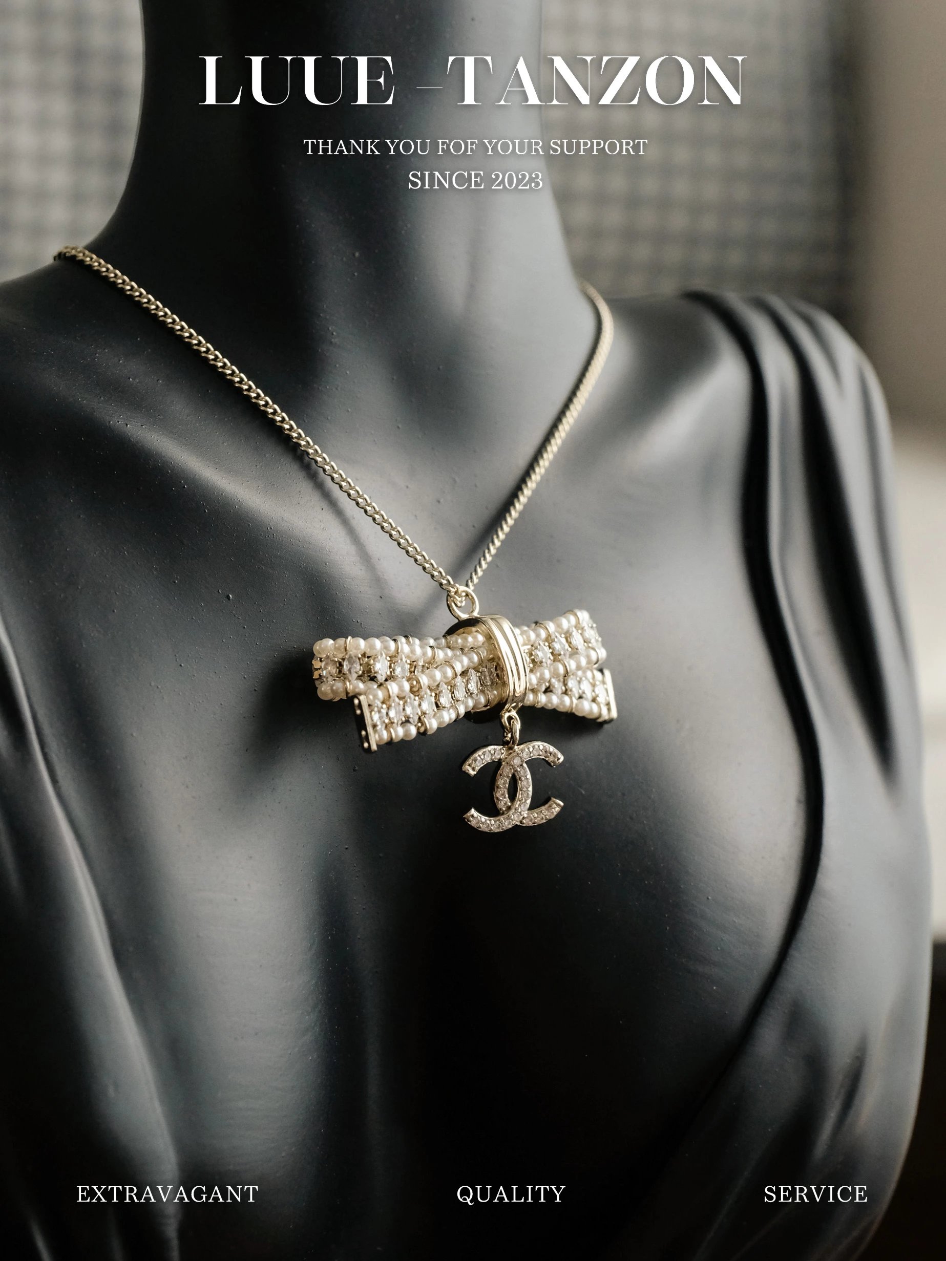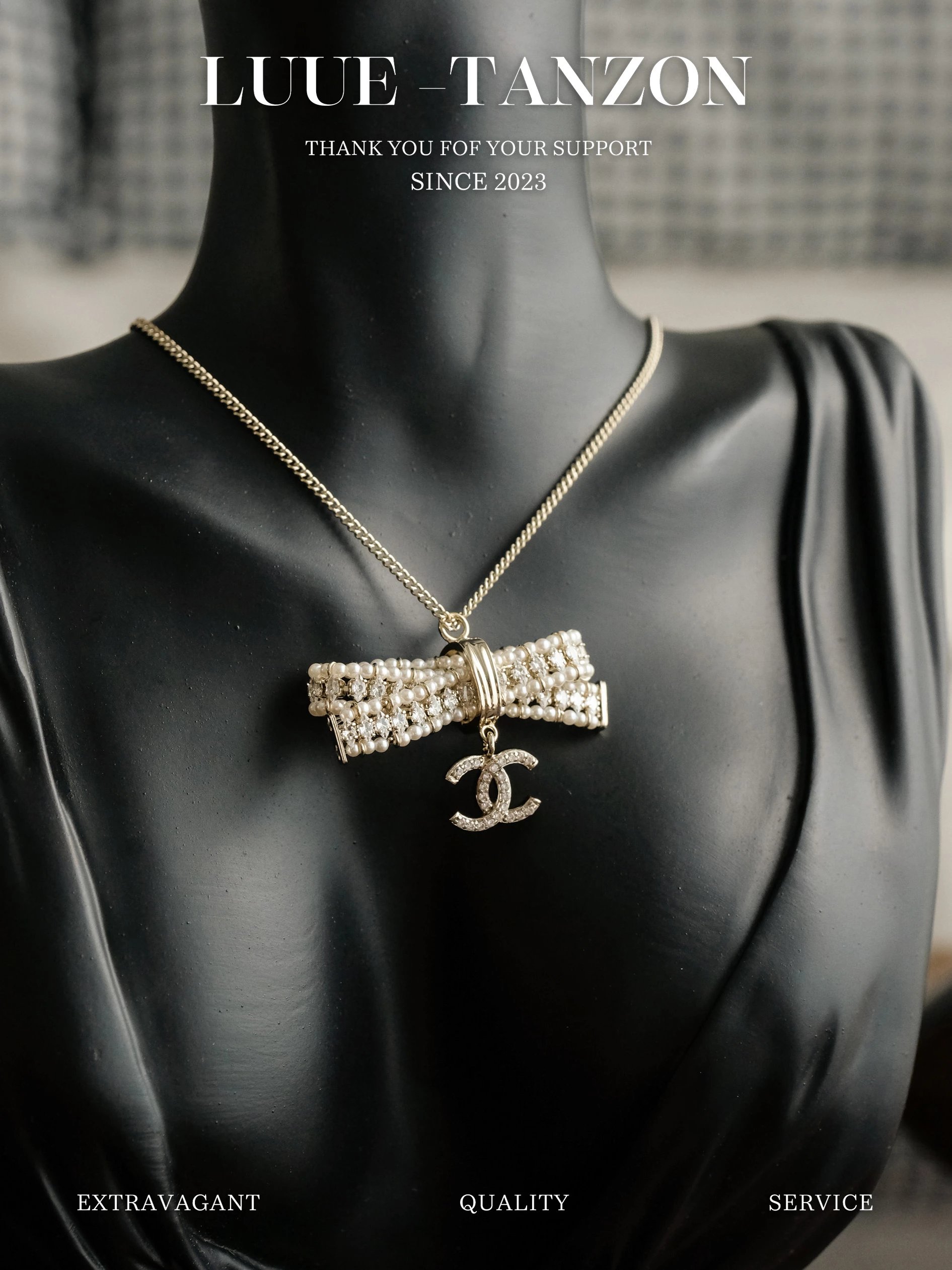 小香23春夏浅金色双排珍珠中间橄榄钻蝴蝶结两用项链