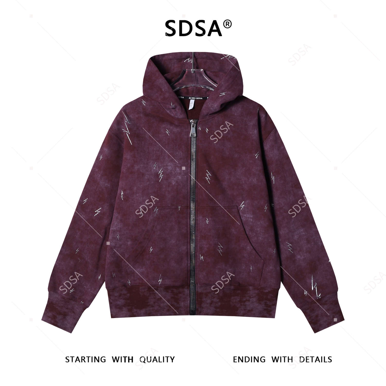 SDSA男士秋冬新款痞帅男装休闲国潮复古滴胶拉链连帽卫衣百搭舒适