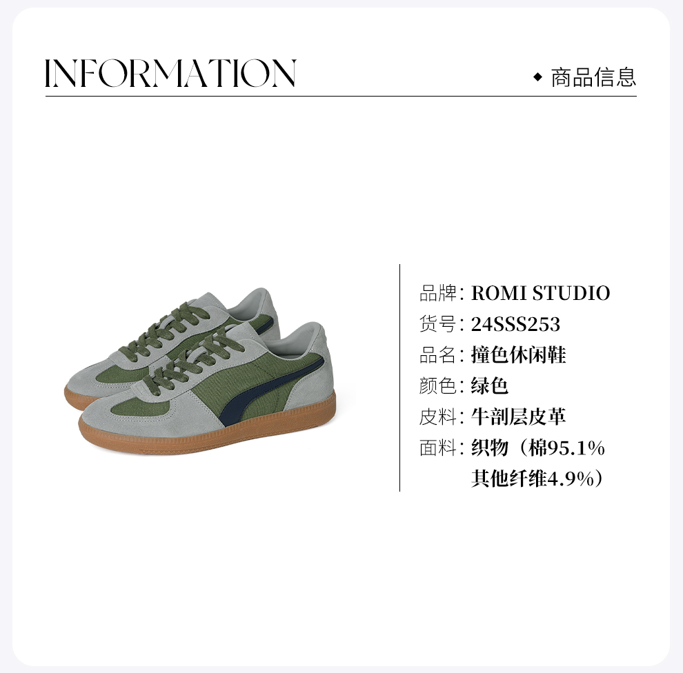 ROMI STUDIO ”复古氛围“ 牛反绒撞色复古拼接平底德训鞋 24SSS253