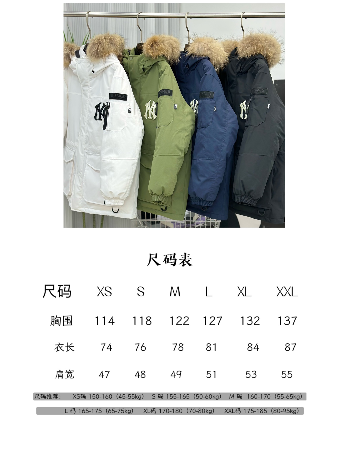 MLB 带毛领工装羽绒服 4款可选